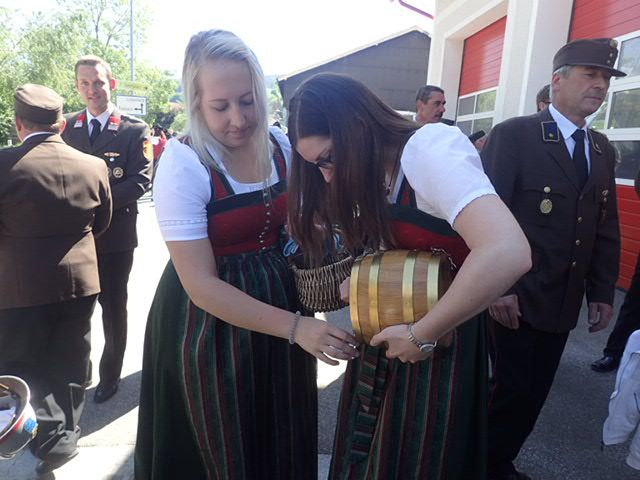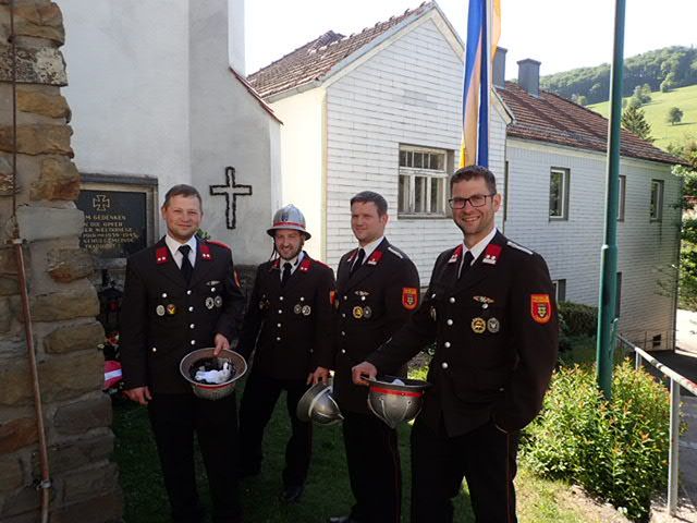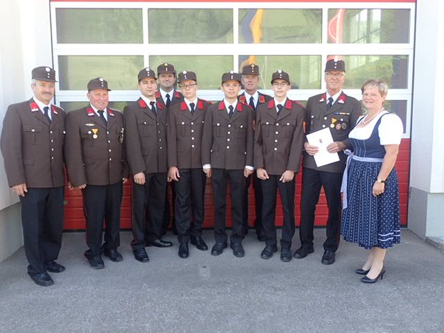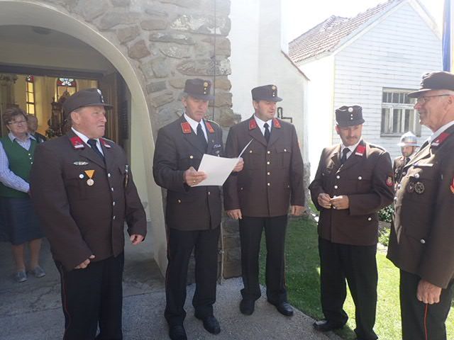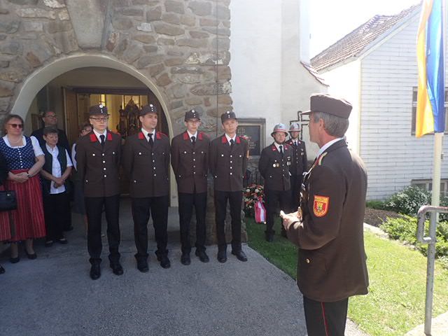 Vier neue Feuerwehrmitglieder wurden im Anschluss an die Festmesse angelobt und somit offiziell mit der Gelöbnisformel in den aktiven Feuerwehrdienst aufgenommen.