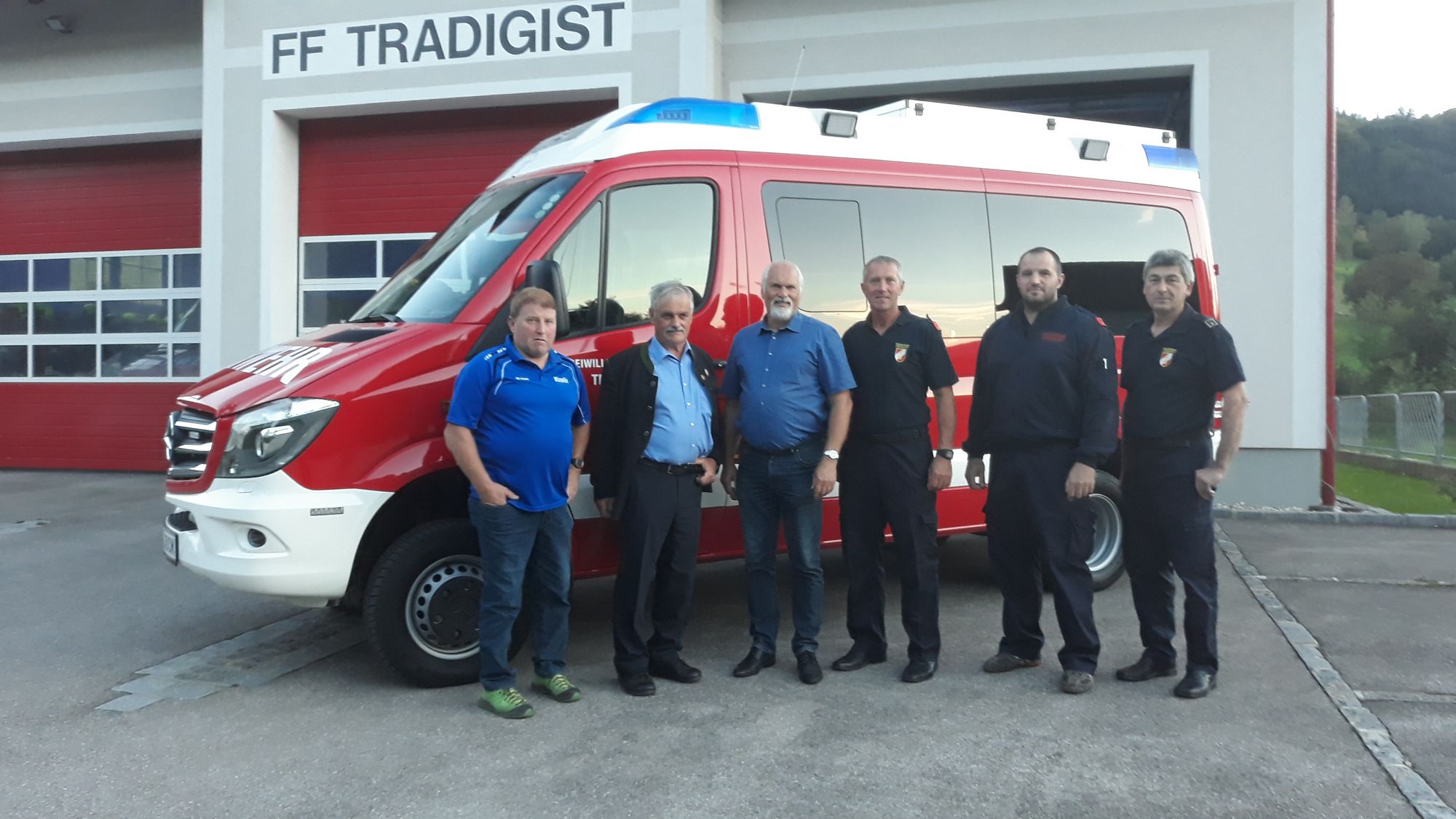 Bei der ersten Besichtigung im Feuerwehrhaus Tradigist, waren auch die beiden Bürgermeister Ök. Rat Anton Gonaus aus Kirchberg und Ing. Kurt Wittmann aus Rabenstein sowie Vizebürgermeister Hubert Gansch aus Rabenstein eingeladen, um sich das Fahrzeug von Kommandat OBI Andreas Veitinger genau erklären zulassen.