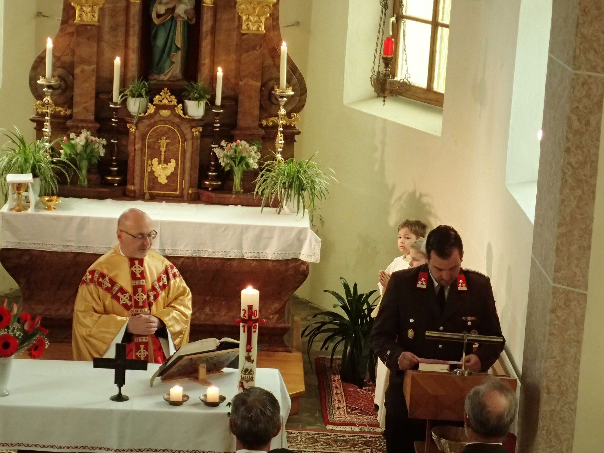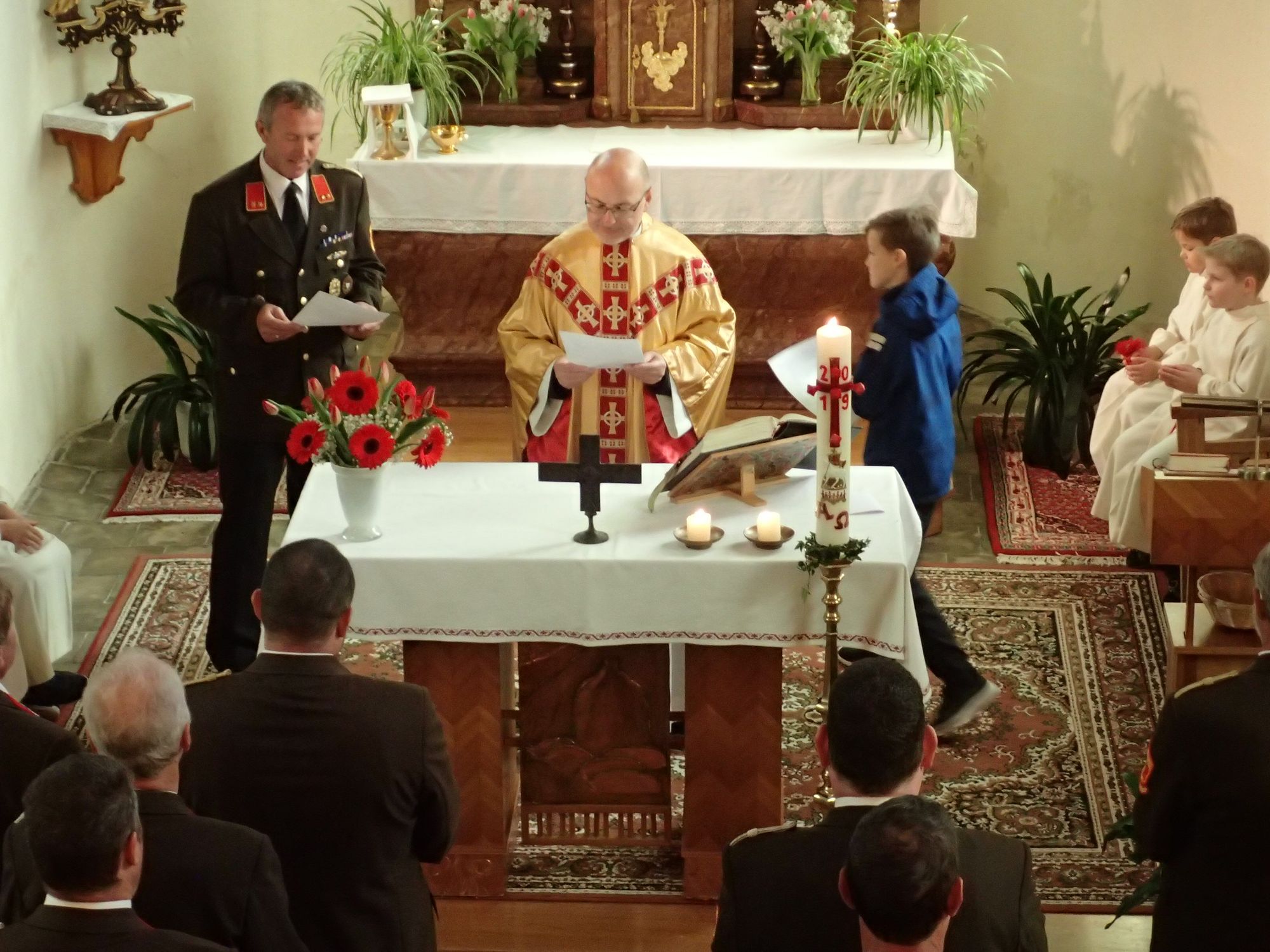 Die diesjährige Florianifeier der Feuerwehr Tradigist fand heute in der Marienkapelle Tradigist statt. Der Festgottesdienst zu Ehren des heiligen Florian, Schutzpatron der Feuerwehren, wurde zelebriert von Pater Franz. Dazu fanden sich die Mannschaft der FF Tradigist, sowie deren Familien und die Bevölkerung von Tradigist in der Marienkapelle ein. Der Gottesdienst war mit musikalischer Umrahmung des Tradigister Floriani-Chors unter der Leitung von Regina Veidinger feierlich gestaltet.