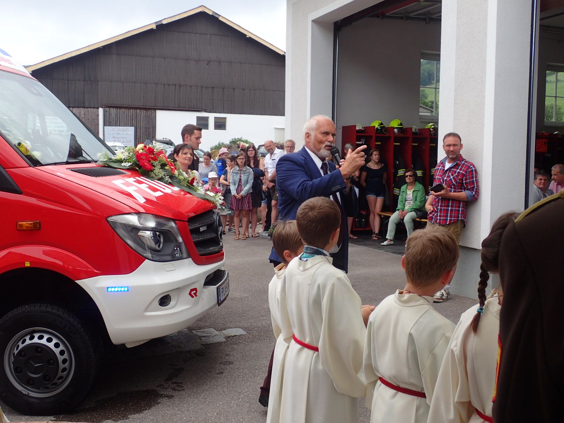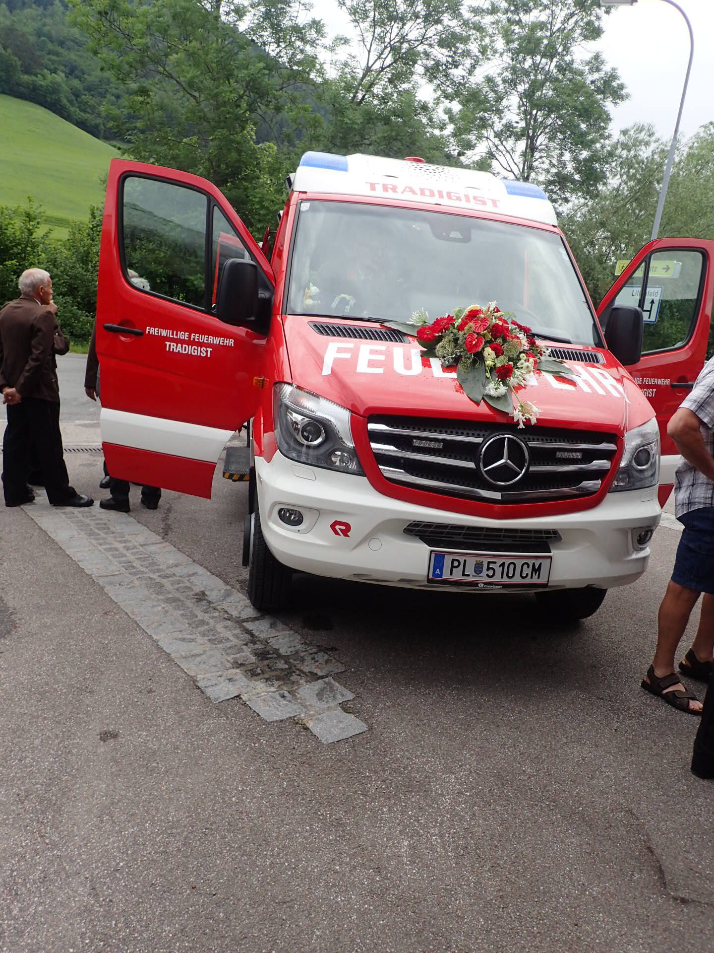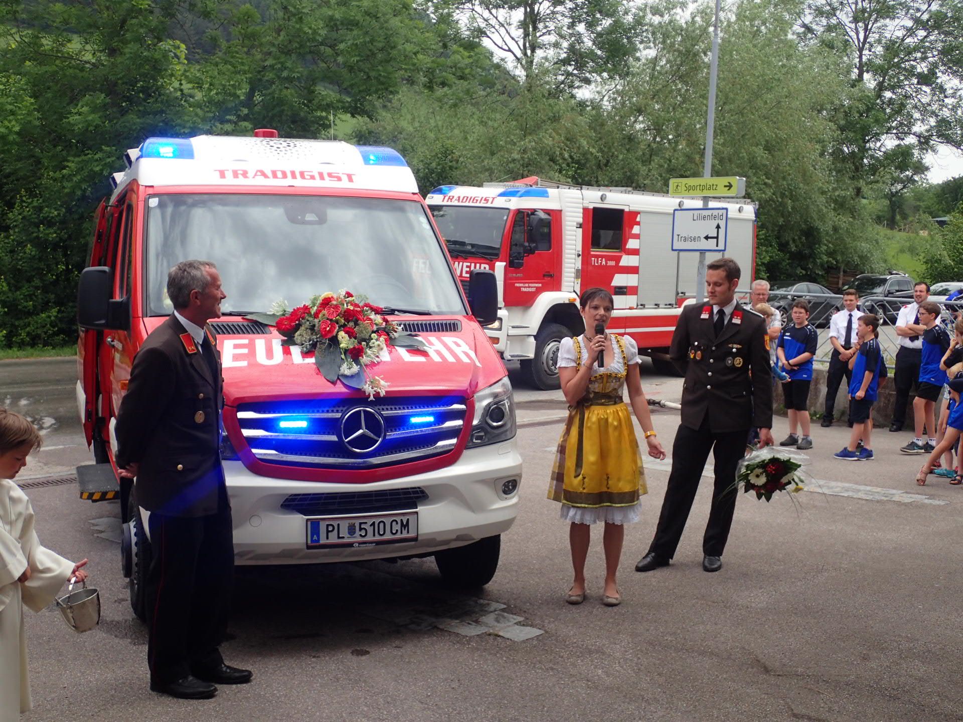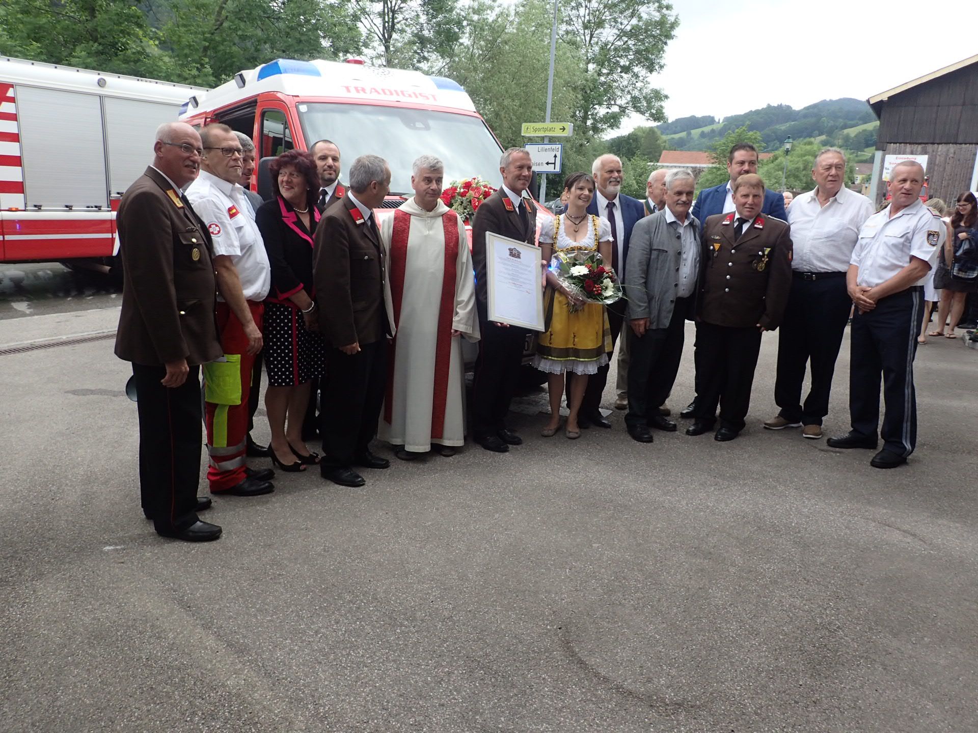 Am Pfingstmontag, 10.06.2019 folgten zahlreiche Gäste unserer Einladung zur Fahrzeugsegnung und zum Tag der offenen Tür. Die Heilige Messe wurde von Pater Johannes im FF-Haus zelebriert und vom Tradigister Fünfgsang musikalisch gestaltet. Im Anschluss erfolgte die feierlicher Segnung des neuen Einsatzfahrzeugs dessen Patin Melanie Fuxsteiner ist. Bei kühlen Getränken und Speisen vom Grill genossen wir den schönen Feiertag. Unsere kleinen Gäste freuten sich über die Hüpfburg sowie Zielspritzen mit Feuerwehrdrachen Grisu.