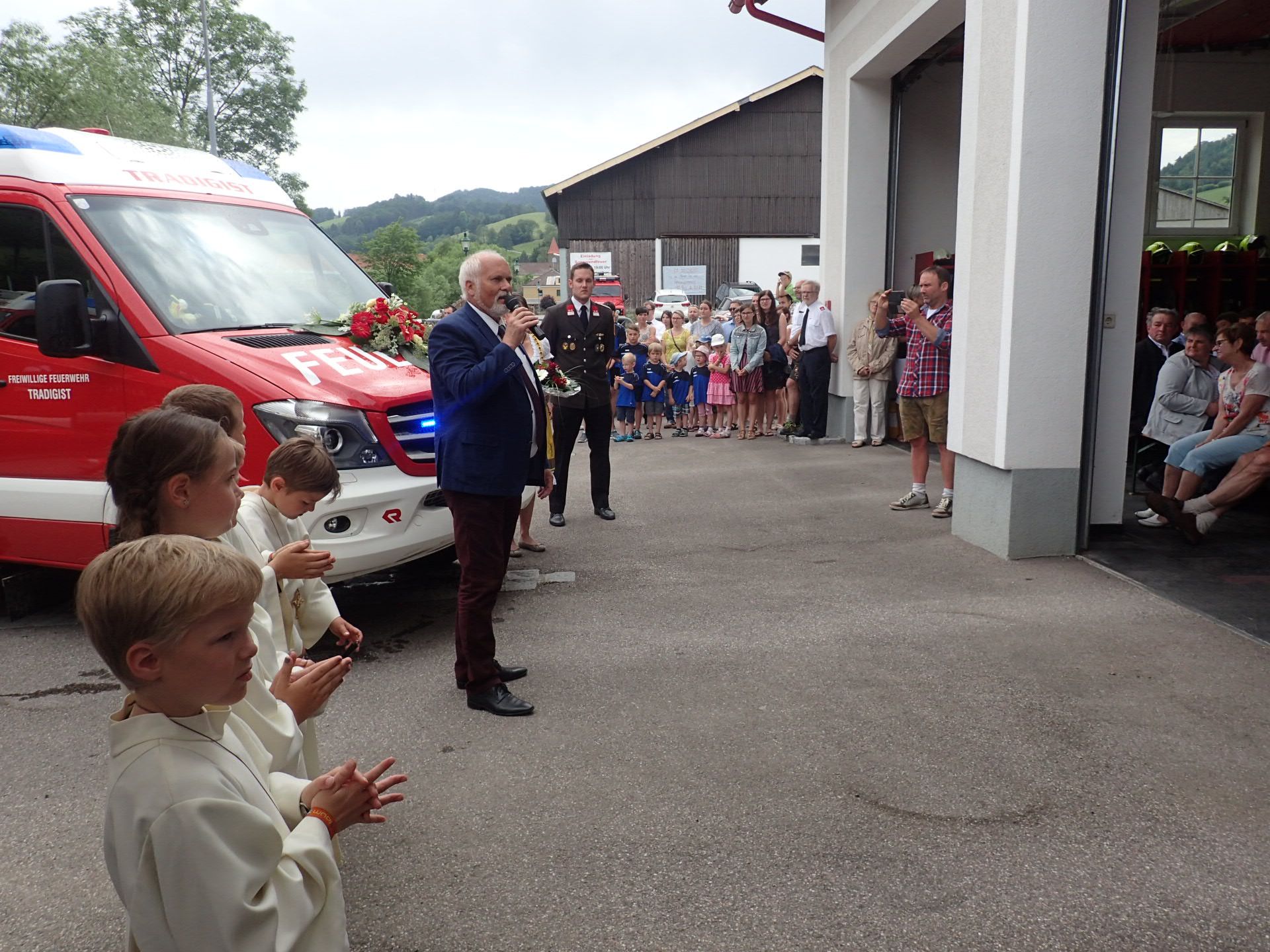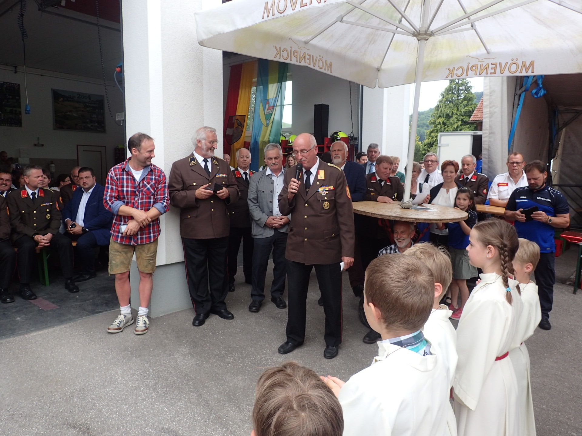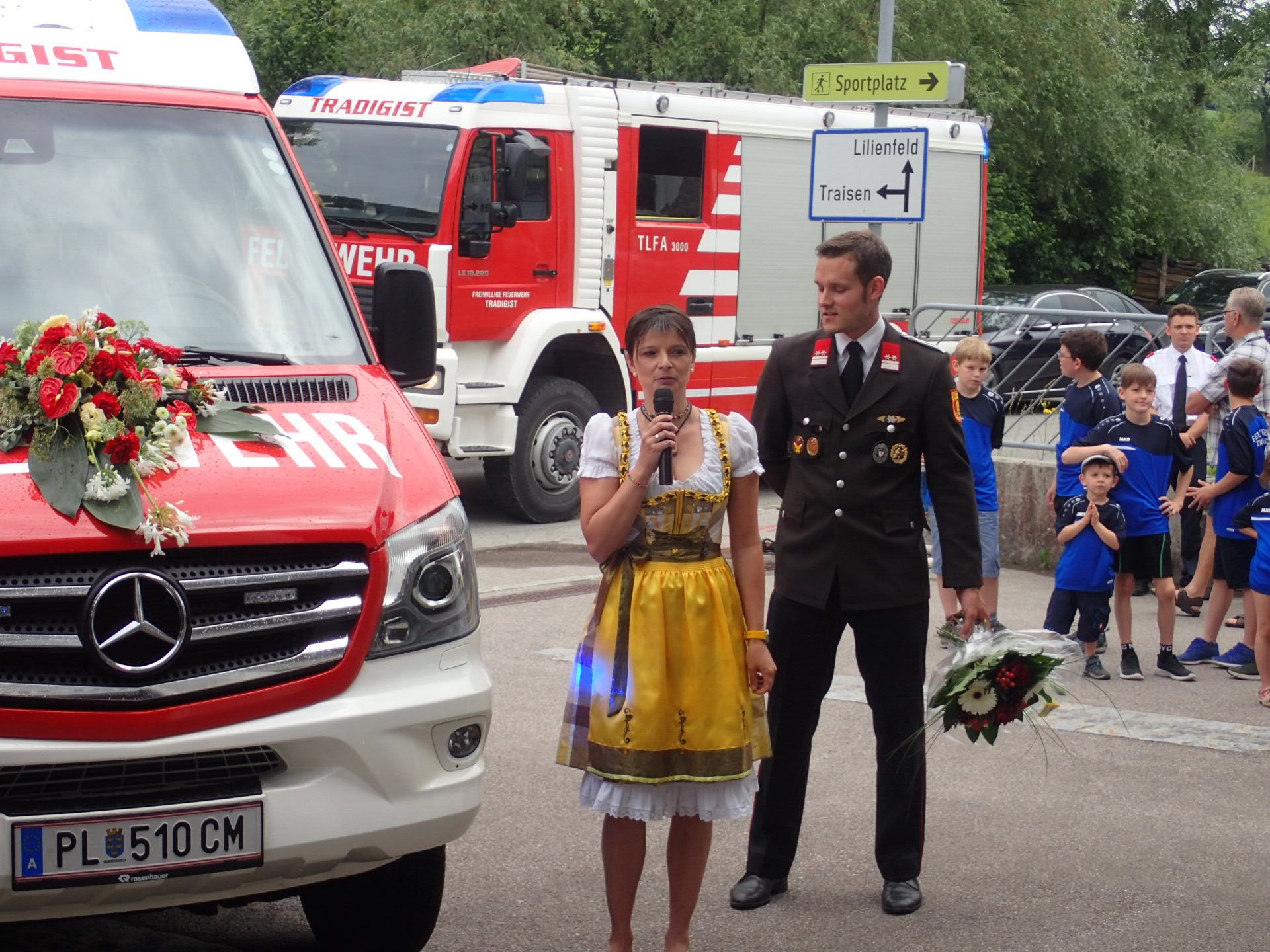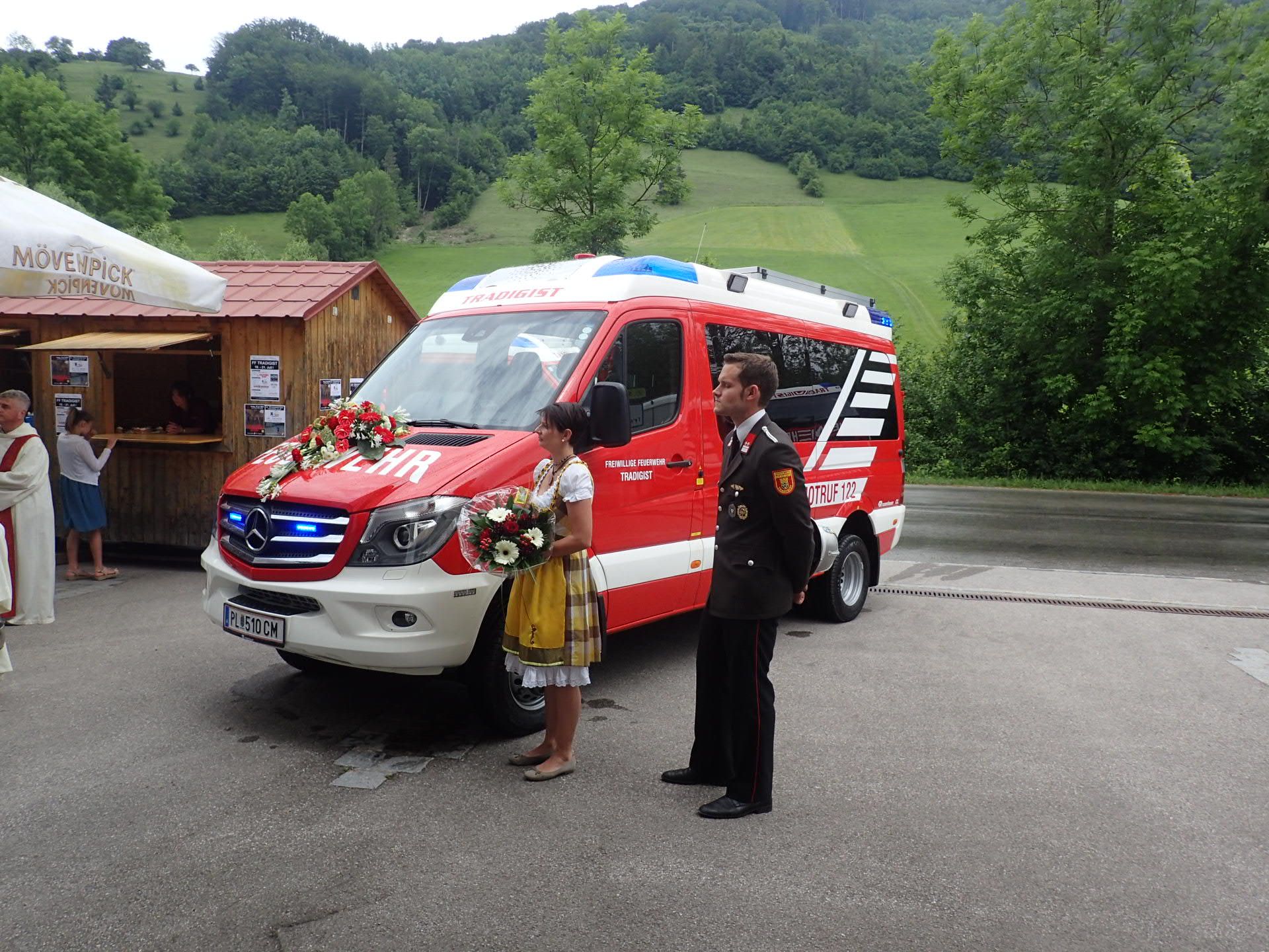 Am Pfingstmontag, 10.06.2019 folgten zahlreiche Gäste unserer Einladung zur Fahrzeugsegnung und zum Tag der offenen Tür. Die Heilige Messe wurde von Pater Johannes im FF-Haus zelebriert und vom Tradigister Fünfgsang musikalisch gestaltet. Im Anschluss erfolgte die feierlicher Segnung des neuen Einsatzfahrzeugs dessen Patin Melanie Fuxsteiner ist. Bei kühlen Getränken und Speisen vom Grill genossen wir den schönen Feiertag. Unsere kleinen Gäste freuten sich über die Hüpfburg sowie Zielspritzen mit Feuerwehrdrachen Grisu.