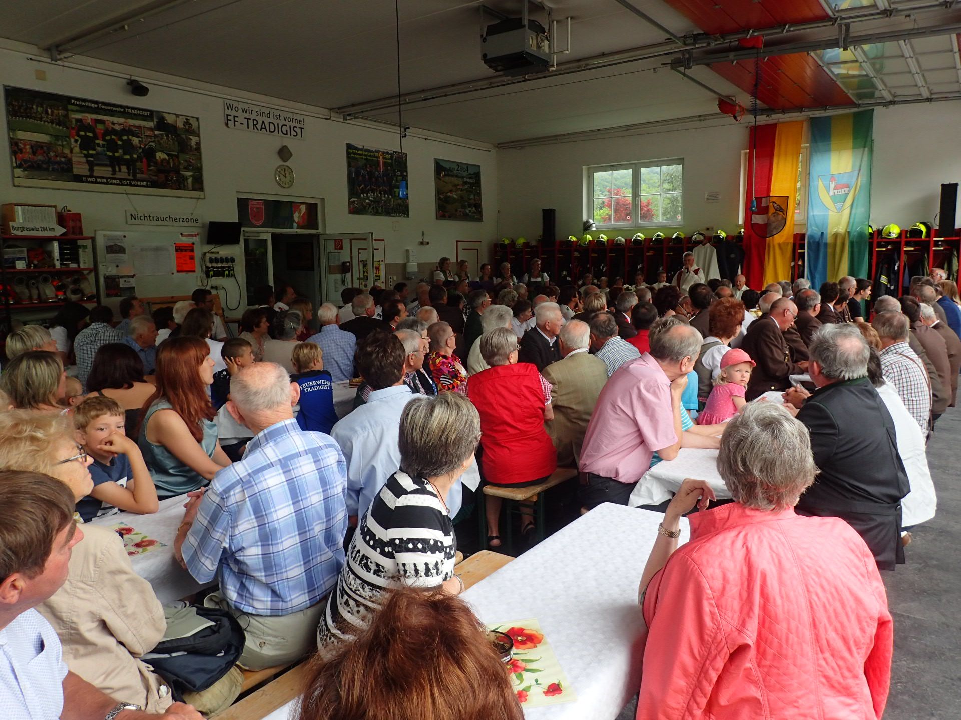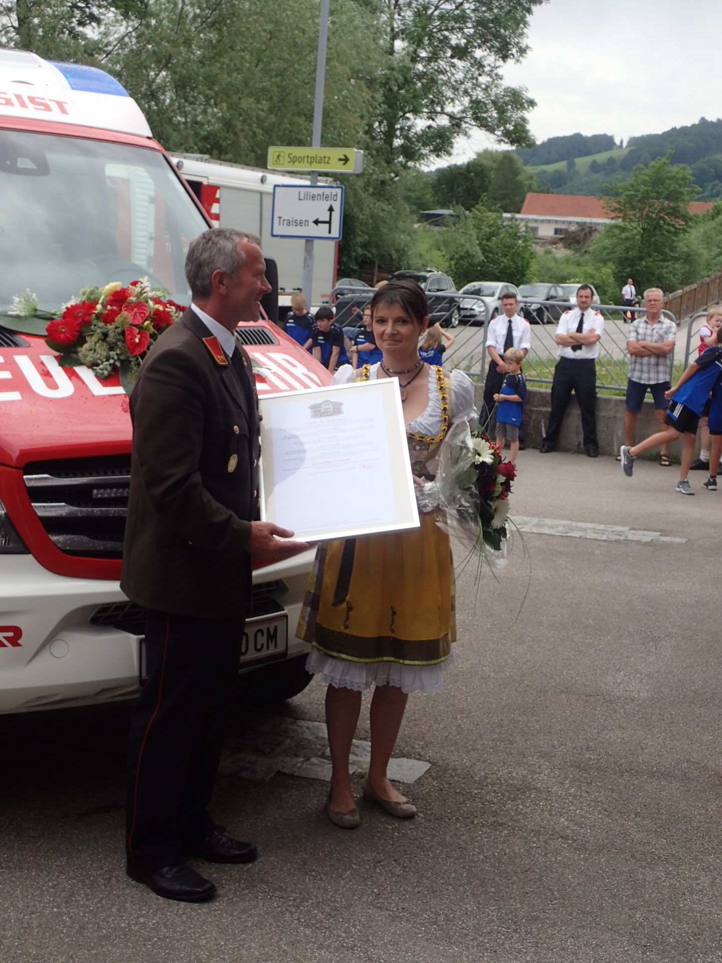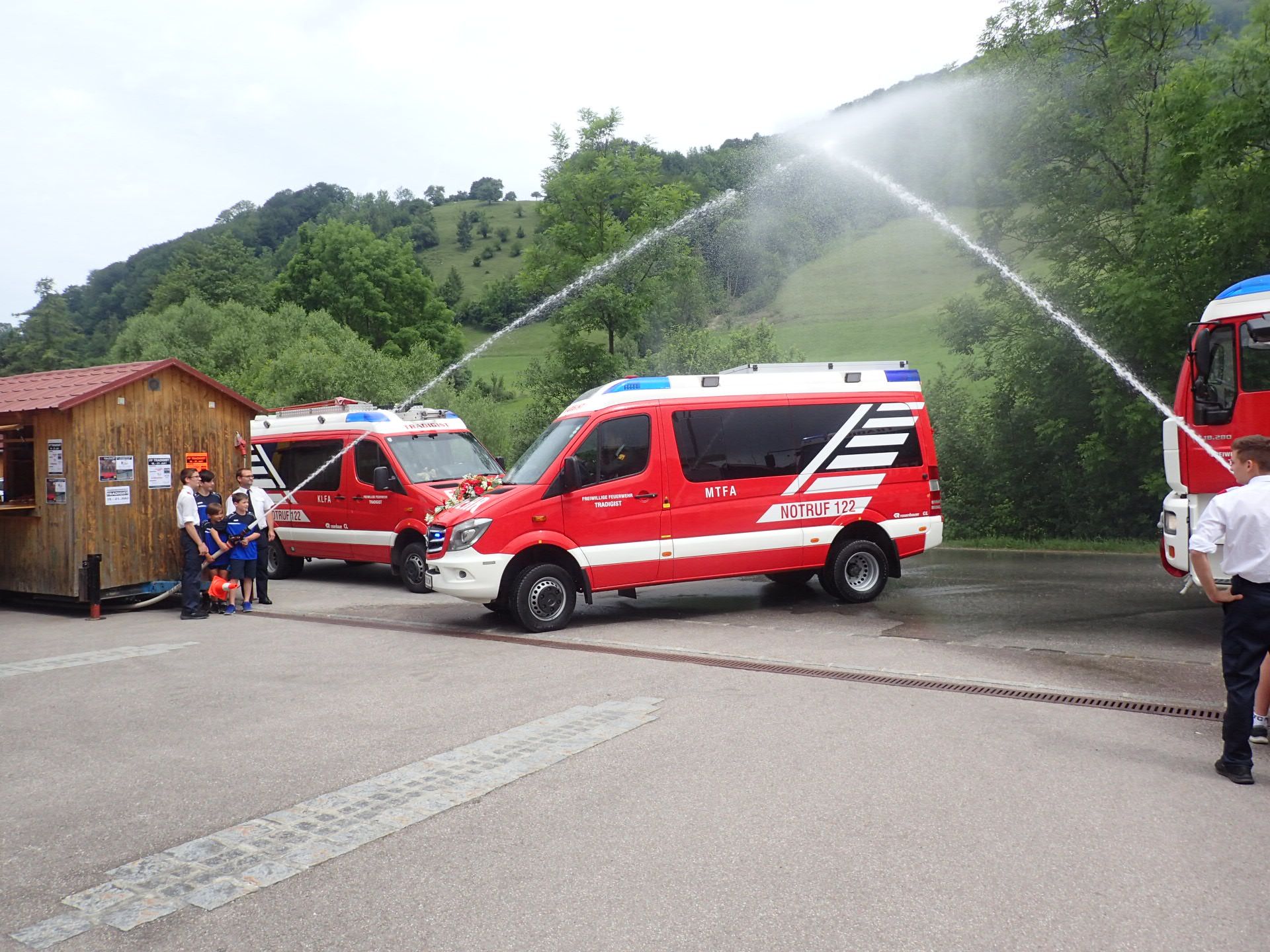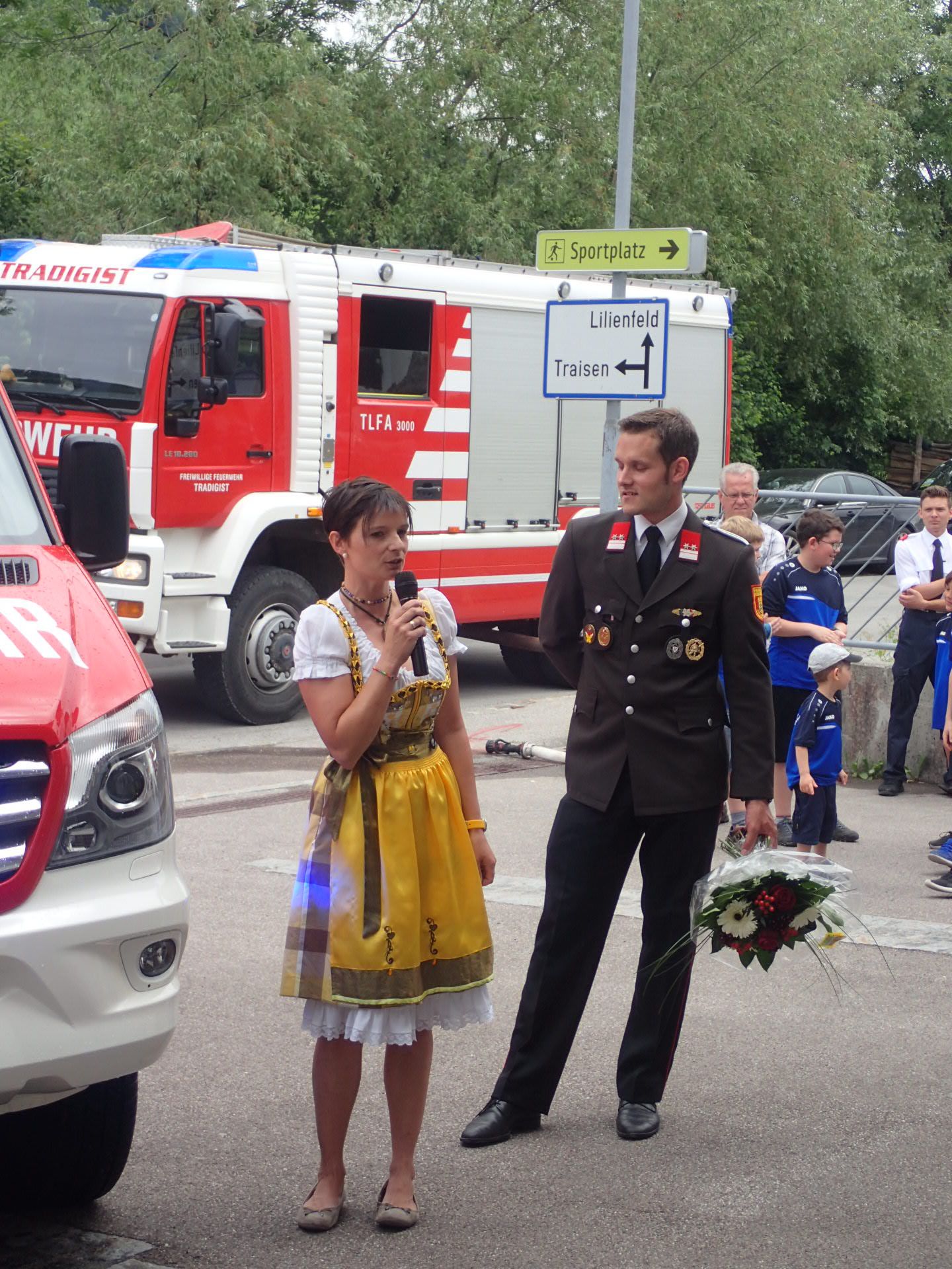 Am Pfingstmontag, 10.06.2019 folgten zahlreiche Gäste unserer Einladung zur Fahrzeugsegnung und zum Tag der offenen Tür. Die Heilige Messe wurde von Pater Johannes im FF-Haus zelebriert und vom Tradigister Fünfgsang musikalisch gestaltet. Im Anschluss erfolgte die feierlicher Segnung des neuen Einsatzfahrzeugs dessen Patin Melanie Fuxsteiner ist. Bei kühlen Getränken und Speisen vom Grill genossen wir den schönen Feiertag. Unsere kleinen Gäste freuten sich über die Hüpfburg sowie Zielspritzen mit Feuerwehrdrachen Grisu.