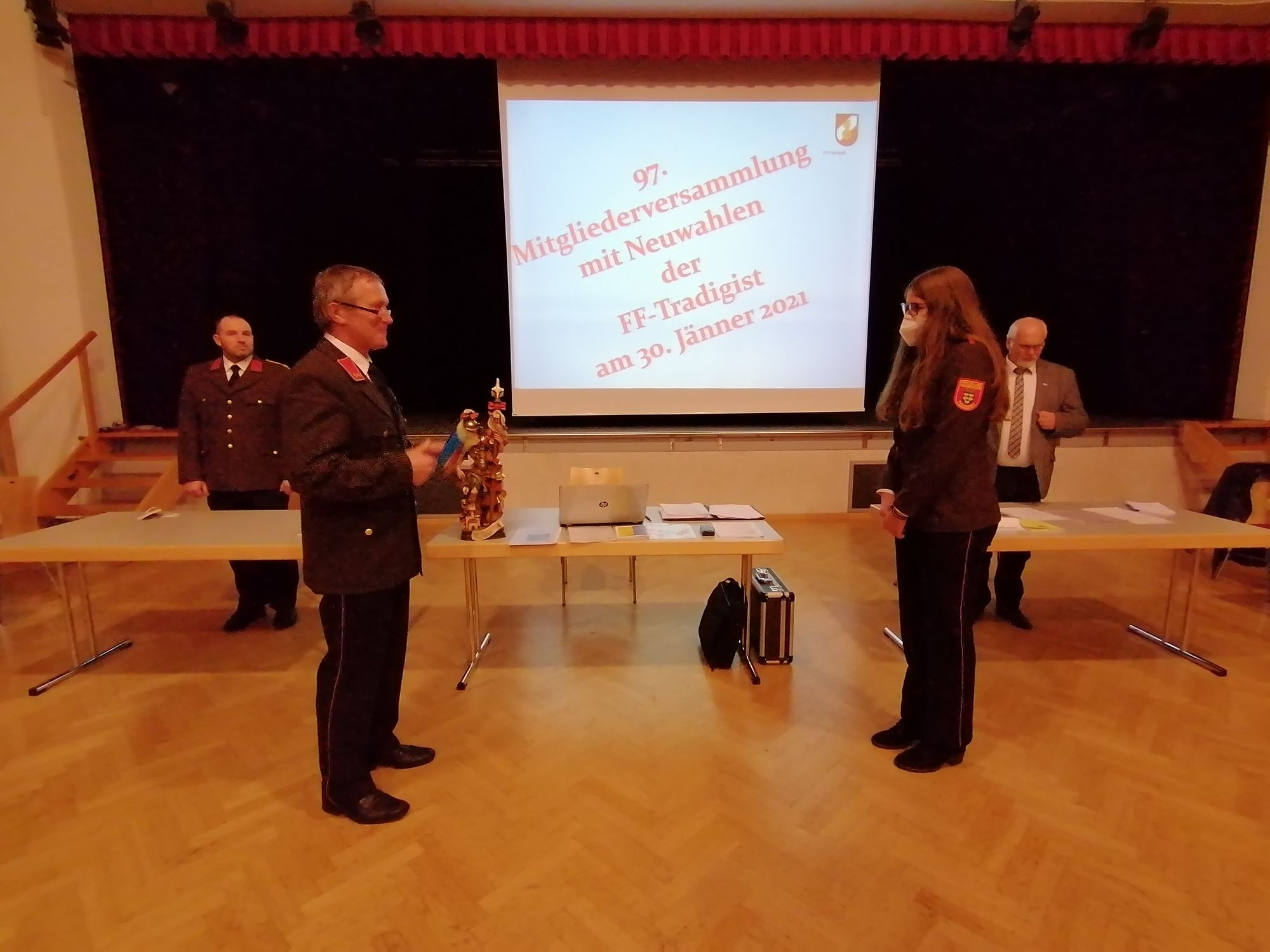 67 Mitglieder davon 50 aktive Mitglieder, 17 Reservisten, 1 Neuzugang (PFM Sarah Wieland). Sie wurde im Rahmen der Mitgliederversammlung angelobt, da die Angelobung zum geplanten Termin (Floriani) coronabedingt nicht stattfinden konnte. Auch alle Beförderungen fanden aus diesem Grund erst jetzt statt.