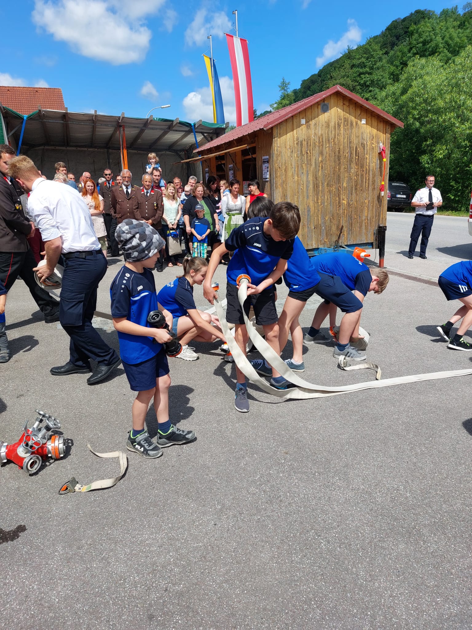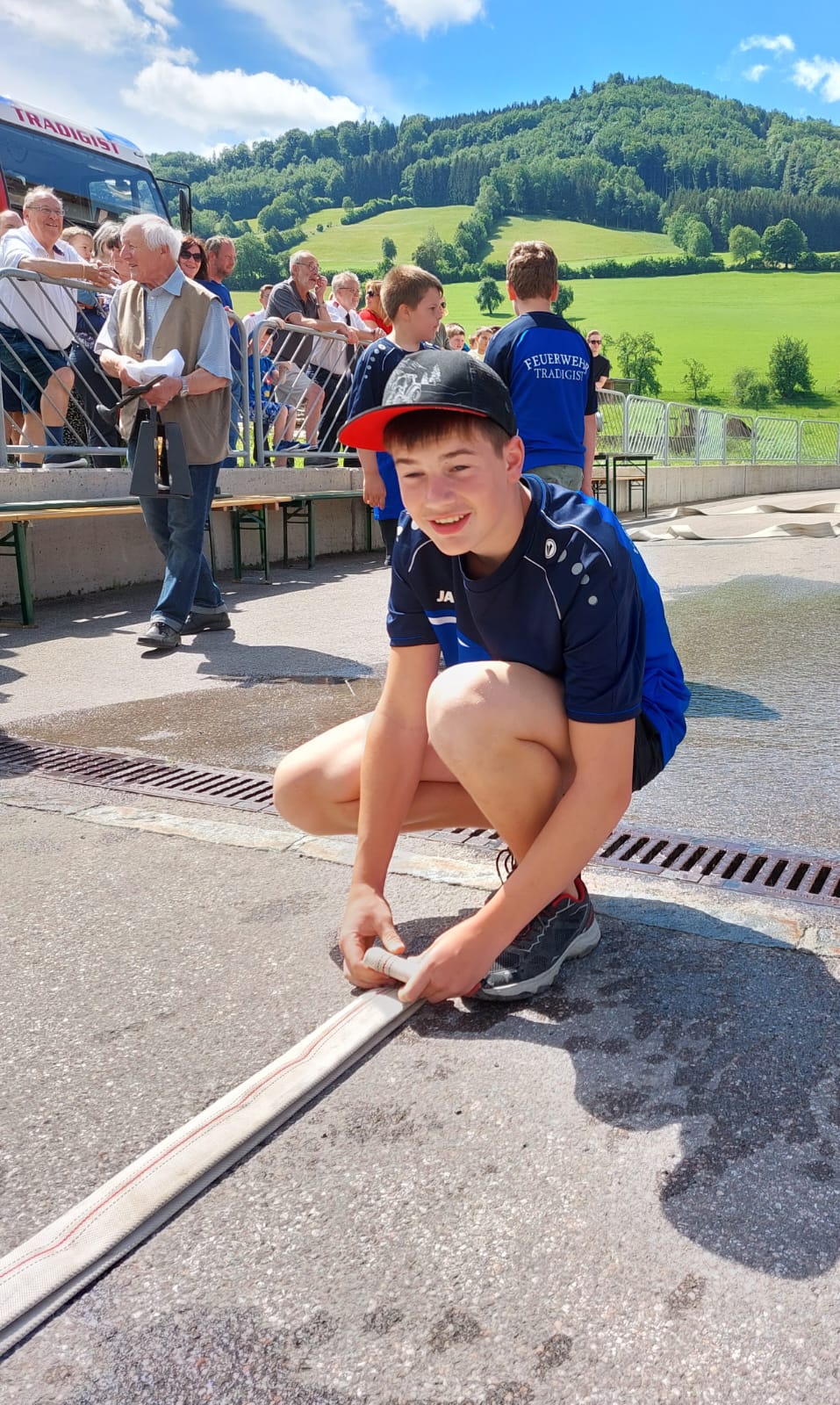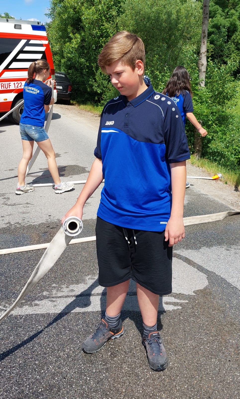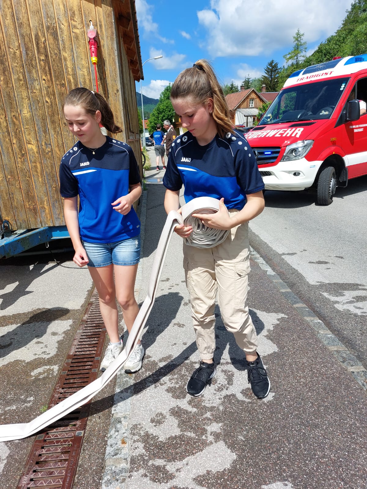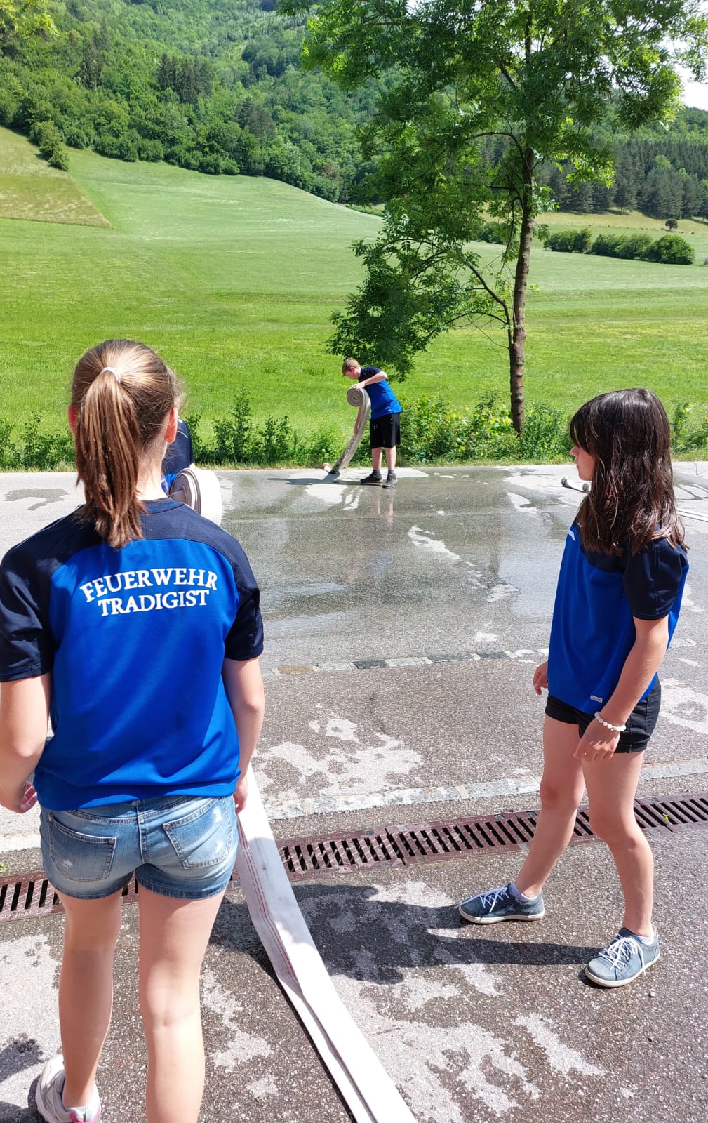 Die Heilige Messe wurde von Pater Leonhard im FF-Haus zelebriert und vom Tradigister Fünfg`sang musikalisch umrahmt. Während der Messe erfolgte die feierliche Segnung der neuen Tragkraftspritze deren Patin Brigitte Schmid ist. Nach den Ansprachen des Kommandanten und der beiden Bürgermeister wurde von den Tradigister Kindern ein bereits zuvor geübter Löschangriff mit 6 Strahlrohren und der neuen Tragkraftspritze gezeigt.