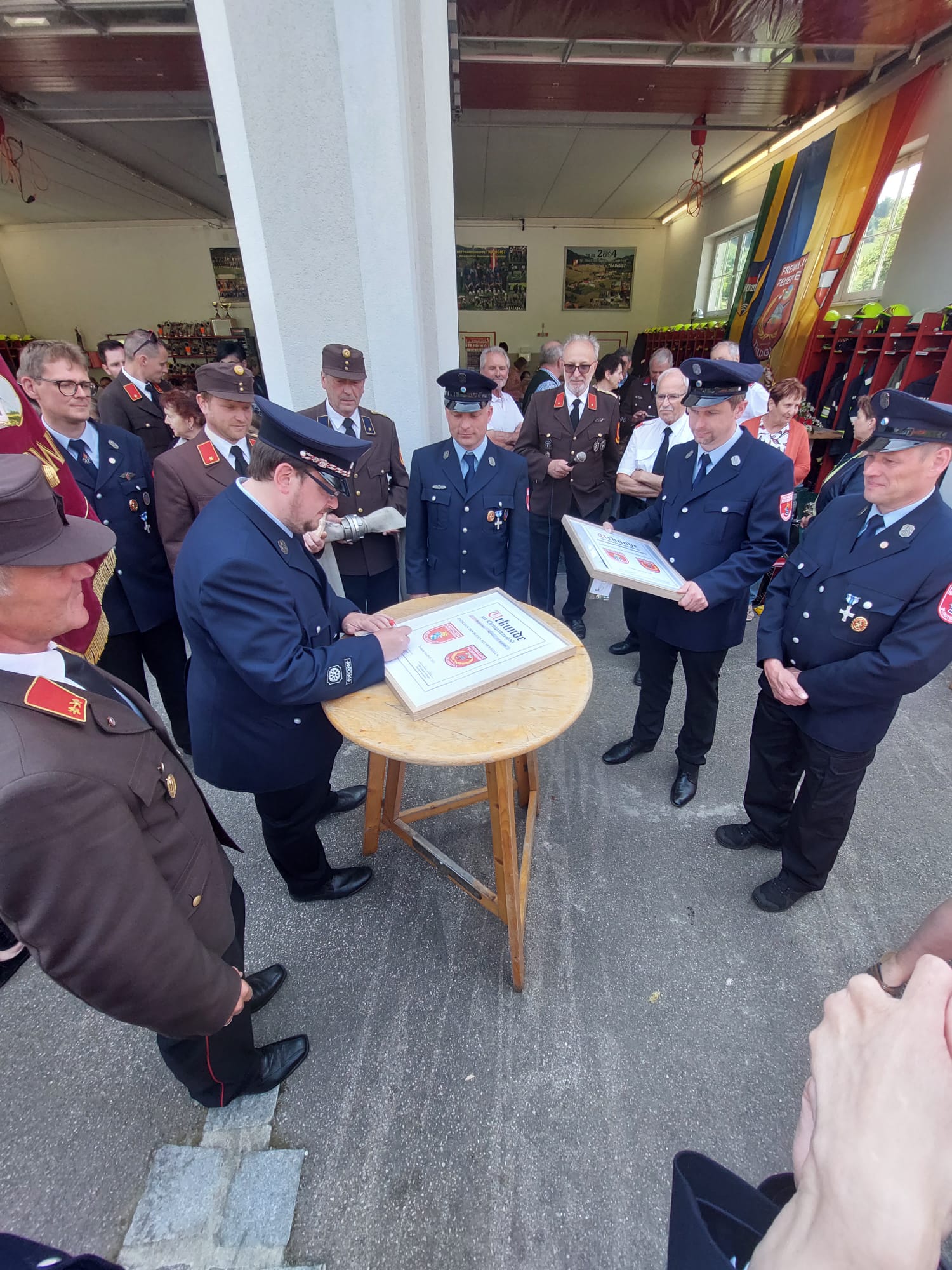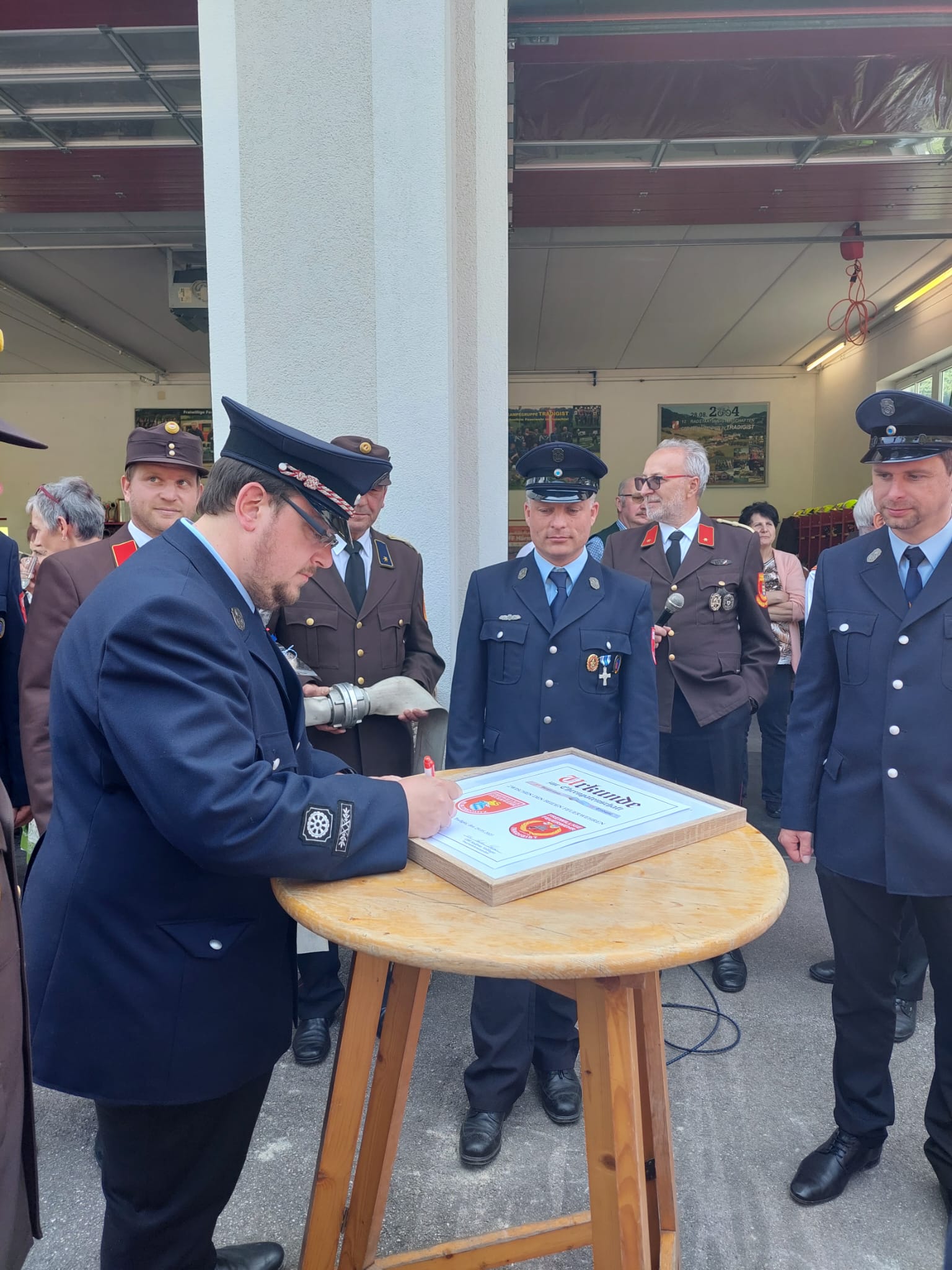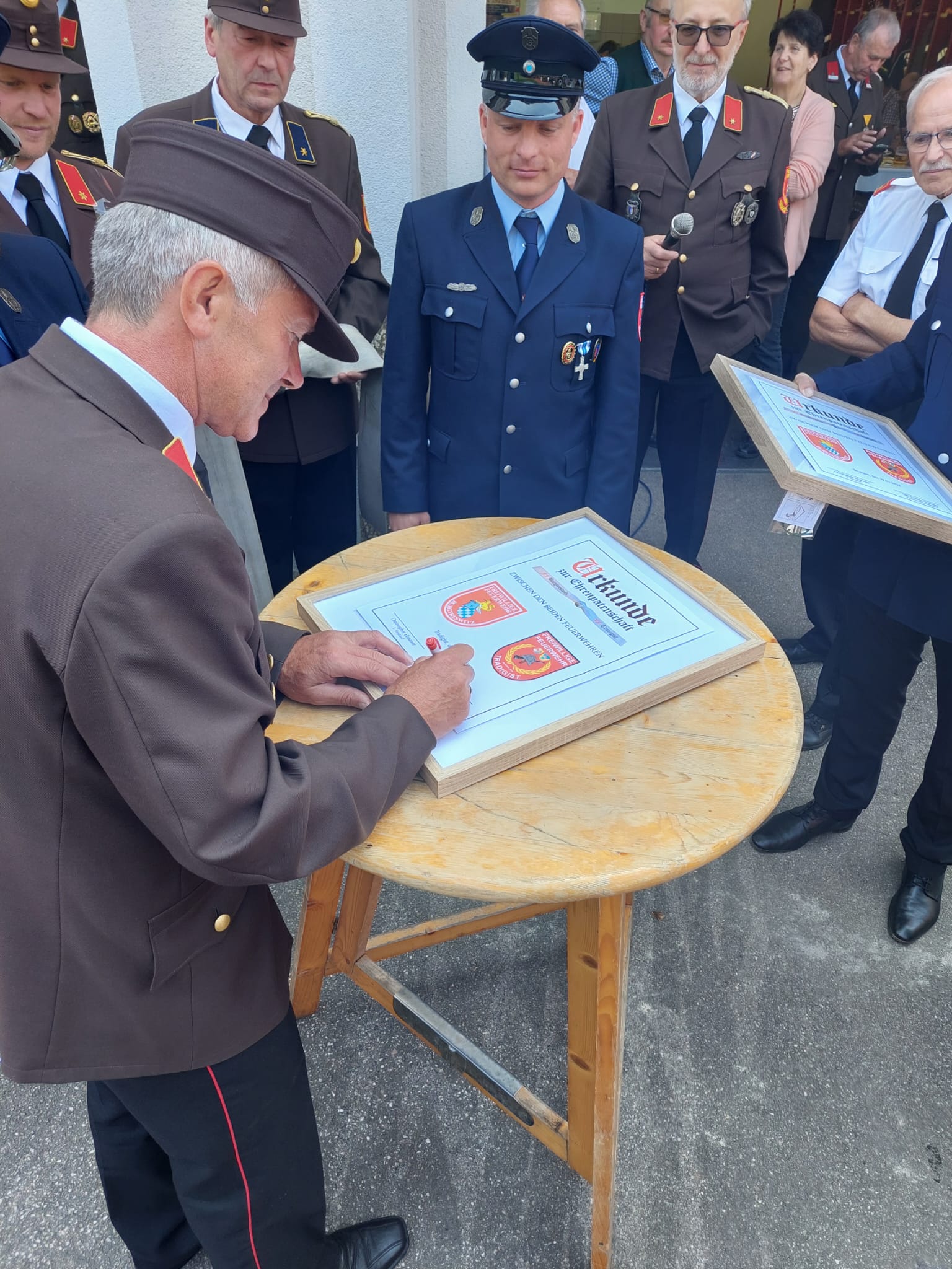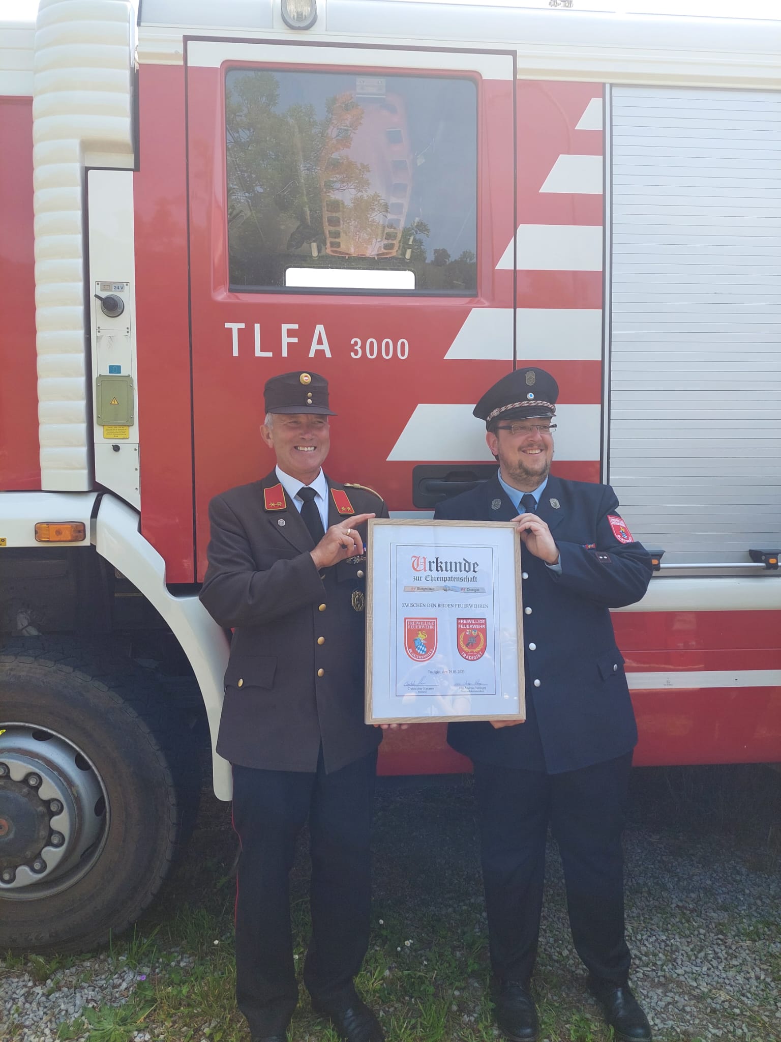 Ein Highlight des Tages war auch das "Patenbitten" der befreundeten Feuerwehr Burgtreswitz aus Bayern, bei dem die Urkunde zur Ehrenpatenschaft unterzeichnet wurde.