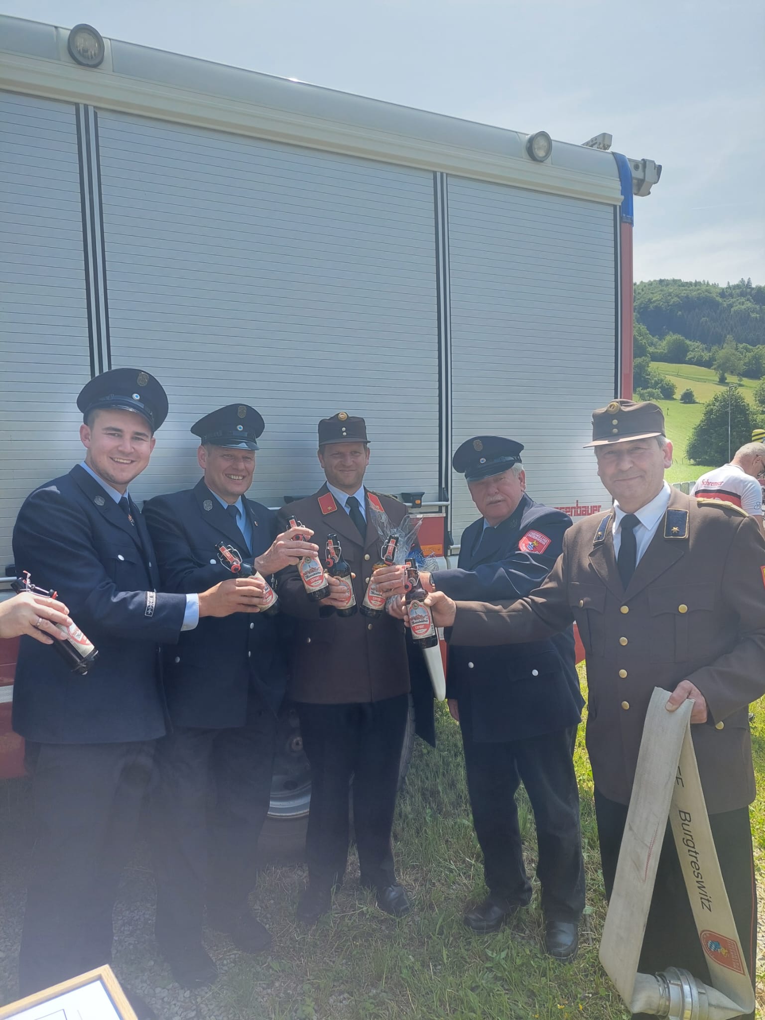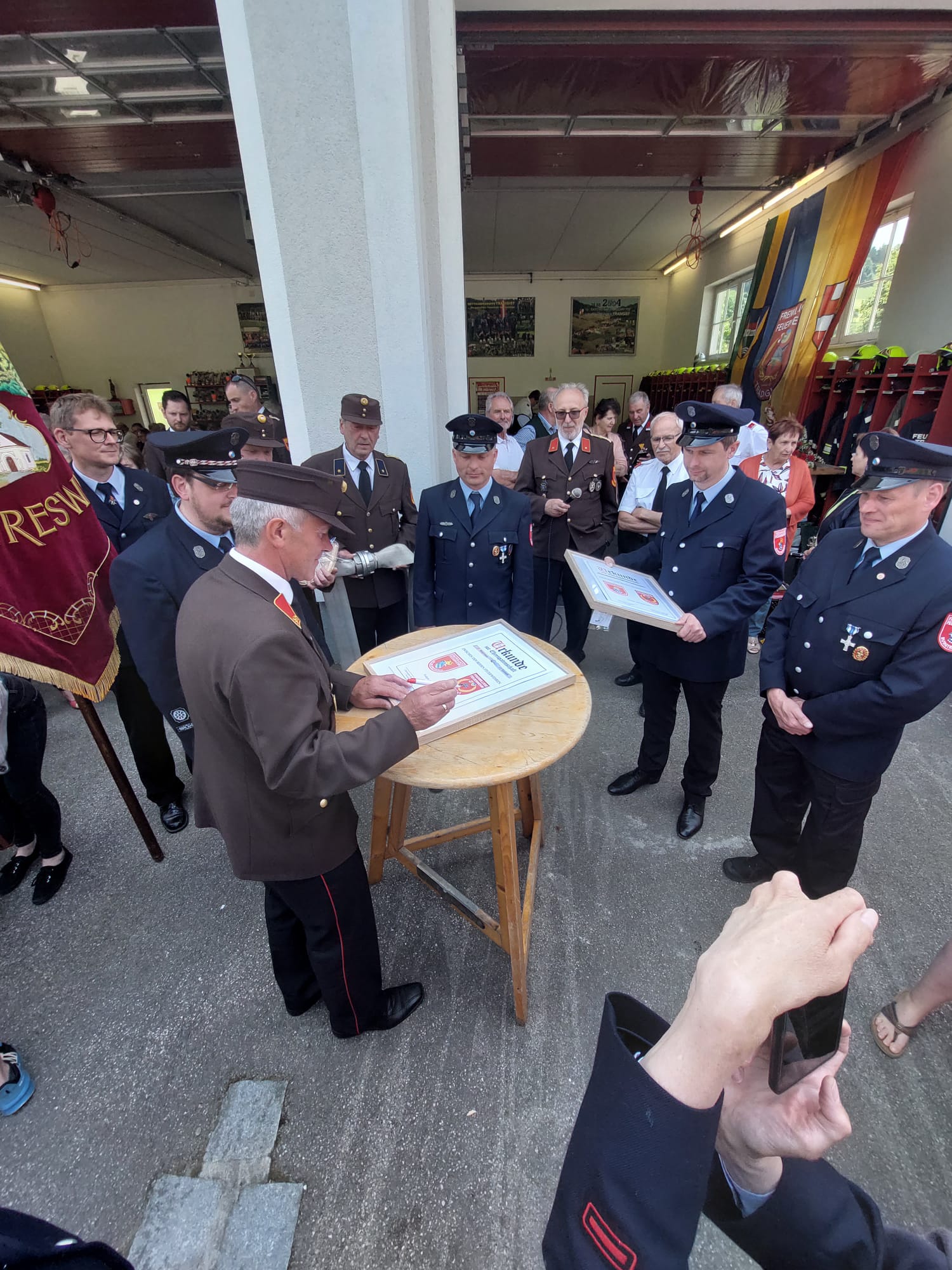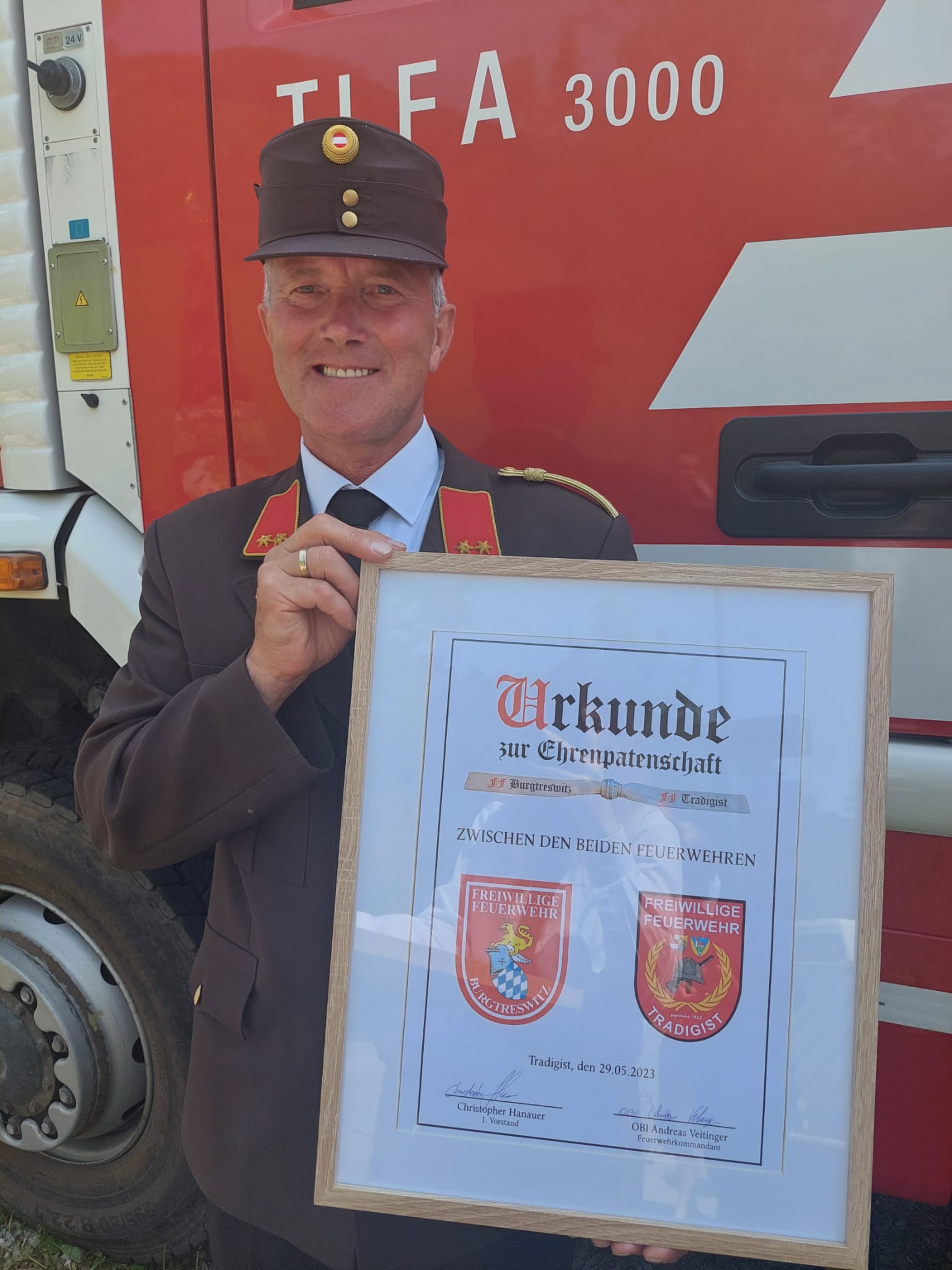 Ein Highlight des Tages war auch das "Patenbitten" der befreundeten Feuerwehr Burgtreswitz aus Bayern, bei dem die Urkunde zur Ehrenpatenschaft unterzeichnet wurde.