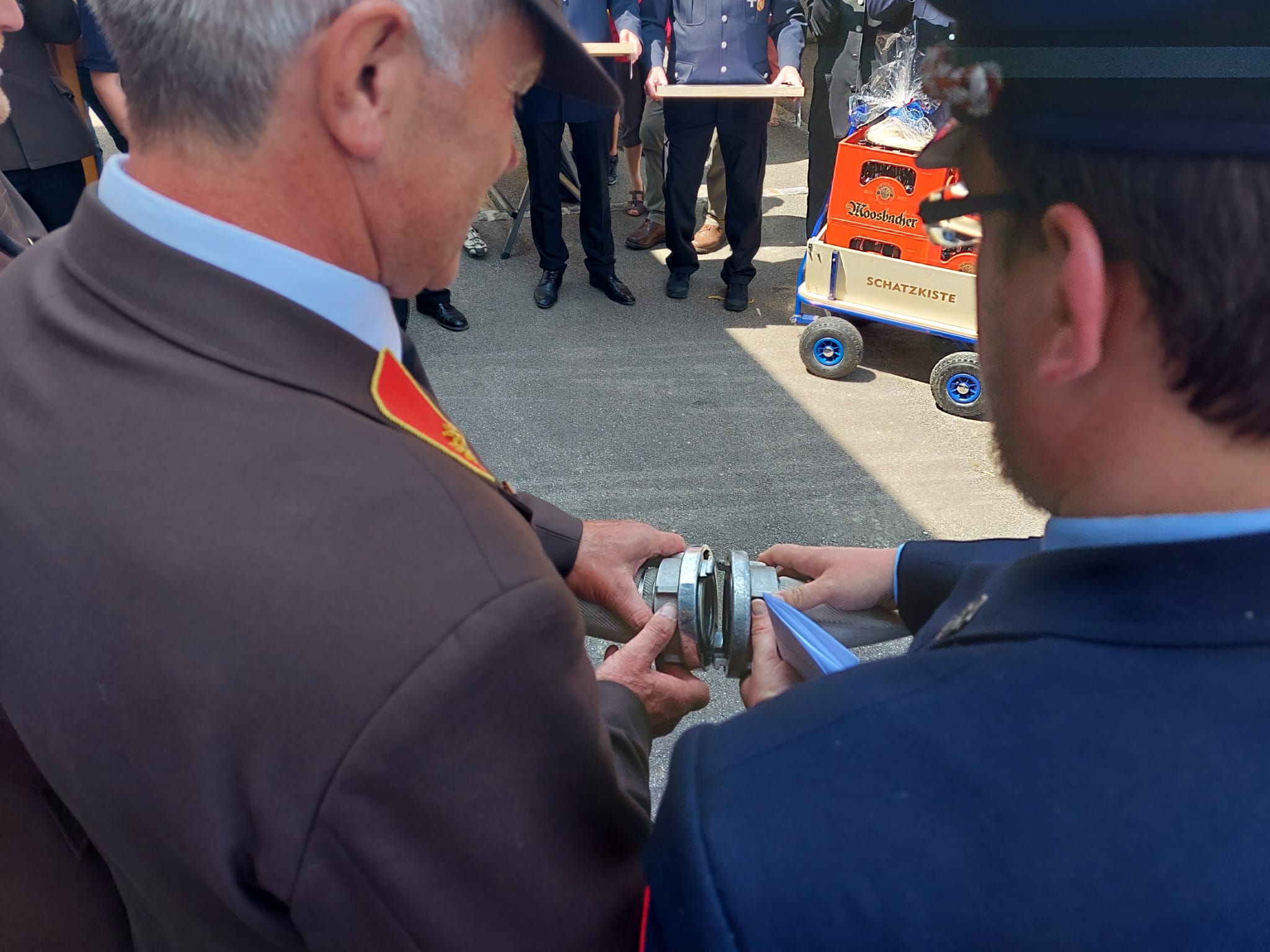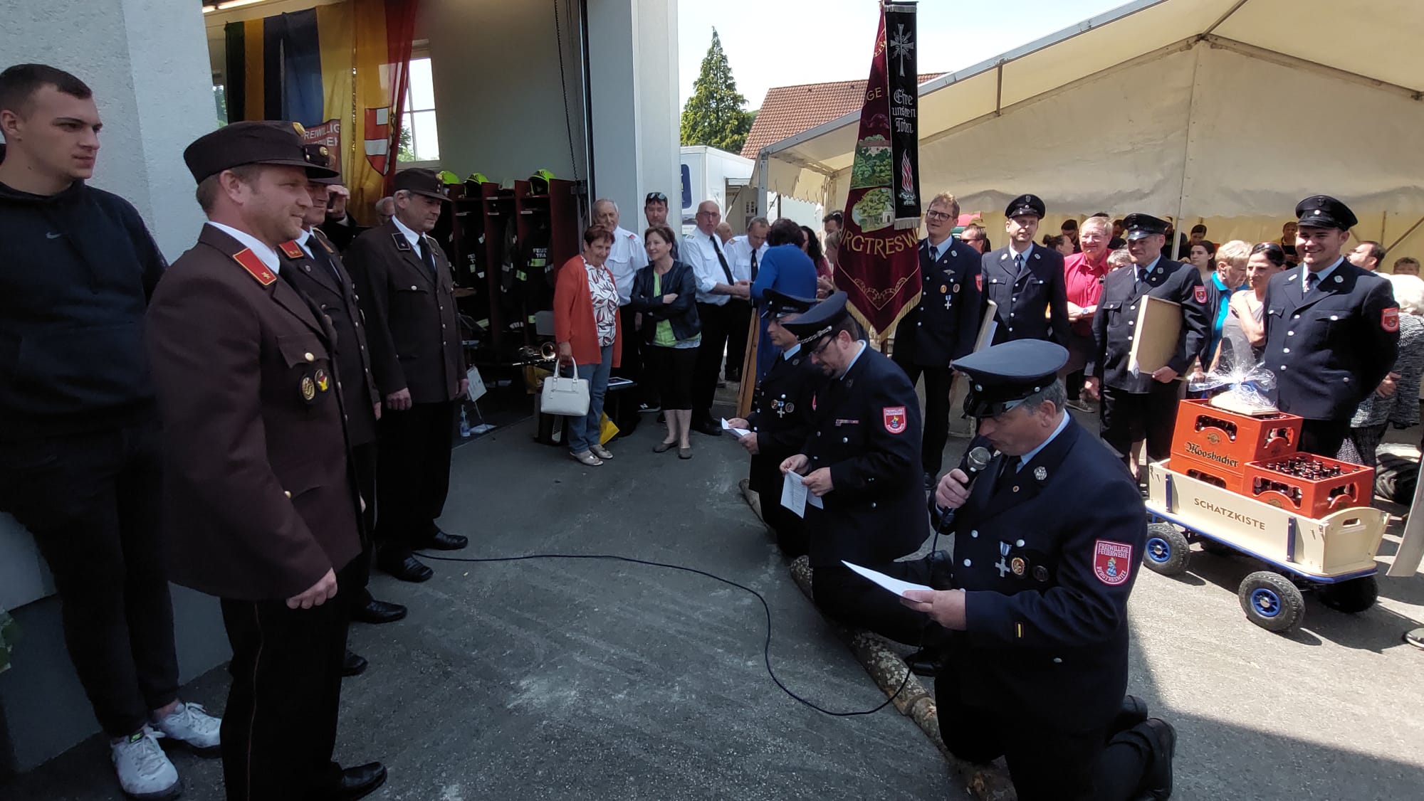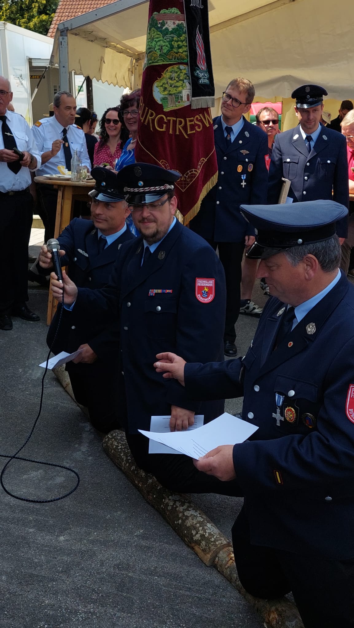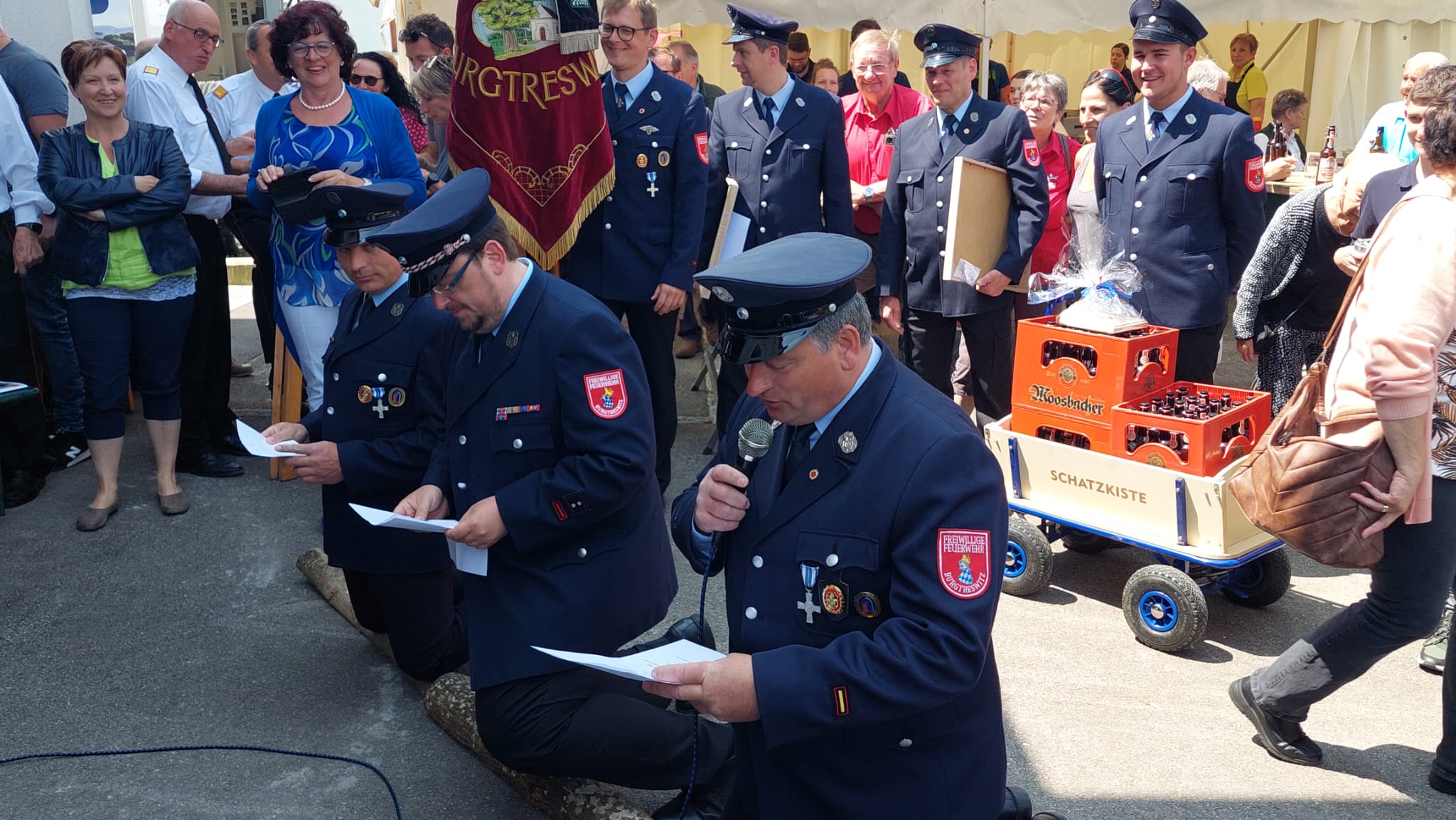 Ein Highlight des Tages war auch das "Patenbitten" der befreundeten Feuerwehr Burgtreswitz aus Bayern, bei dem die Urkunde zur Ehrenpatenschaft unterzeichnet wurde.