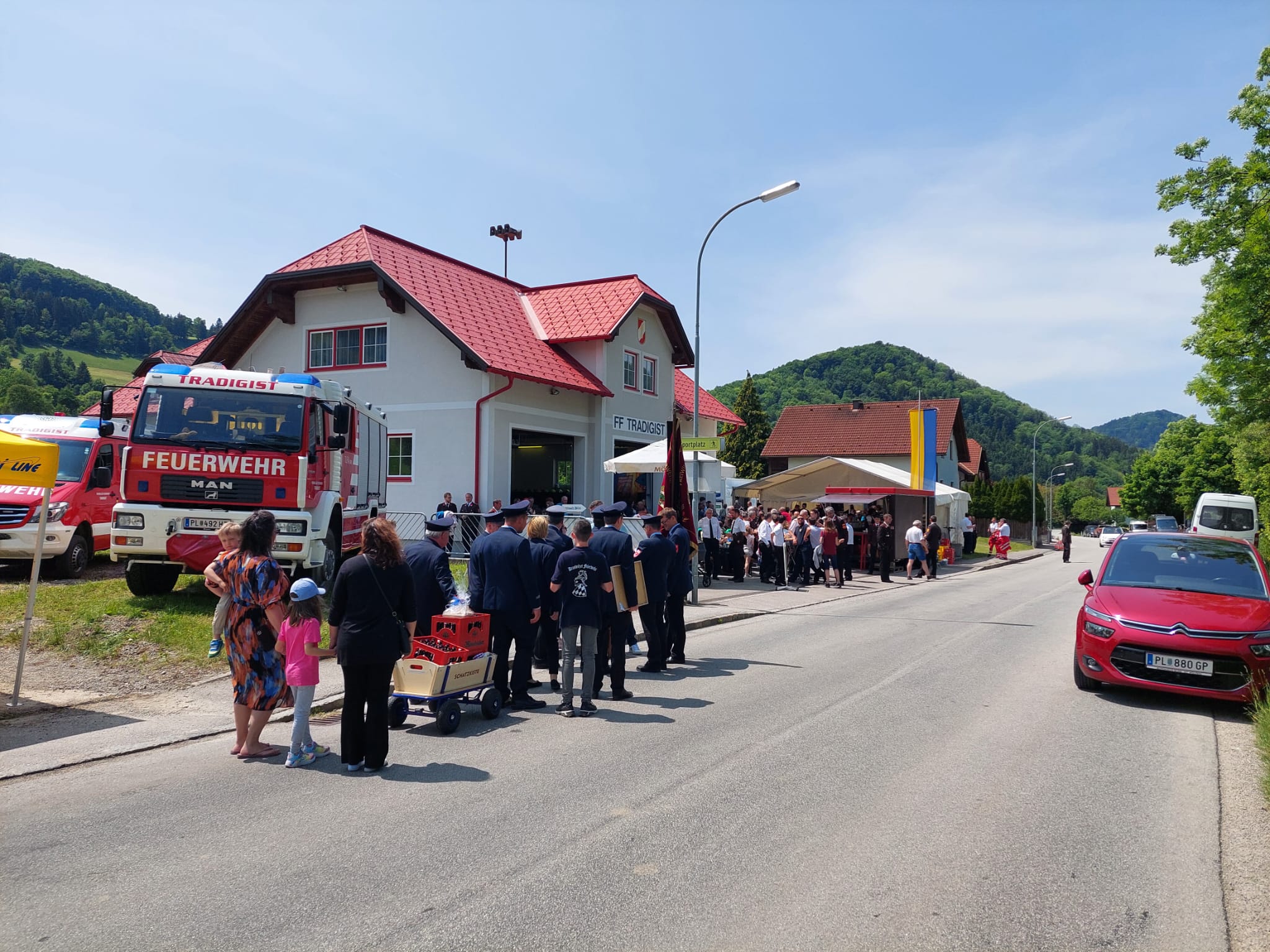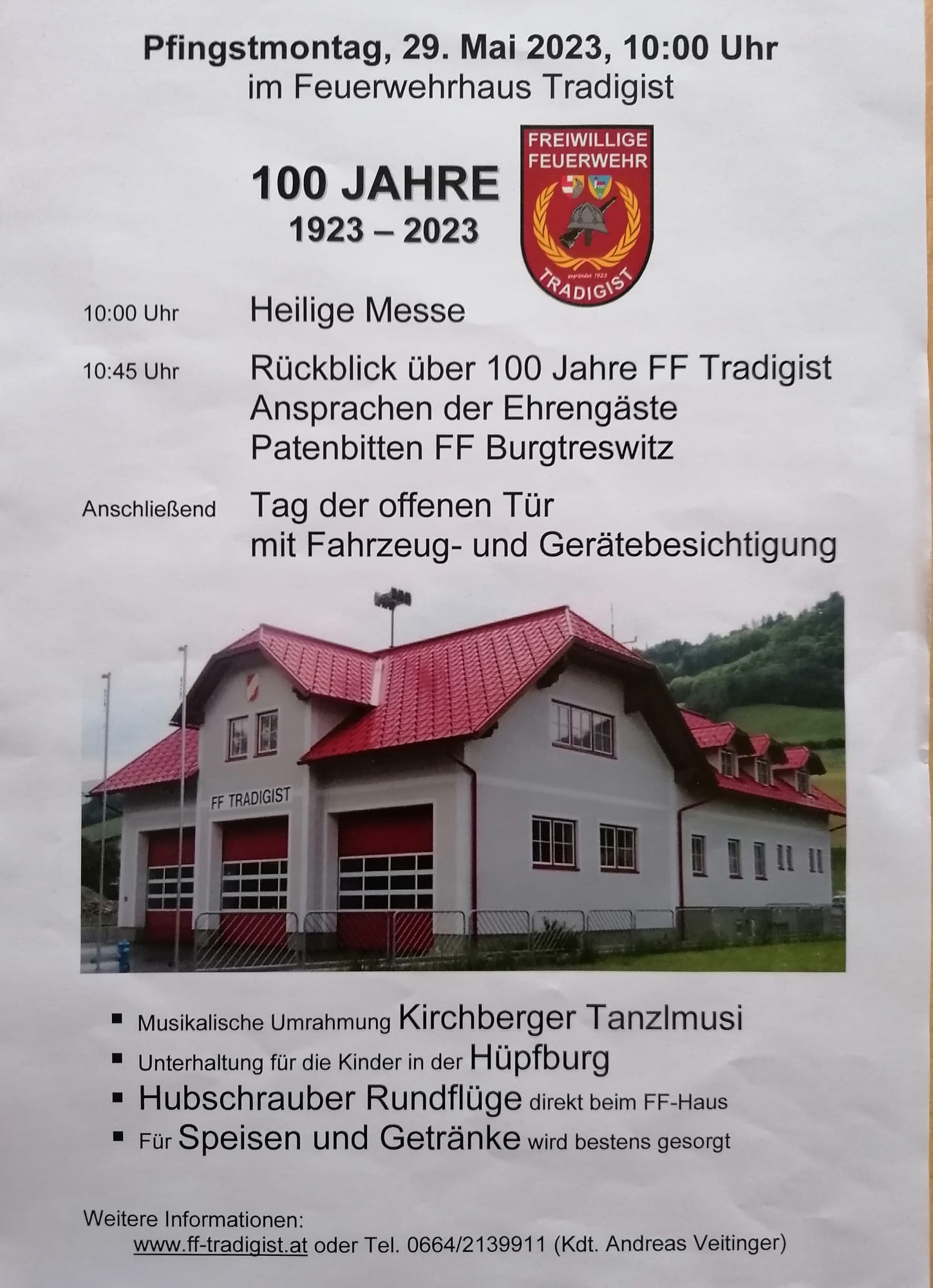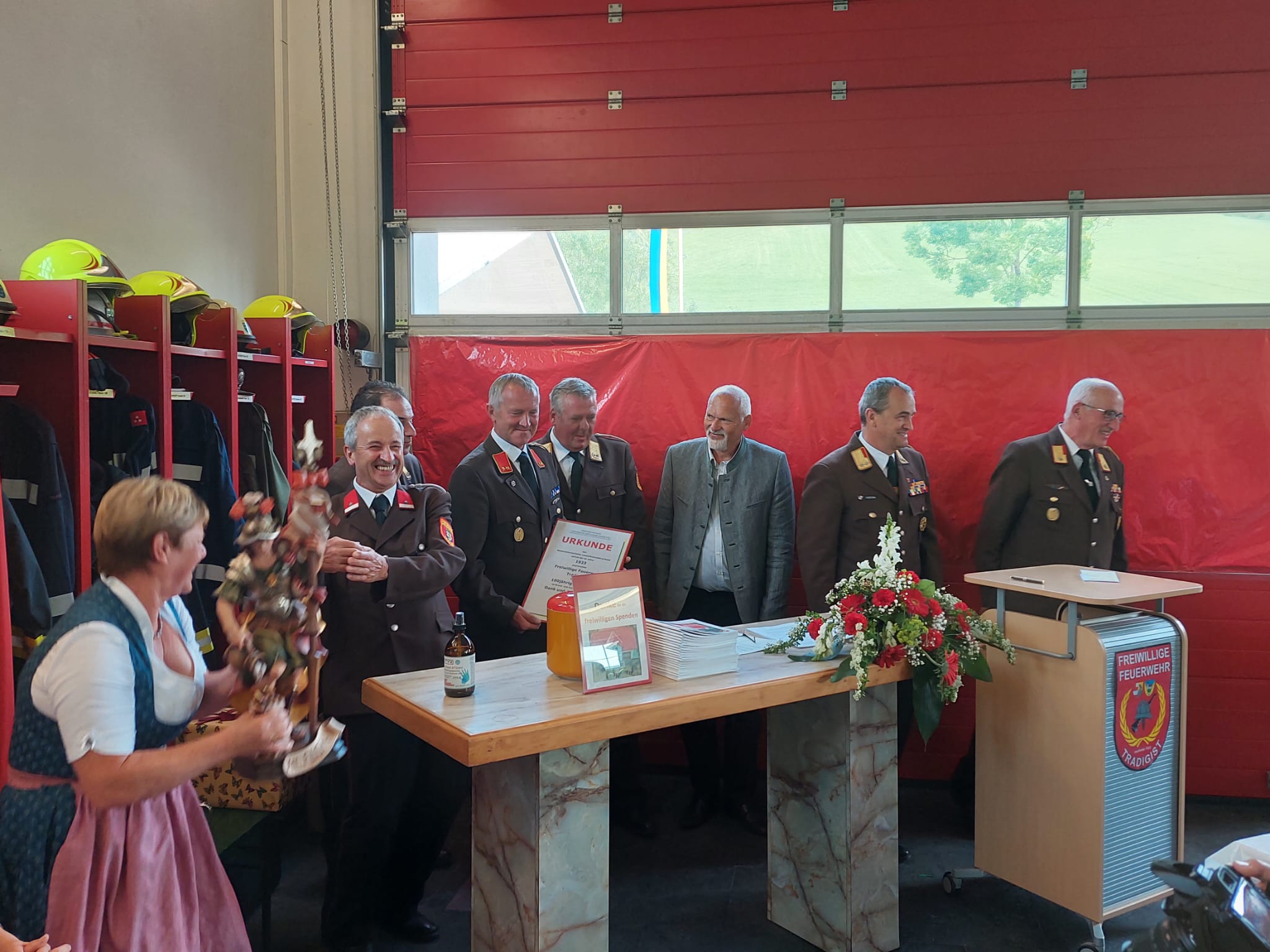 100 Jahre FF-Tradigist muss gebührend gefeiert werden. Bei strahlendem Sonnenschein fanden sich viele Festgäste beim Feuerwehrhaus in Tradigist ein.