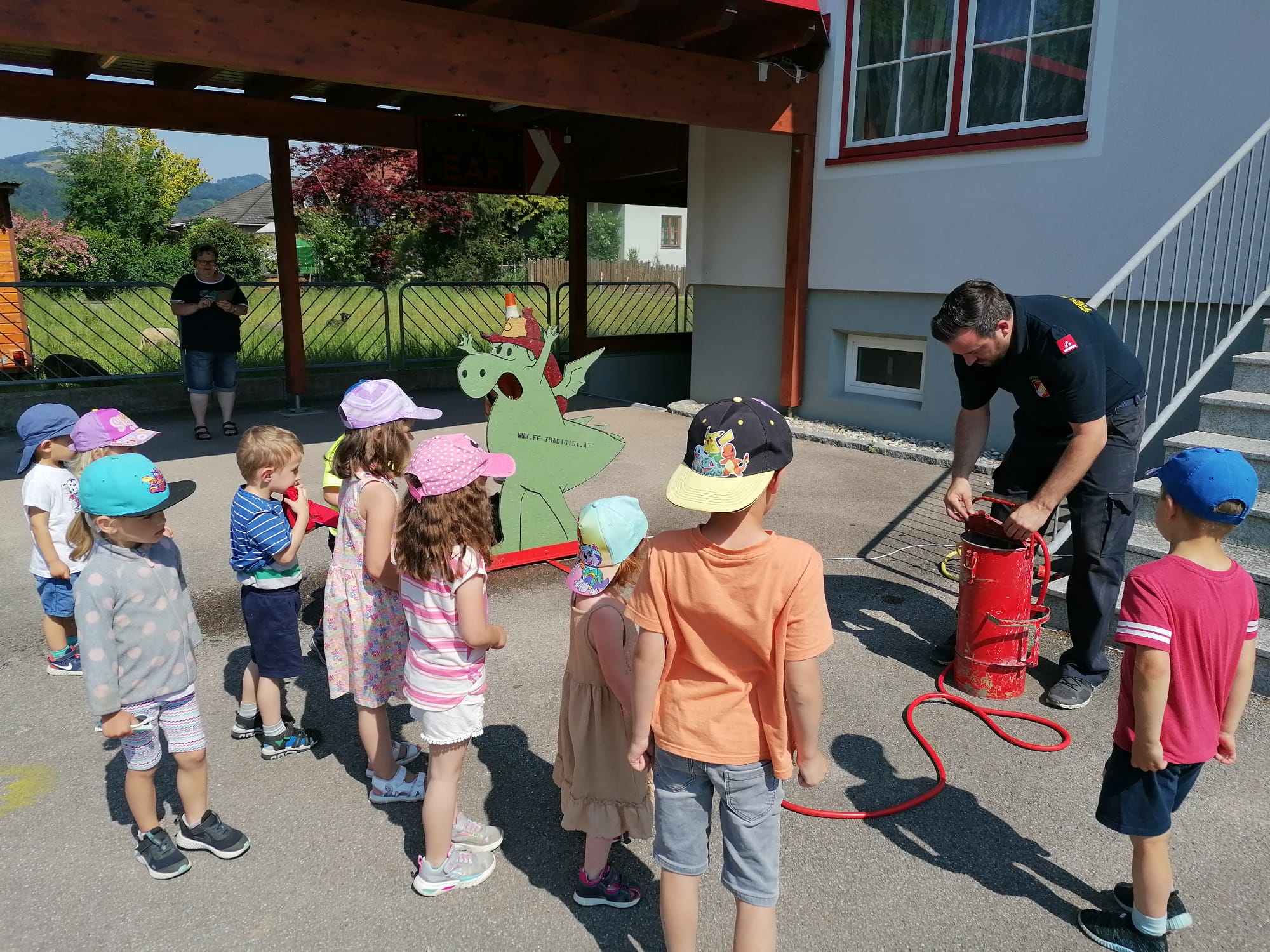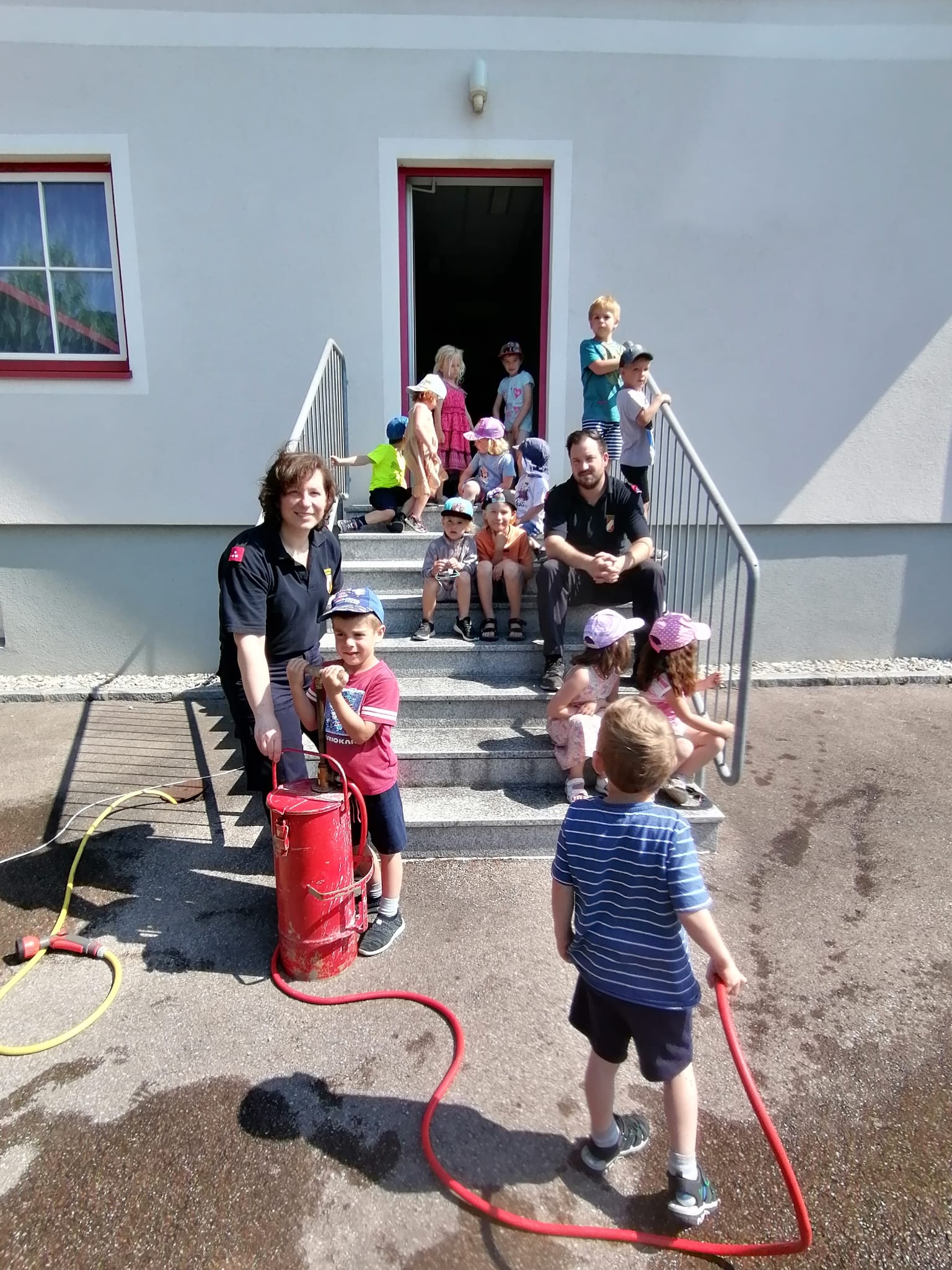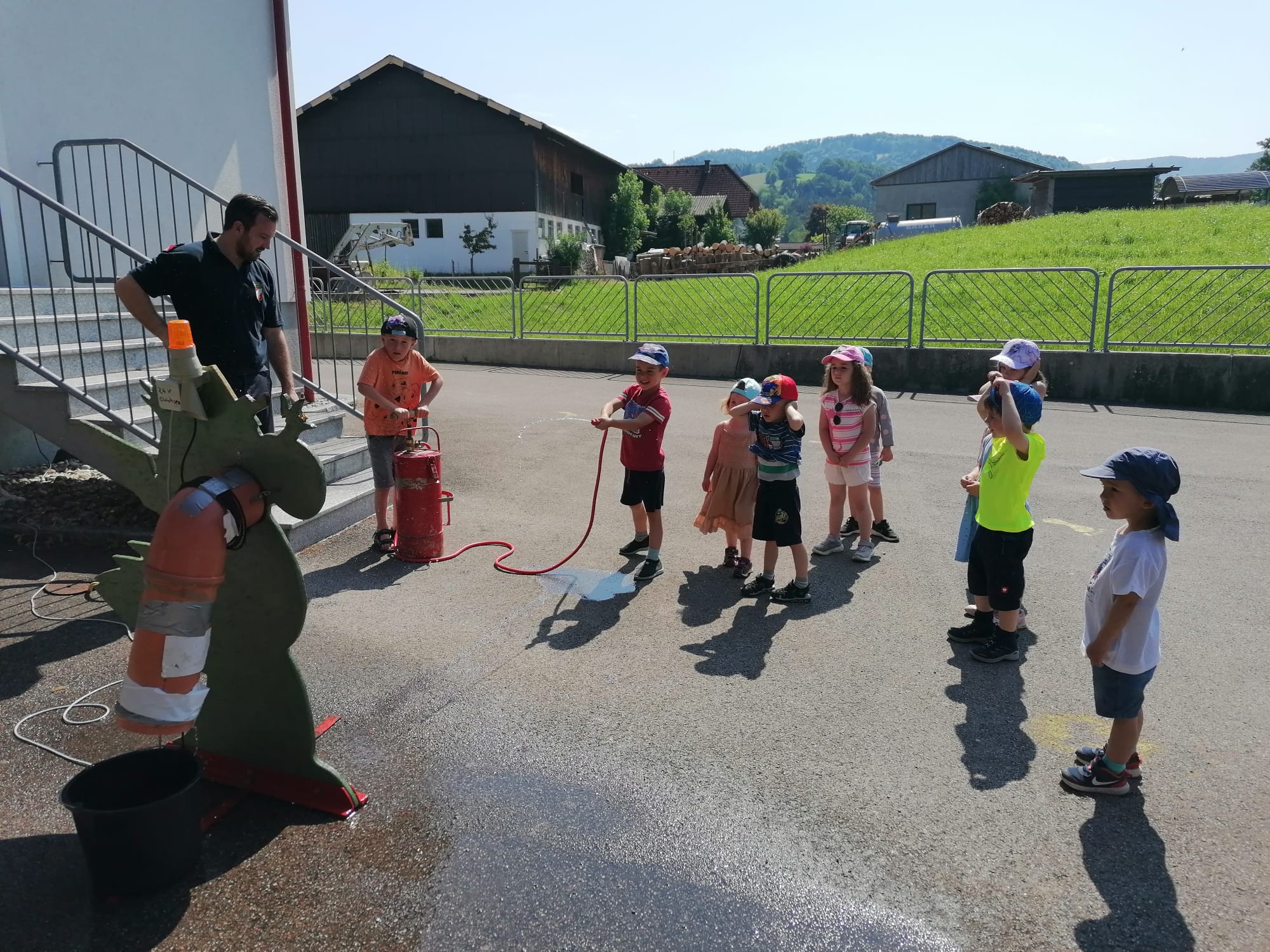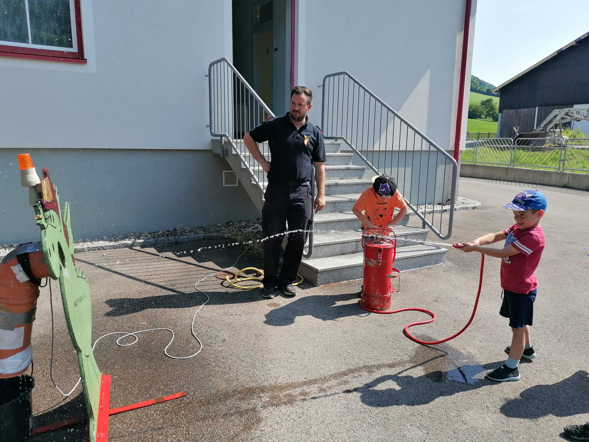 Neben der Besichtigung von Fahrzeugen und Gerätschaften stand Zielspritzen mit dem Feuerwehrdrachen Grisu und eine Fahrt im Feuerwehrauto auf dem Programm.