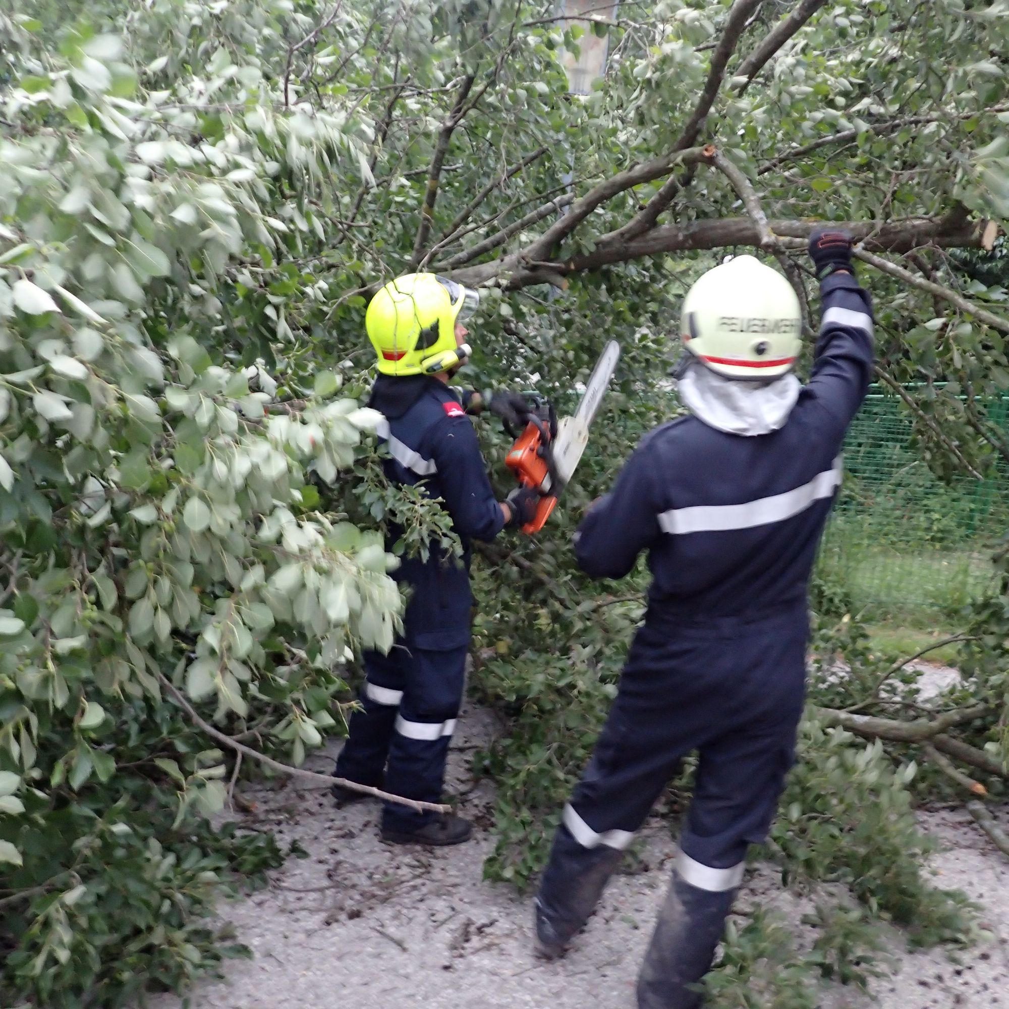 Nachdem genug Fotos für die Versicherung gemacht worden waren, konnten wir mit unseren Aufräumarbeiten und zerlegen des umgestürtzen Baumes beginnen.
