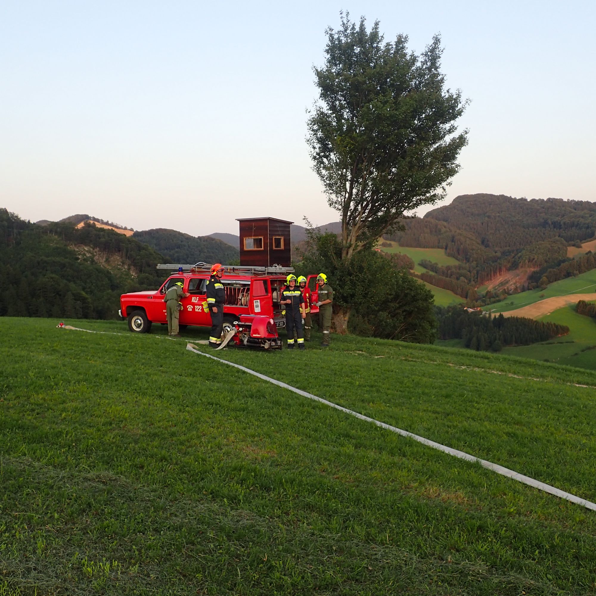 Zugskommandant OBI Andreas Veitinger (FF Tradigist) lobte in der abschließenden Übungsbesprechung die professionelle Arbeit aller, die an der Übung teilgenommen haben. Vor allem da die Voraussetzungen, durch das steile Gelände von der Wasserentnahme bis zum Brandobjekt, sehr schwierig waren.