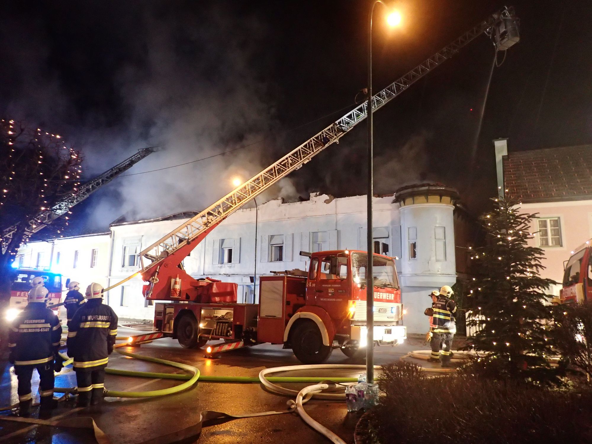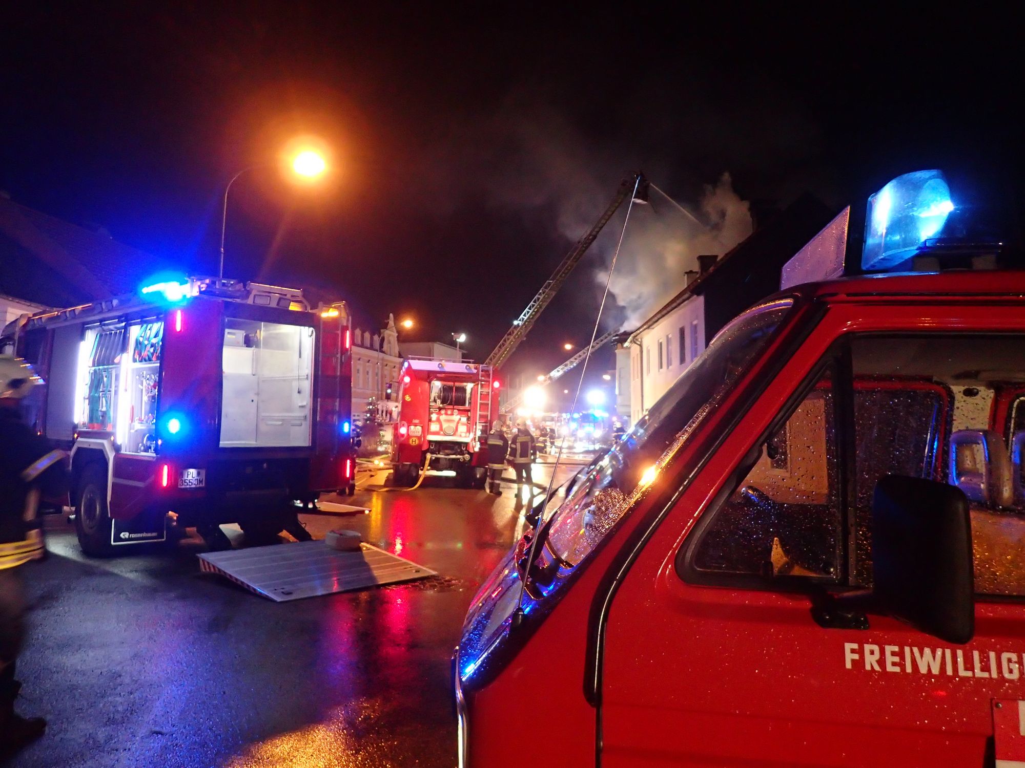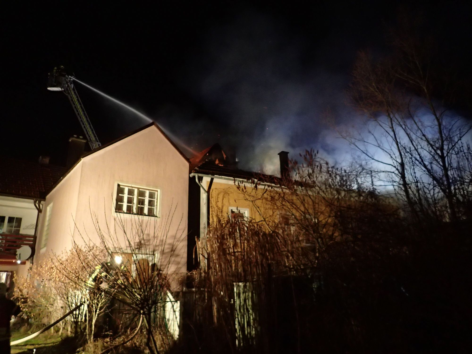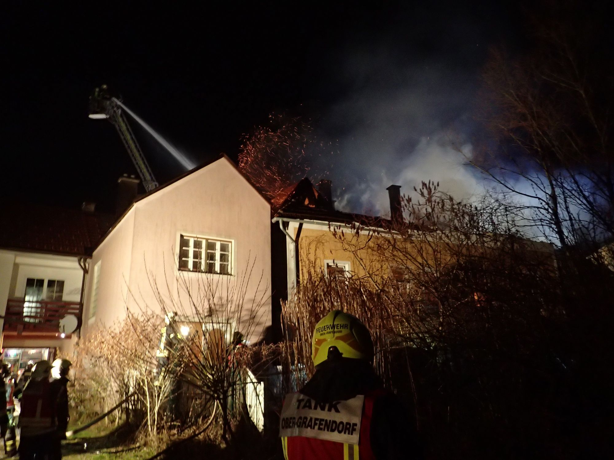 Beim Eintreffen am Einsatzort stand das Obergeschoß des leerstehenden Wohnhauses bereits im Vollbrand. Zeitgleich wurde der Brand bekämpft sowie die Nachbargebäude vor Übergreifen der Flammen geschützt.