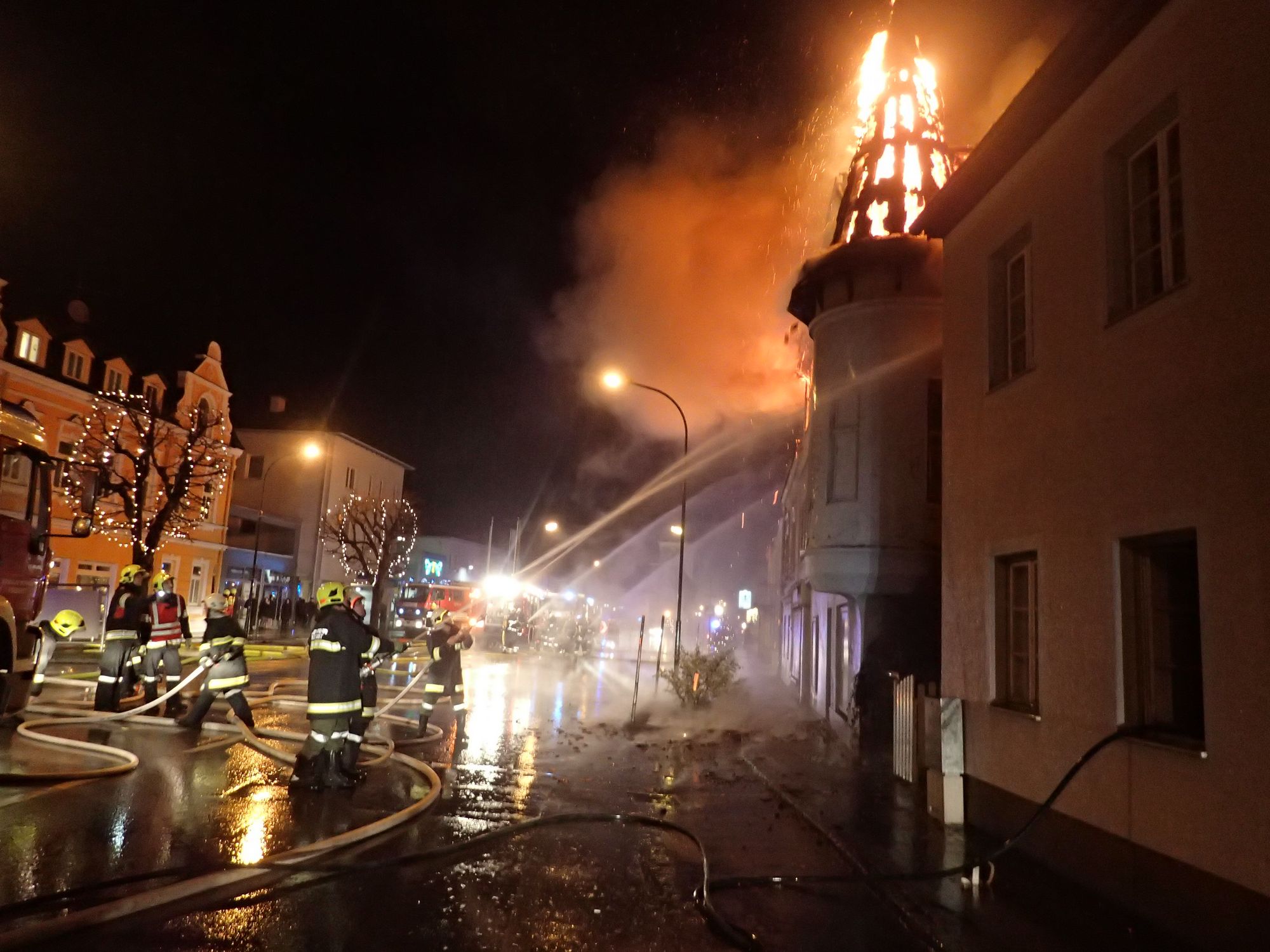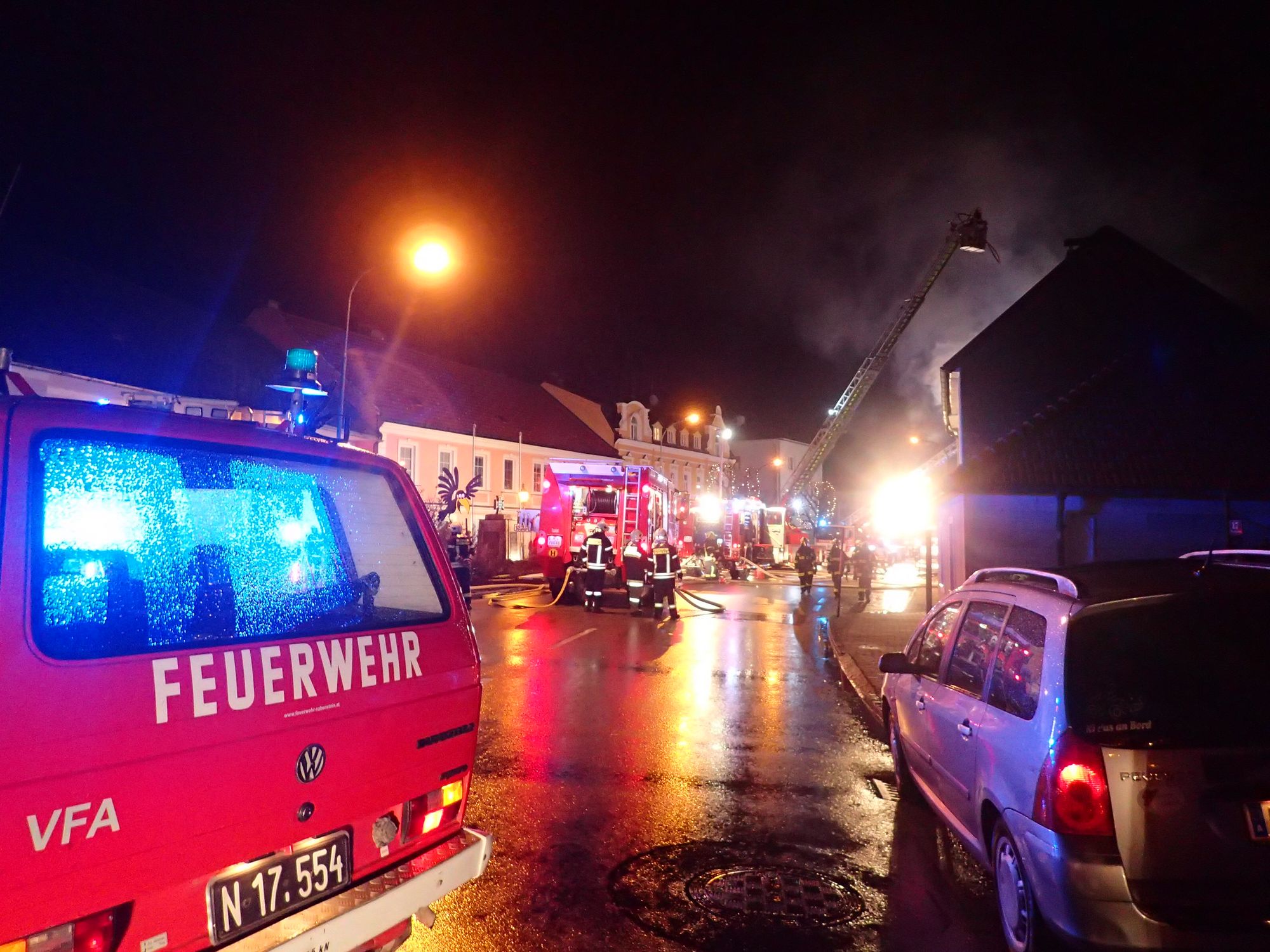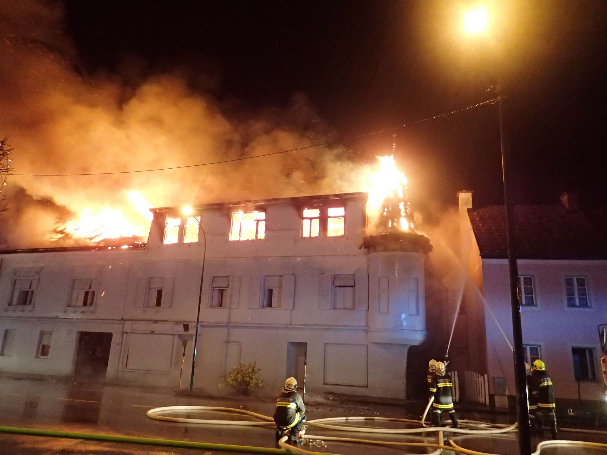 Beim Eintreffen am Einsatzort stand das Obergeschoß des leerstehenden Wohnhauses bereits im Vollbrand. Zeitgleich wurde der Brand bekämpft sowie die Nachbargebäude vor Übergreifen der Flammen geschützt.