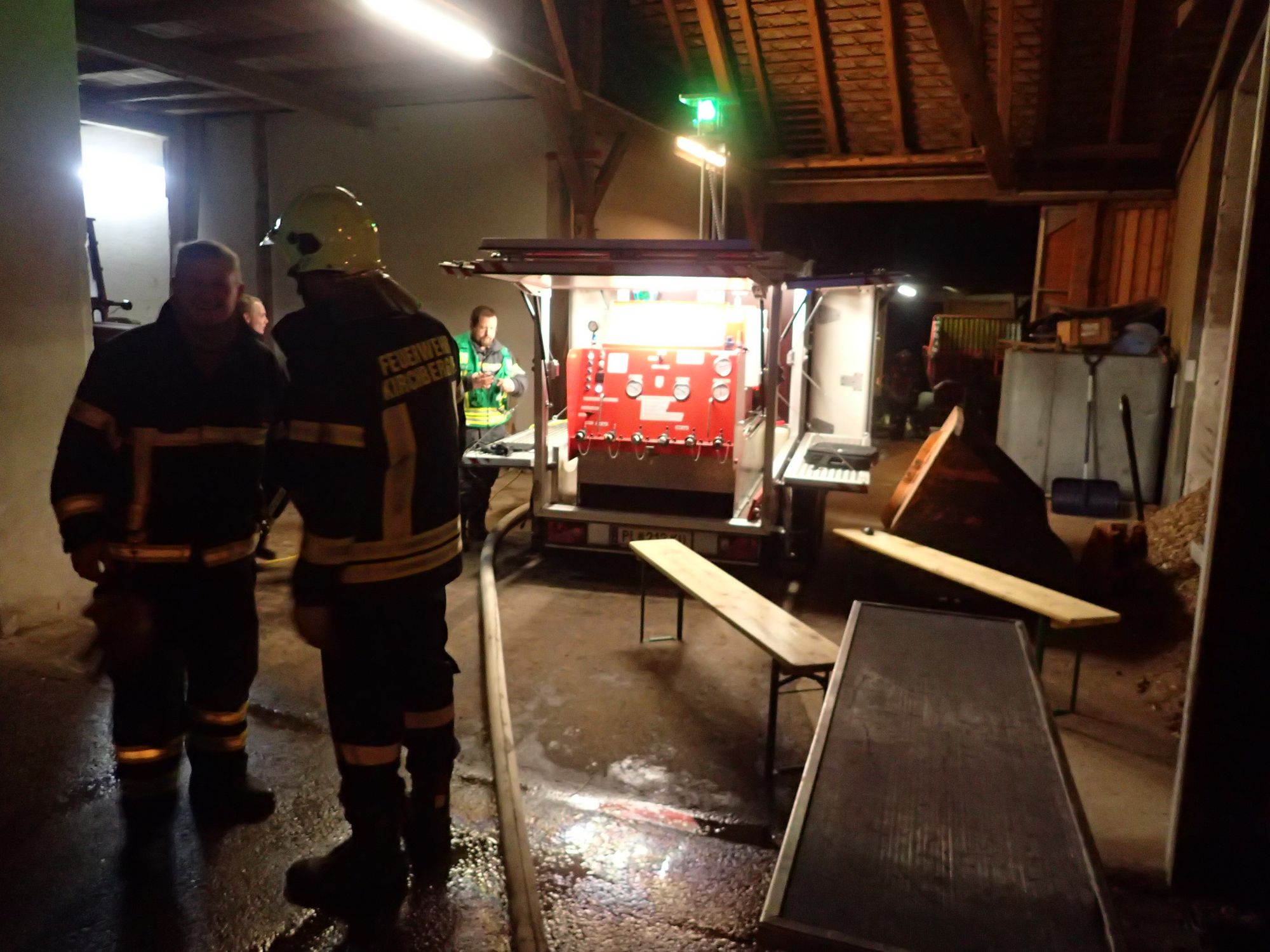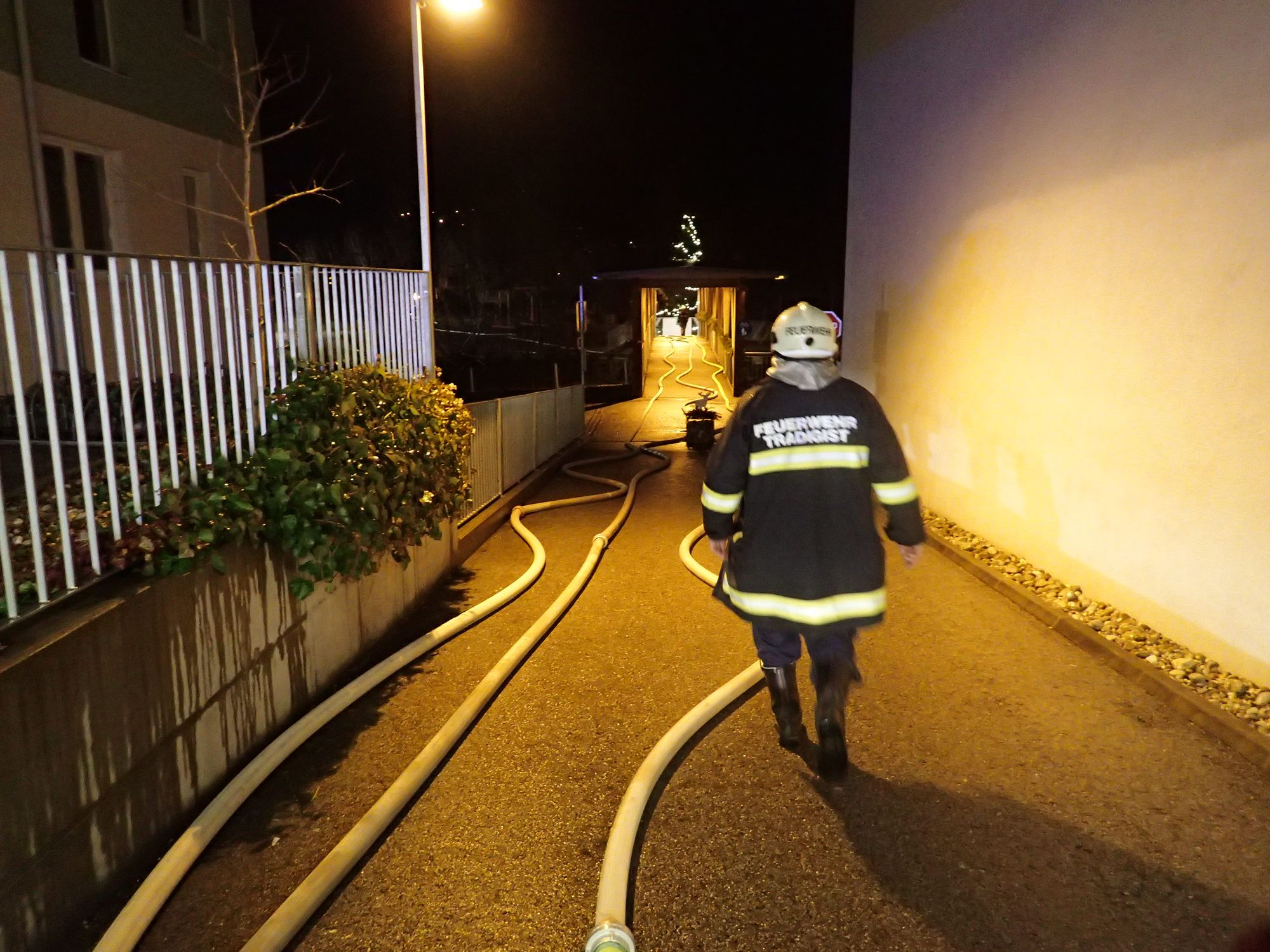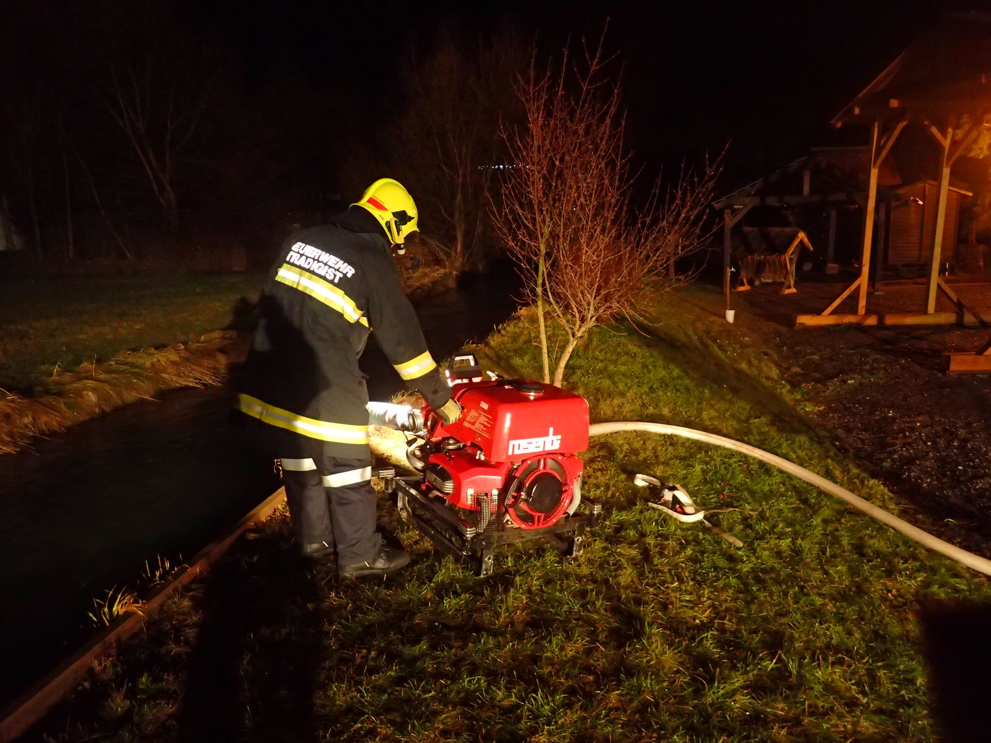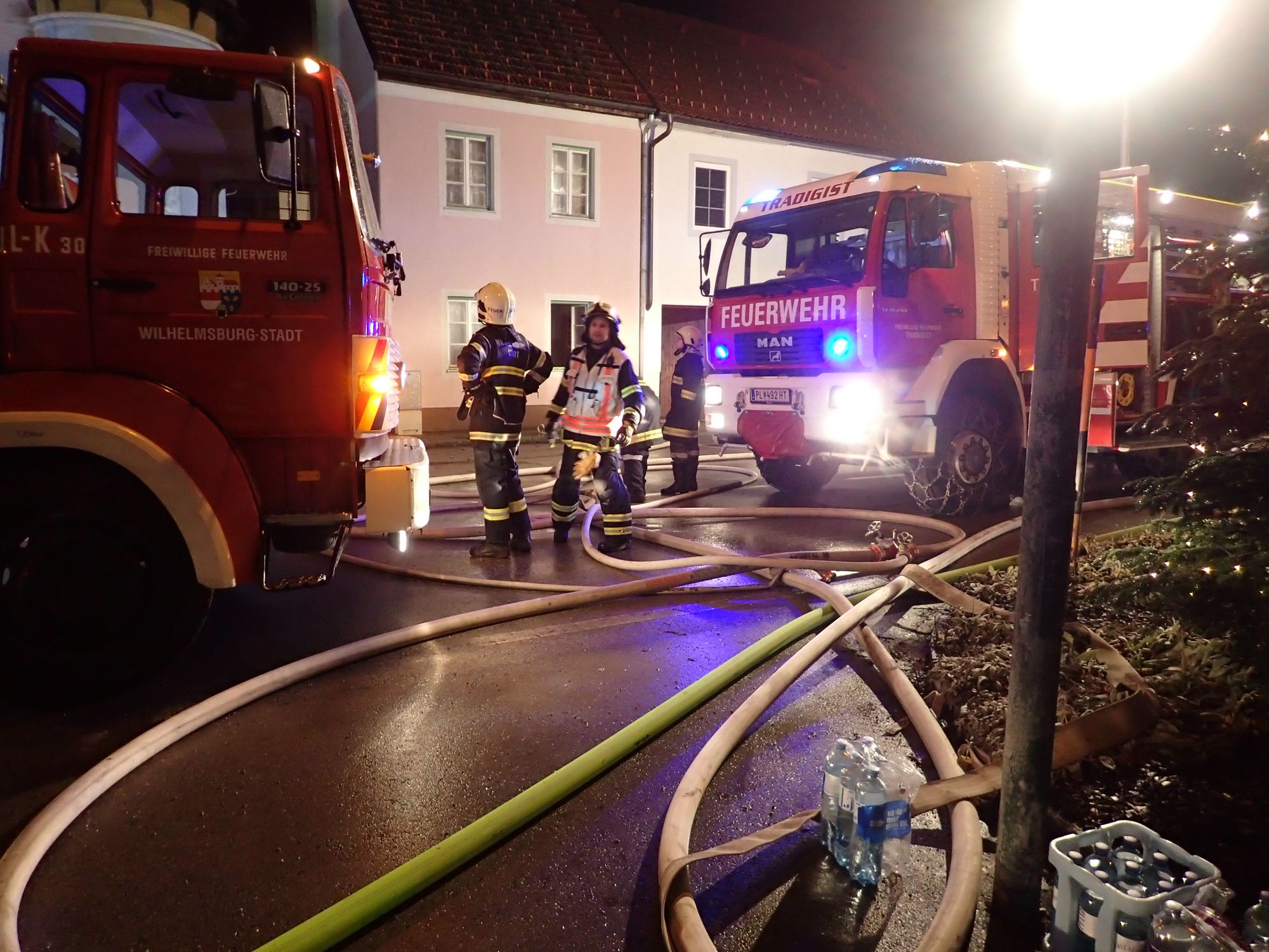 Beim Eintreffen am Einsatzort stand das Obergeschoß des leerstehenden Wohnhauses bereits im Vollbrand. Zeitgleich wurde der Brand bekämpft sowie die Nachbargebäude vor Übergreifen der Flammen geschützt.
