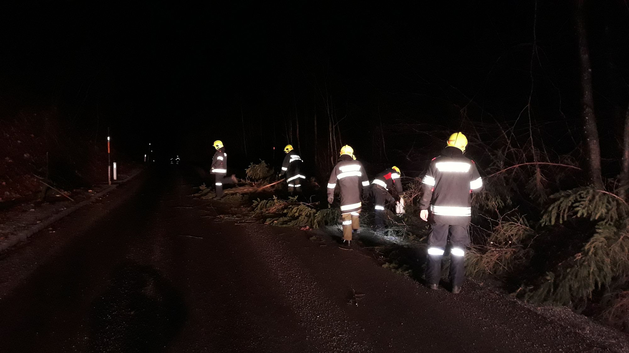 Als die Äste und der Baumstamm von der Fahrbahn entfernt waren, wurde noch die Fahrbahn gereinigt.