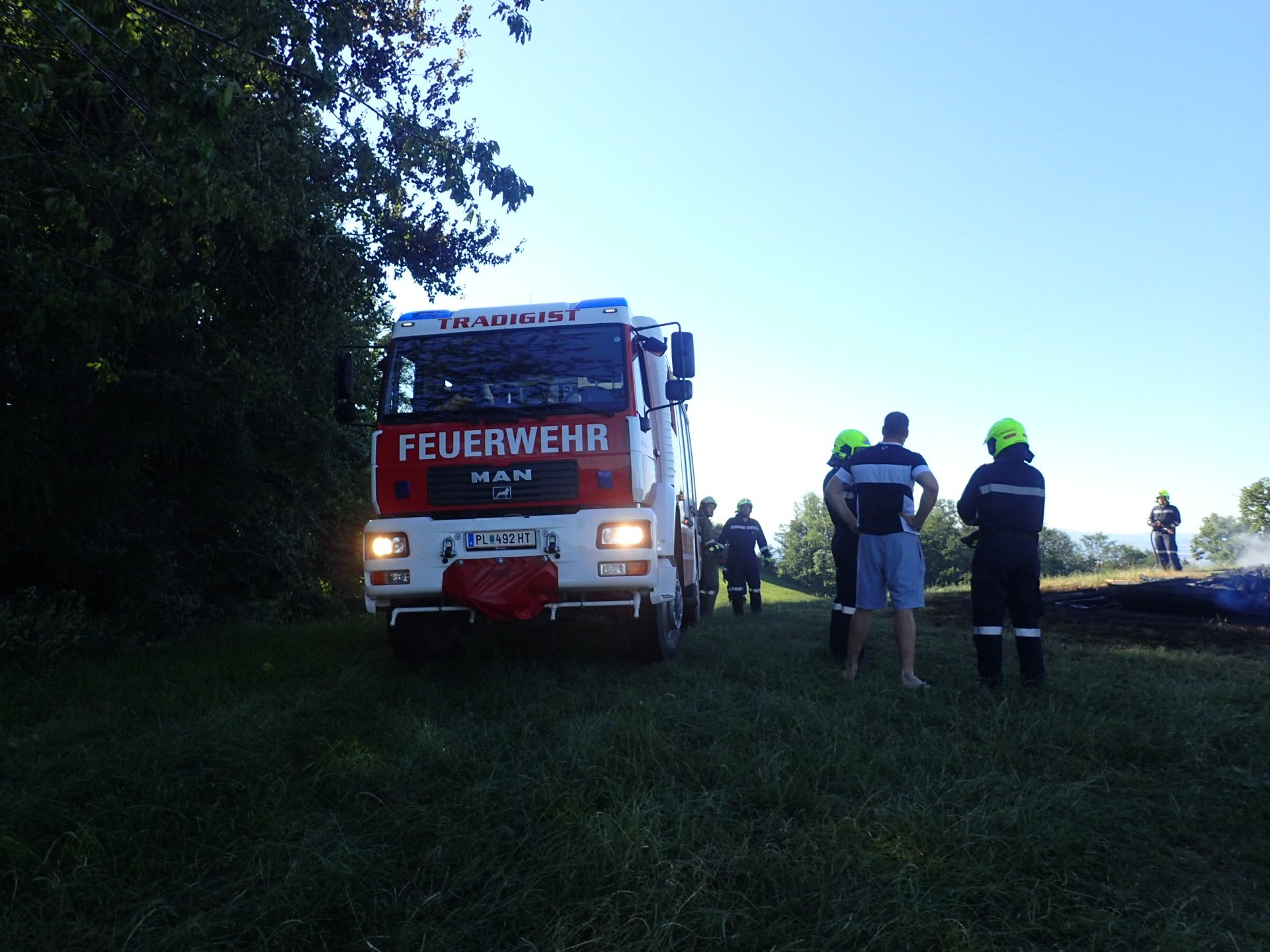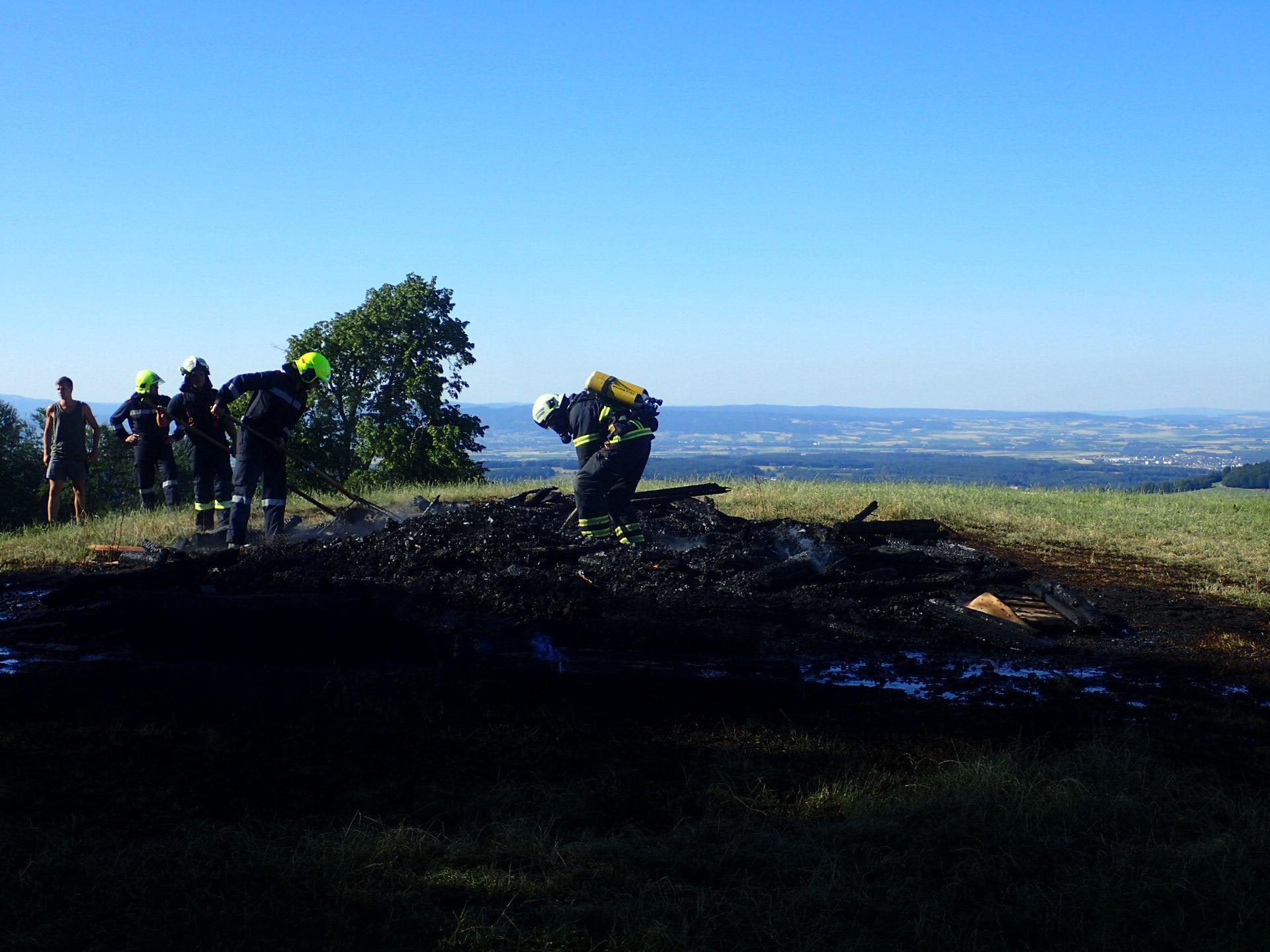 Die Feuerwehr Rabenstein hatte bereits mit den Löscharbeiten begonnen und ein benachbarter Landwirt kam mit seinem Traktor und Güllefass mit Wasser auch zu Hilfe.
