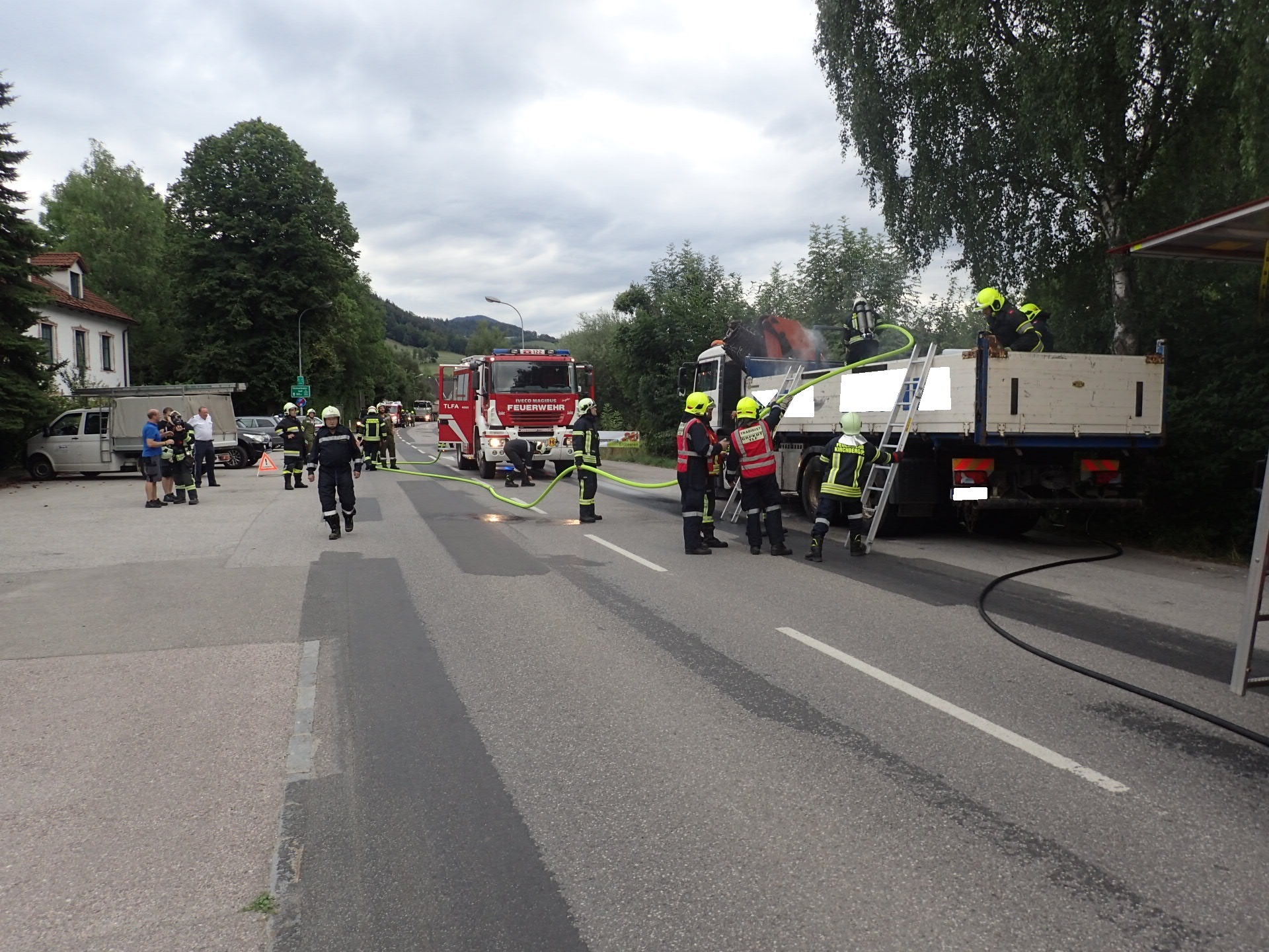 Heute um 17.47 Uhr wurden wir gemeinsam mit den Feuerwehren Kirchberg und Loich zu einem Fahrzeugbrand (B2) alarmiert - Zusatzinfo bei Alarmierung: Cellulose brennt auf LKW.