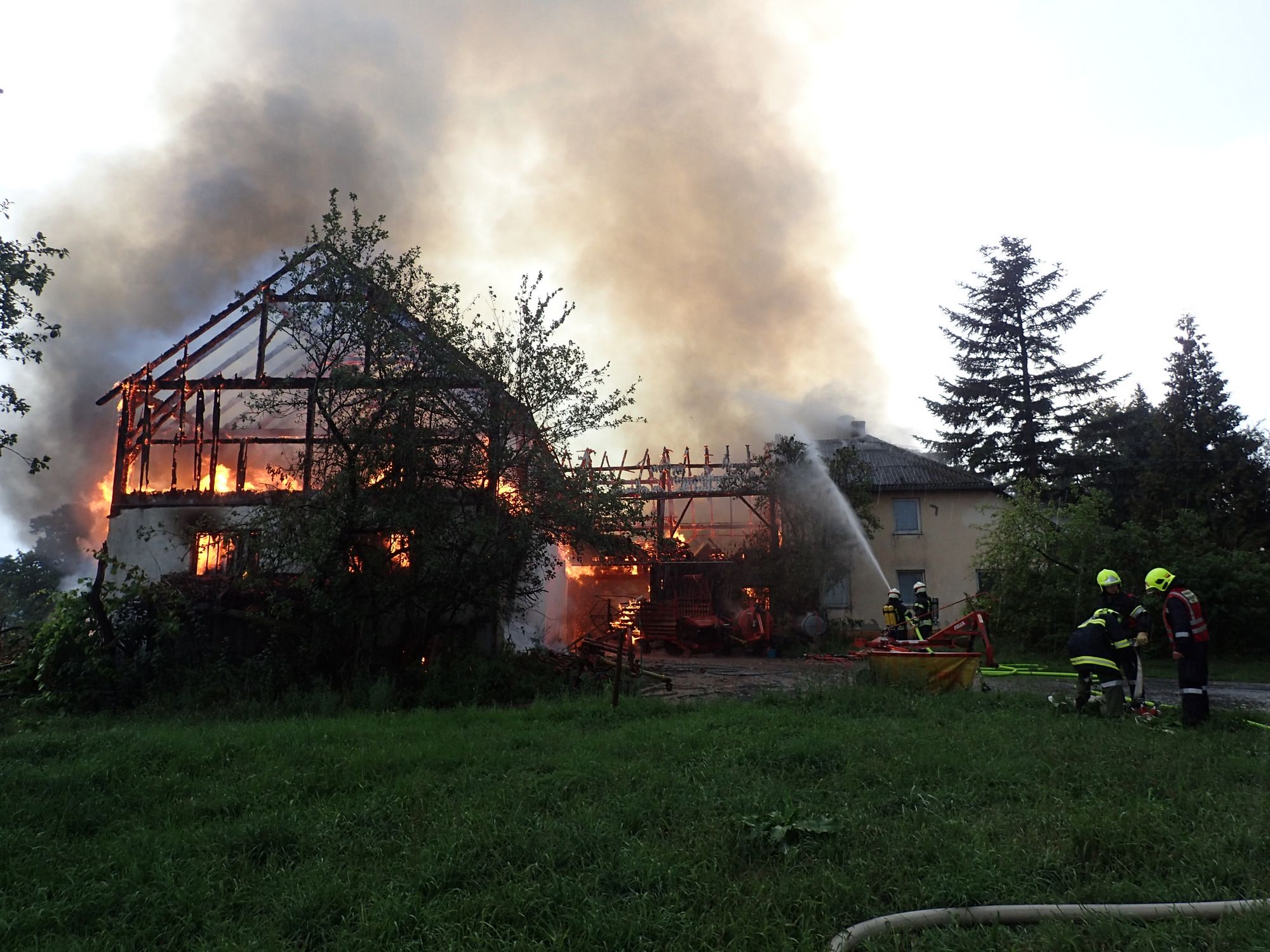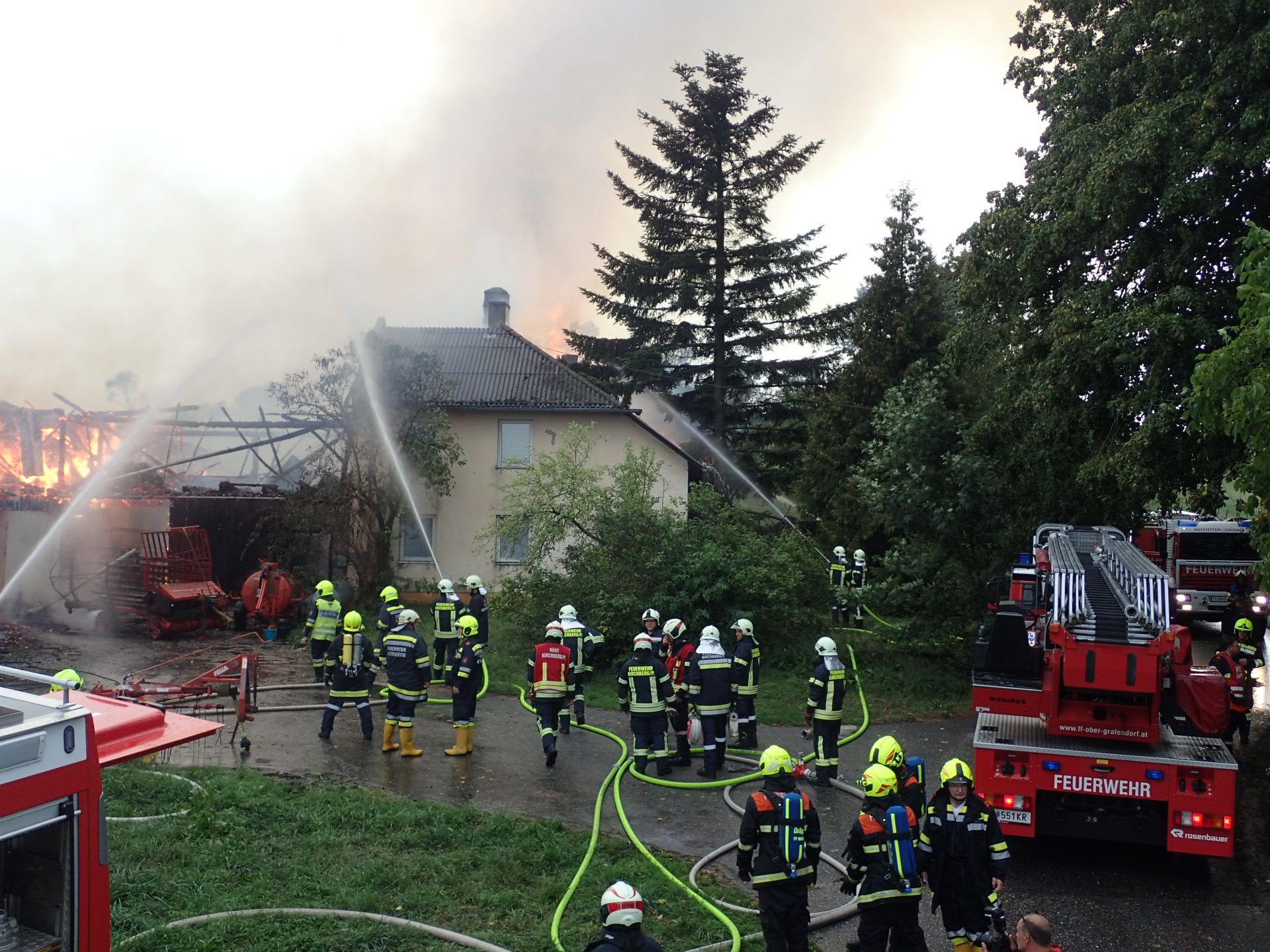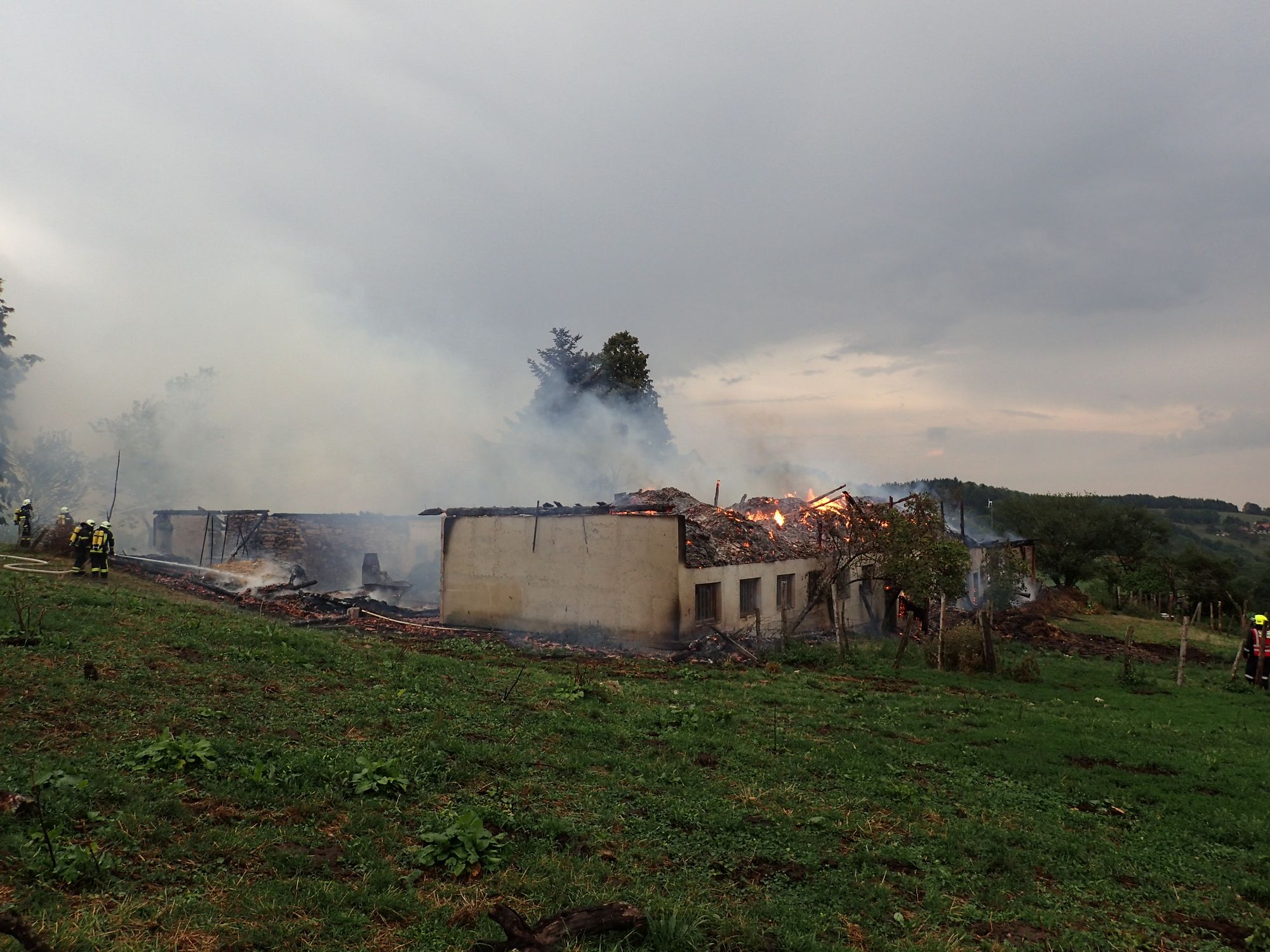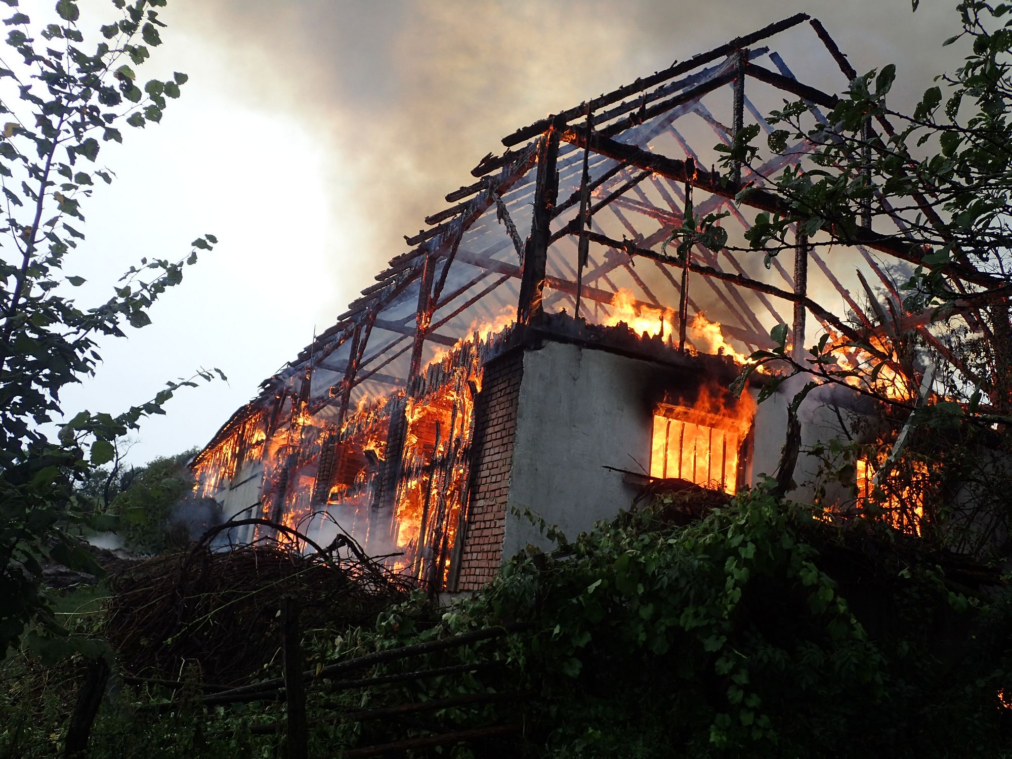 Als wir das Brandobjekt erreichten, stand das Wirtschaftsgebäude des Vierkanters bereits in Vollbrand. Der Einsatz wurde dann erhöht auf einen (B4) "Brand eines landw. Objekts".