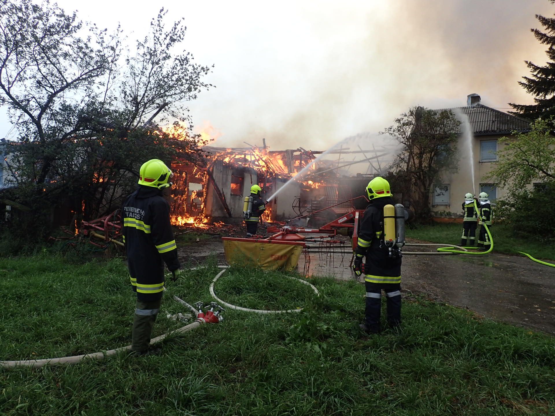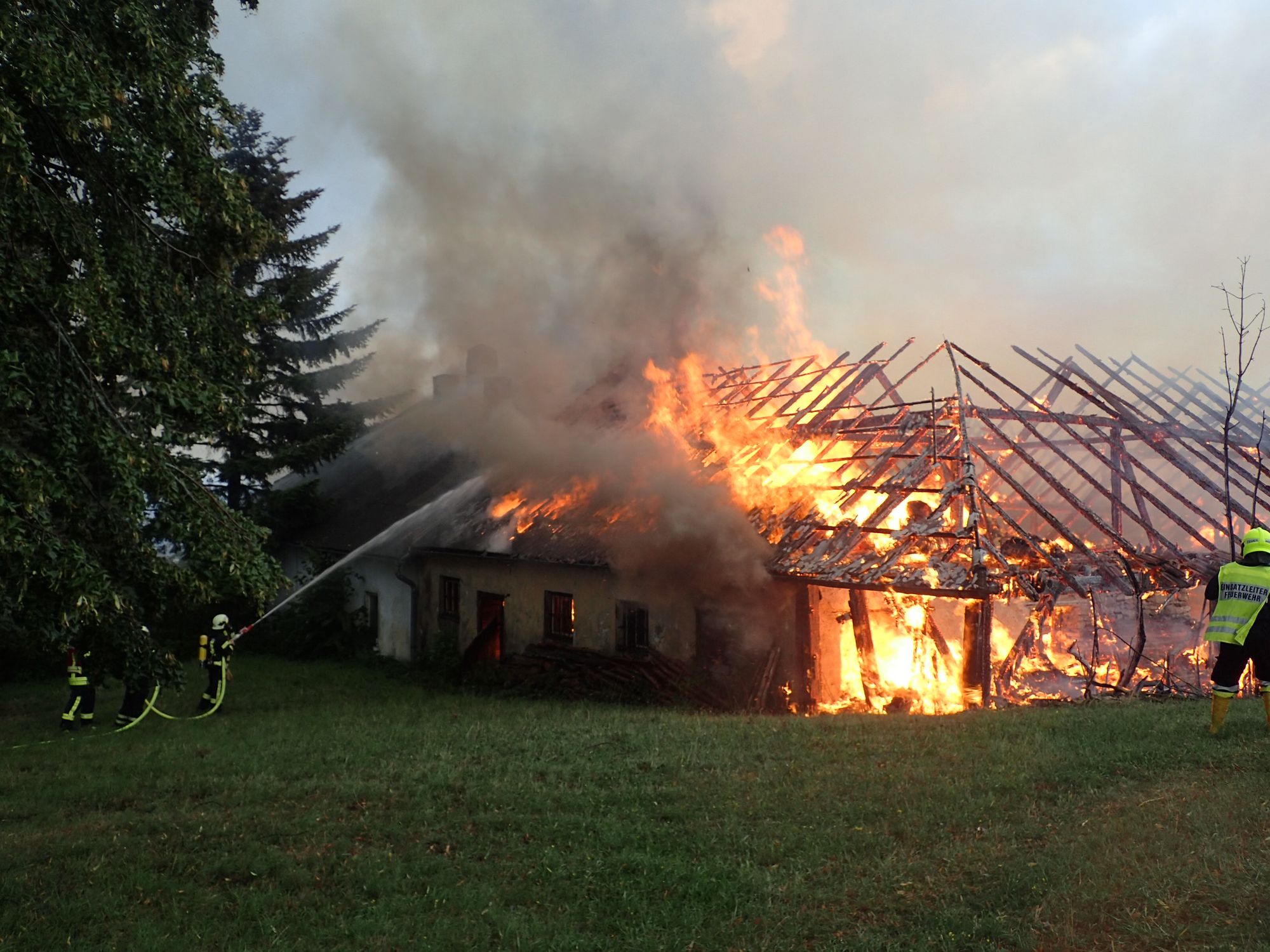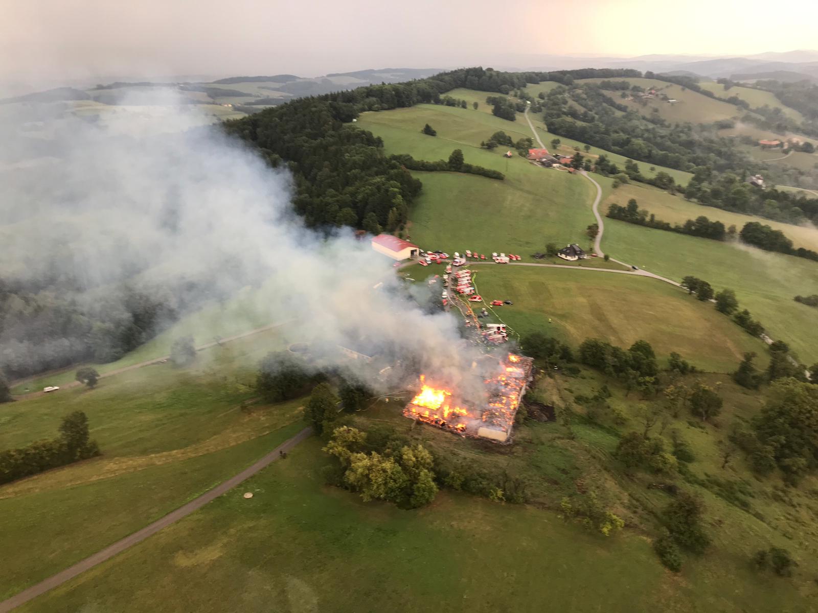 Als wir das Brandobjekt erreichten, stand das Wirtschaftsgebäude des Vierkanters bereits in Vollbrand. Der Einsatz wurde dann erhöht auf einen (B4) "Brand eines landw. Objekts".