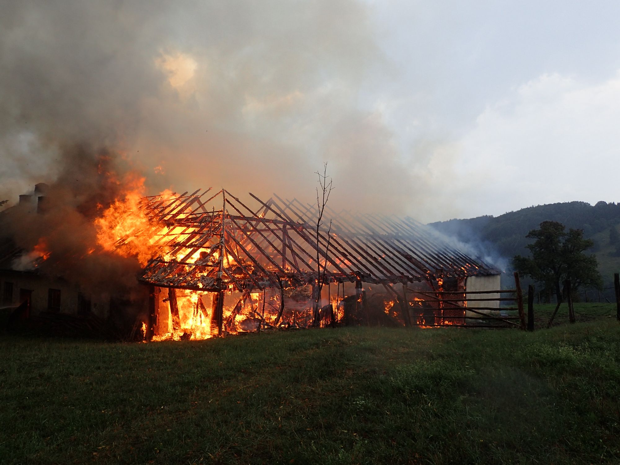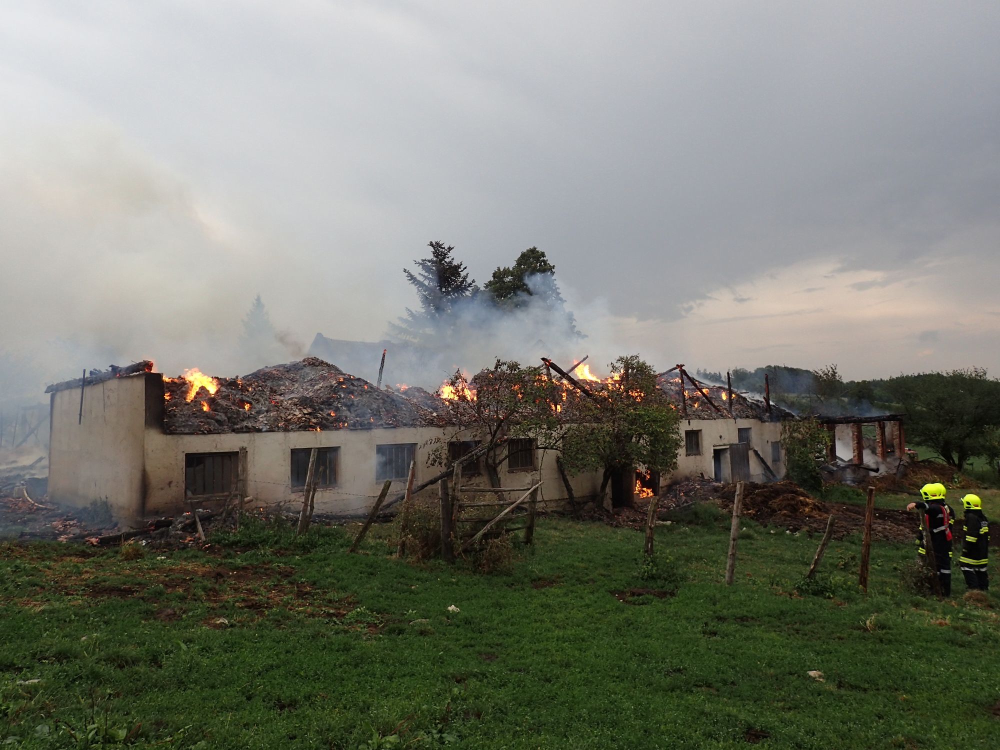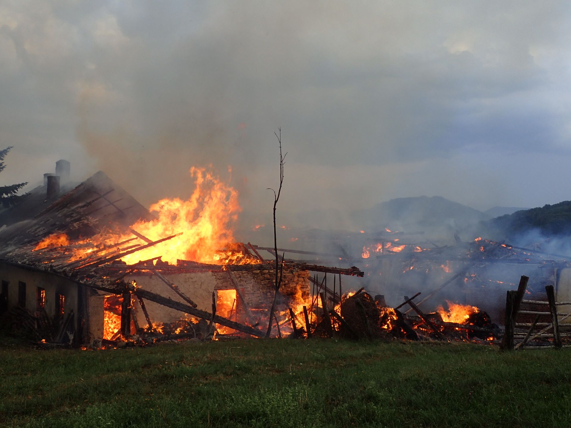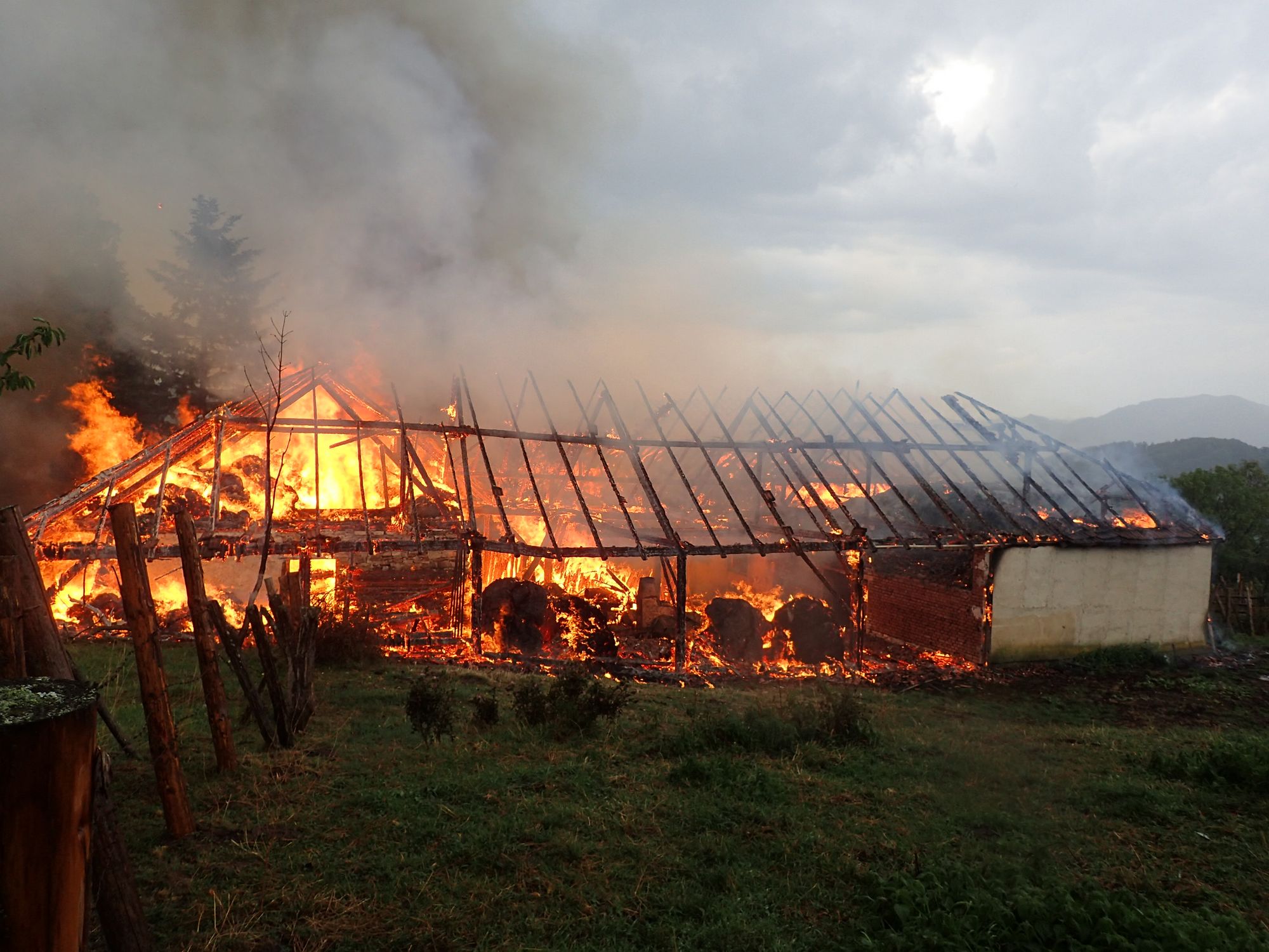 Als wir das Brandobjekt erreichten, stand das Wirtschaftsgebäude des Vierkanters bereits in Vollbrand. Der Einsatz wurde dann erhöht auf einen (B4) "Brand eines landw. Objekts".