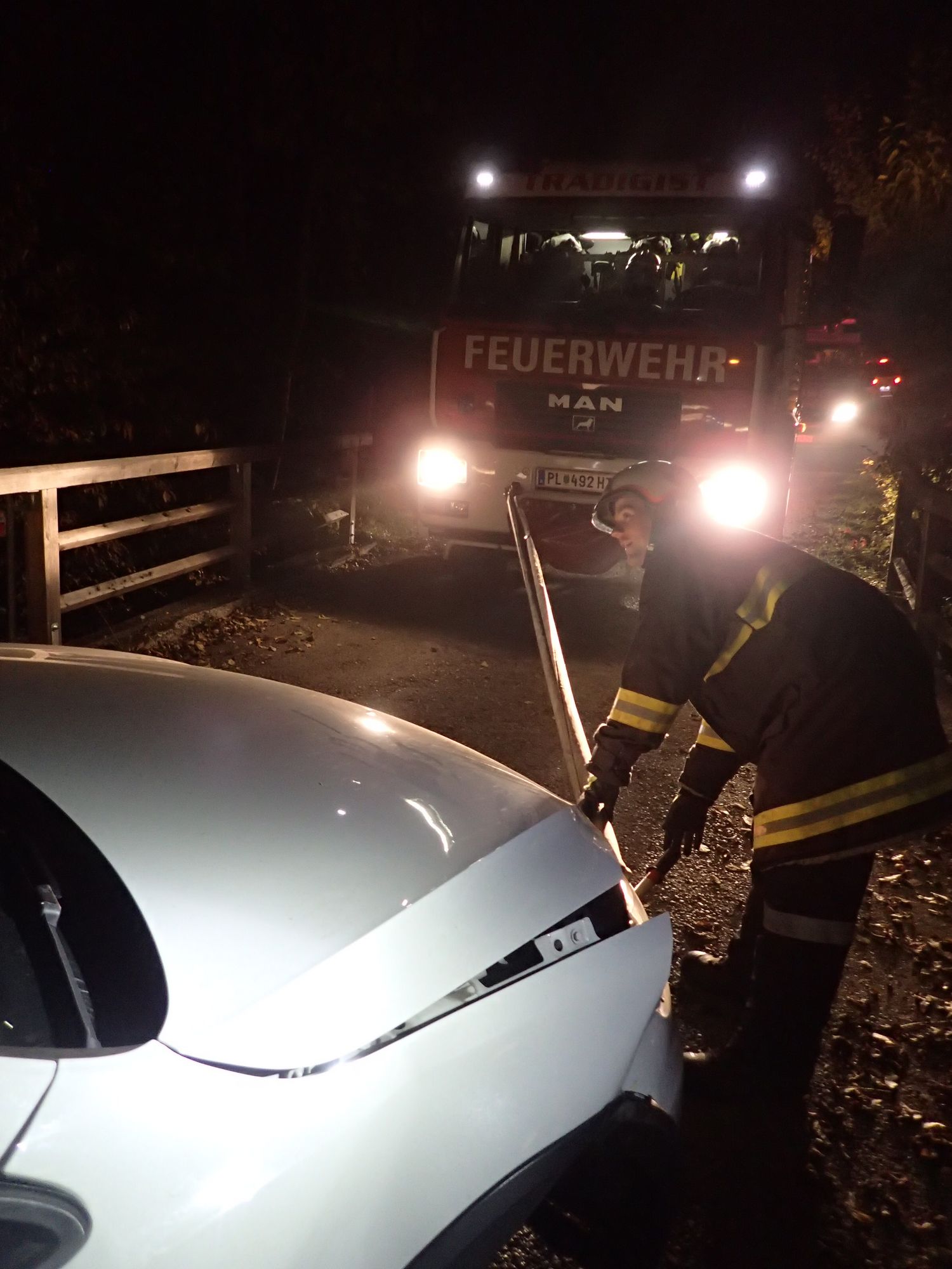 Heute um 20:17 Uhr wurden wir von der Bezirksalarmzentrale zu einer Fahrzeugbergung (T1) auf der Gemeindestraße richtung Steinklamm 65 alarmiert.