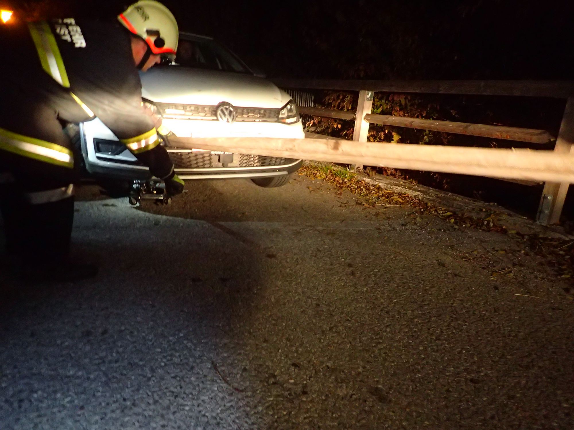 Ein PKW-Lenker kam aus unbekannter Ursache mit seinem PKW in einer leichten Kurve zu weit nach rechts und krachte gegen ein Brückengeländer. Dabei wurde das Vorderrad ausgerissen und der Wagen war somit unfahrbar.