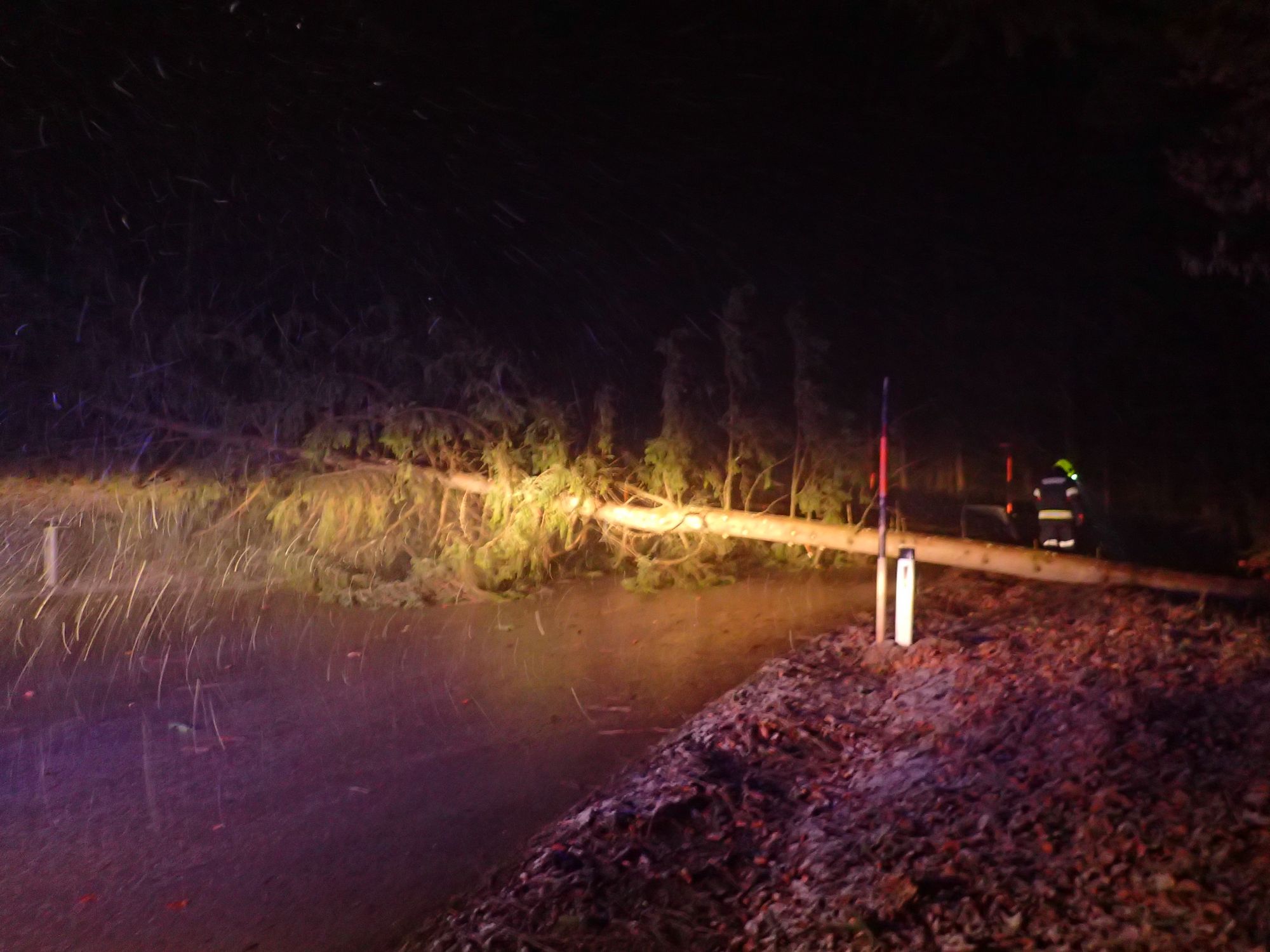 Beim Eintreffen am Einsatzort war die Polizei vorort. Ein Baum lag quer über die Fahrbahn.