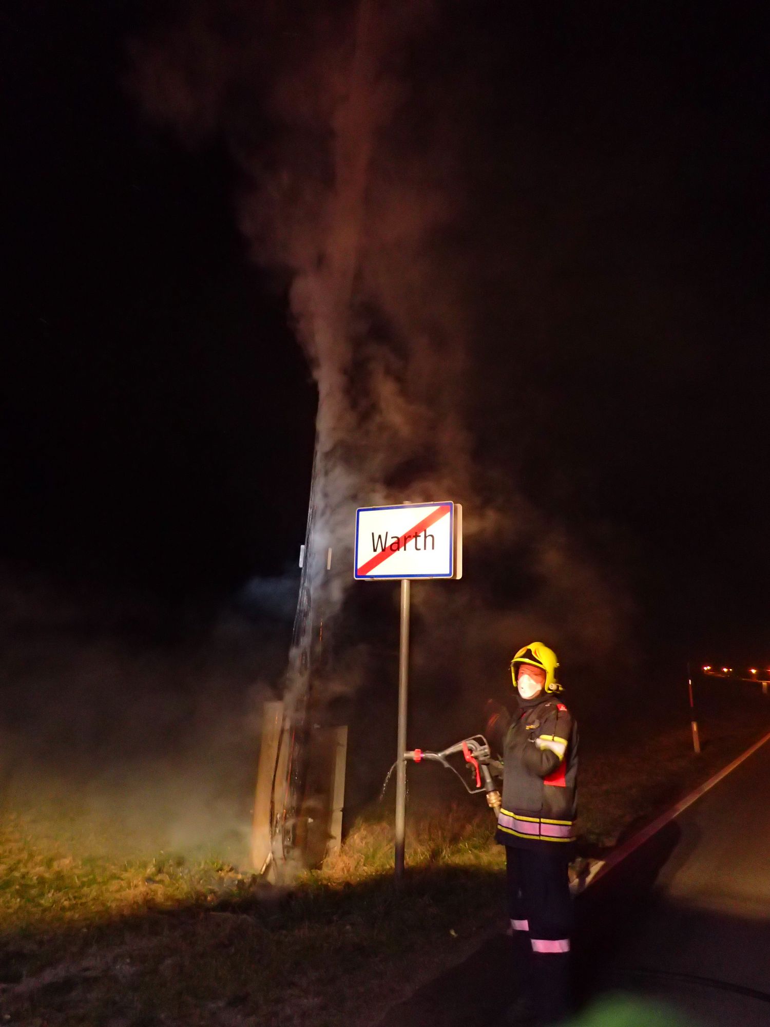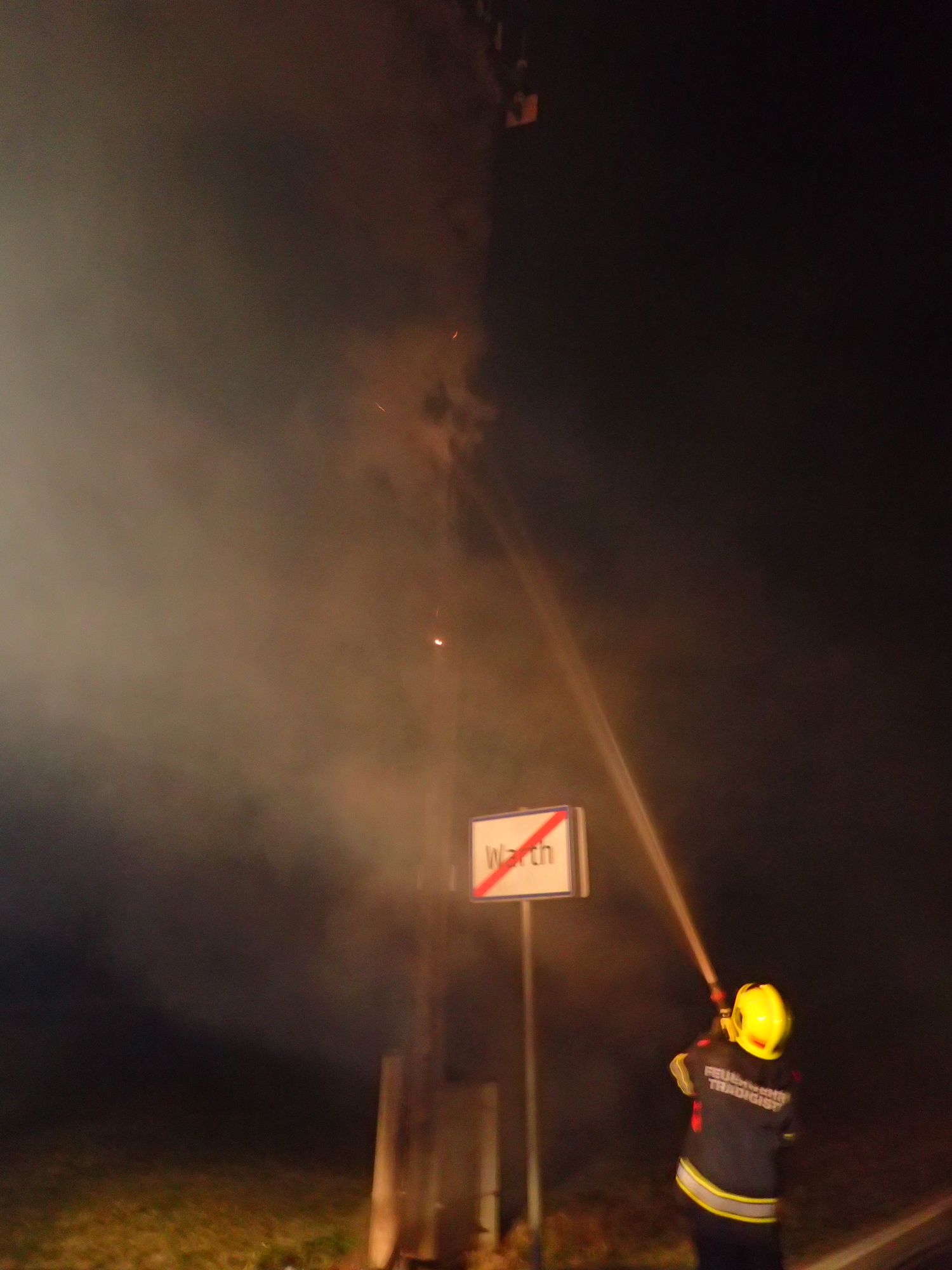 Heute Nacht um 00.39 Uhr wurden wir von der Bezirksalarmzentrale mittels Sirene und Pager zu einem Kleinbrand (B1) in Tradigist alarmiert.