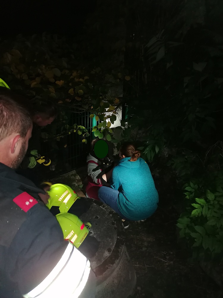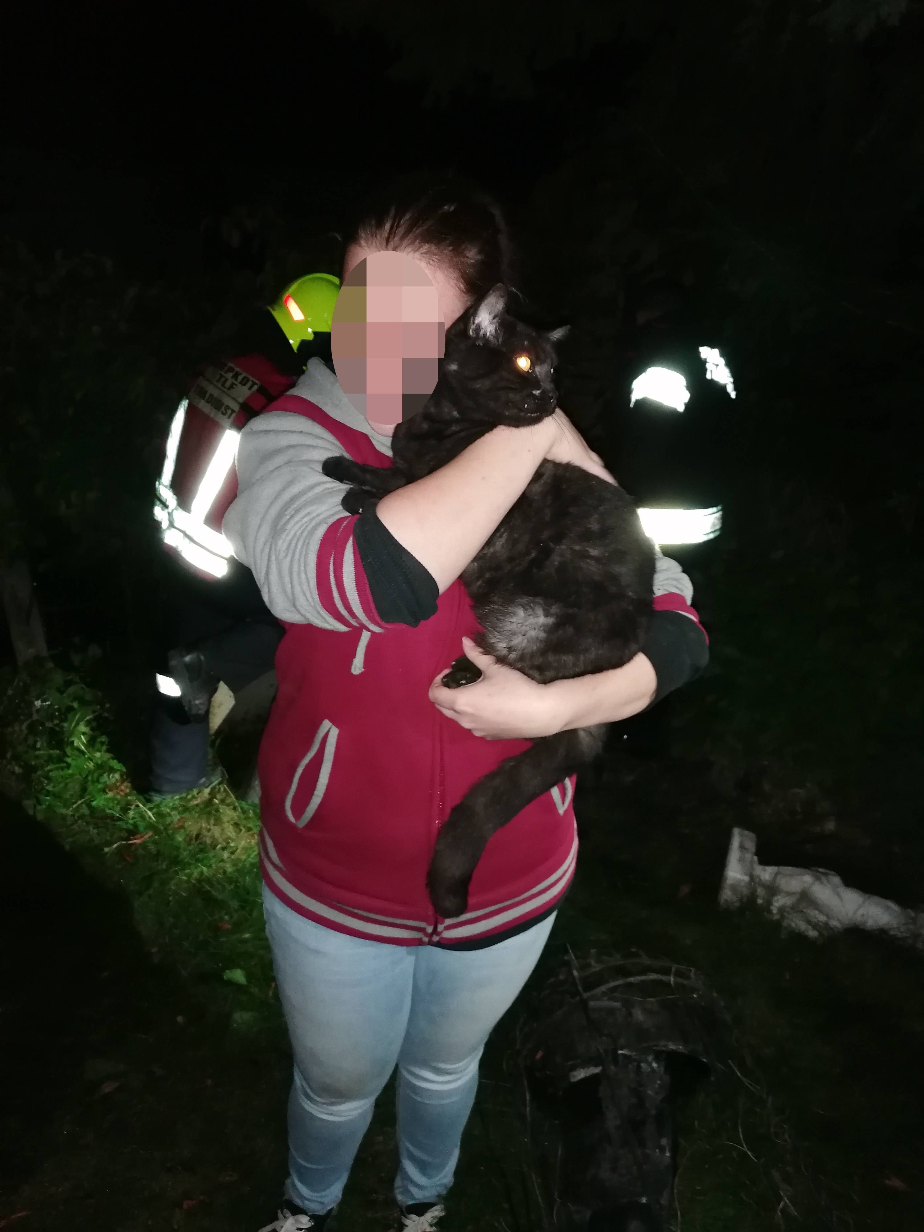 Kater Azrael war verletzt in einen Schacht geklettert und versteckte sich dort laut der besorgten Besitzerin schon seit Stunden. Mit vereinten Kräften konnte sie schließlich das verängstigte Tier aus seiner Lage befreien.