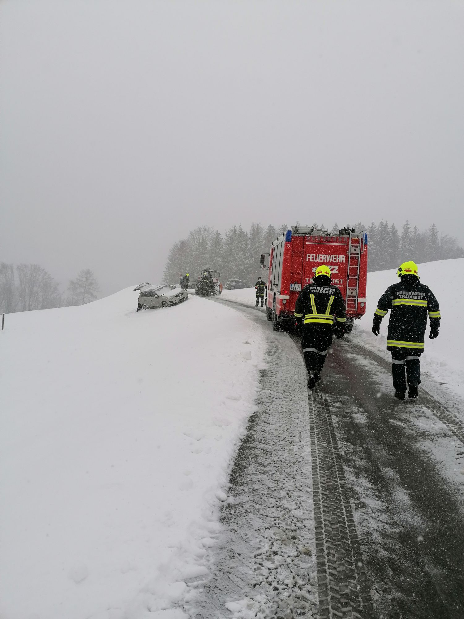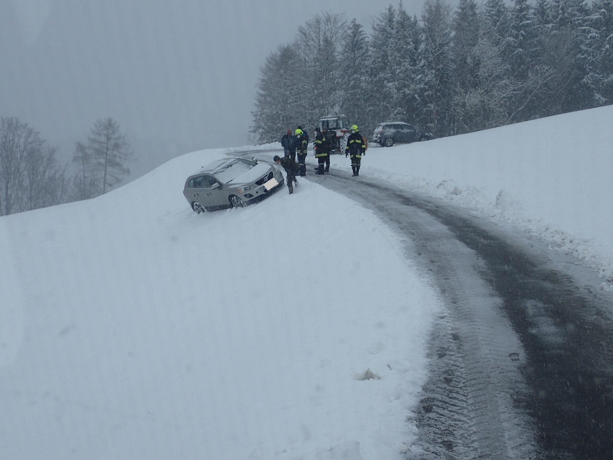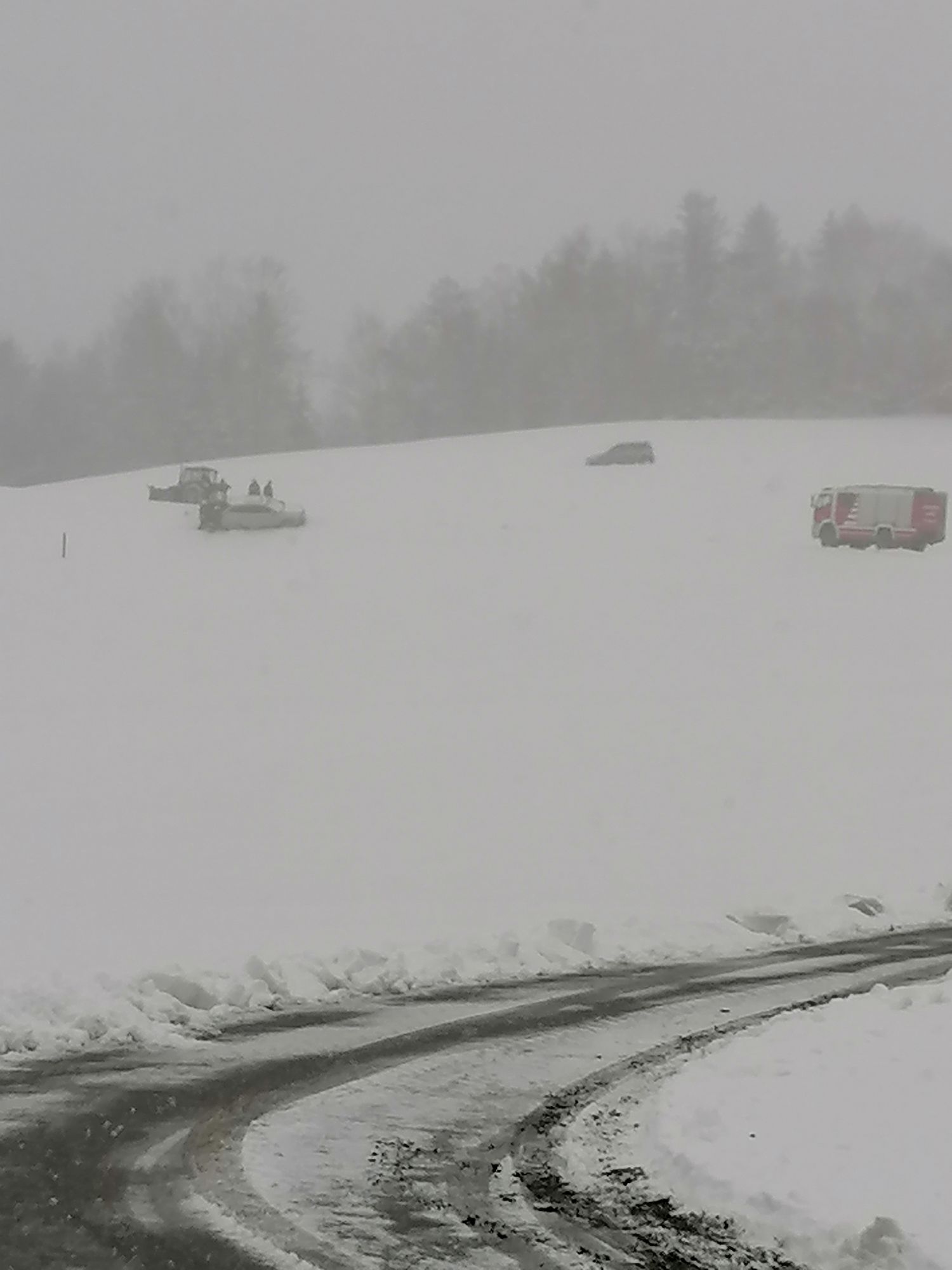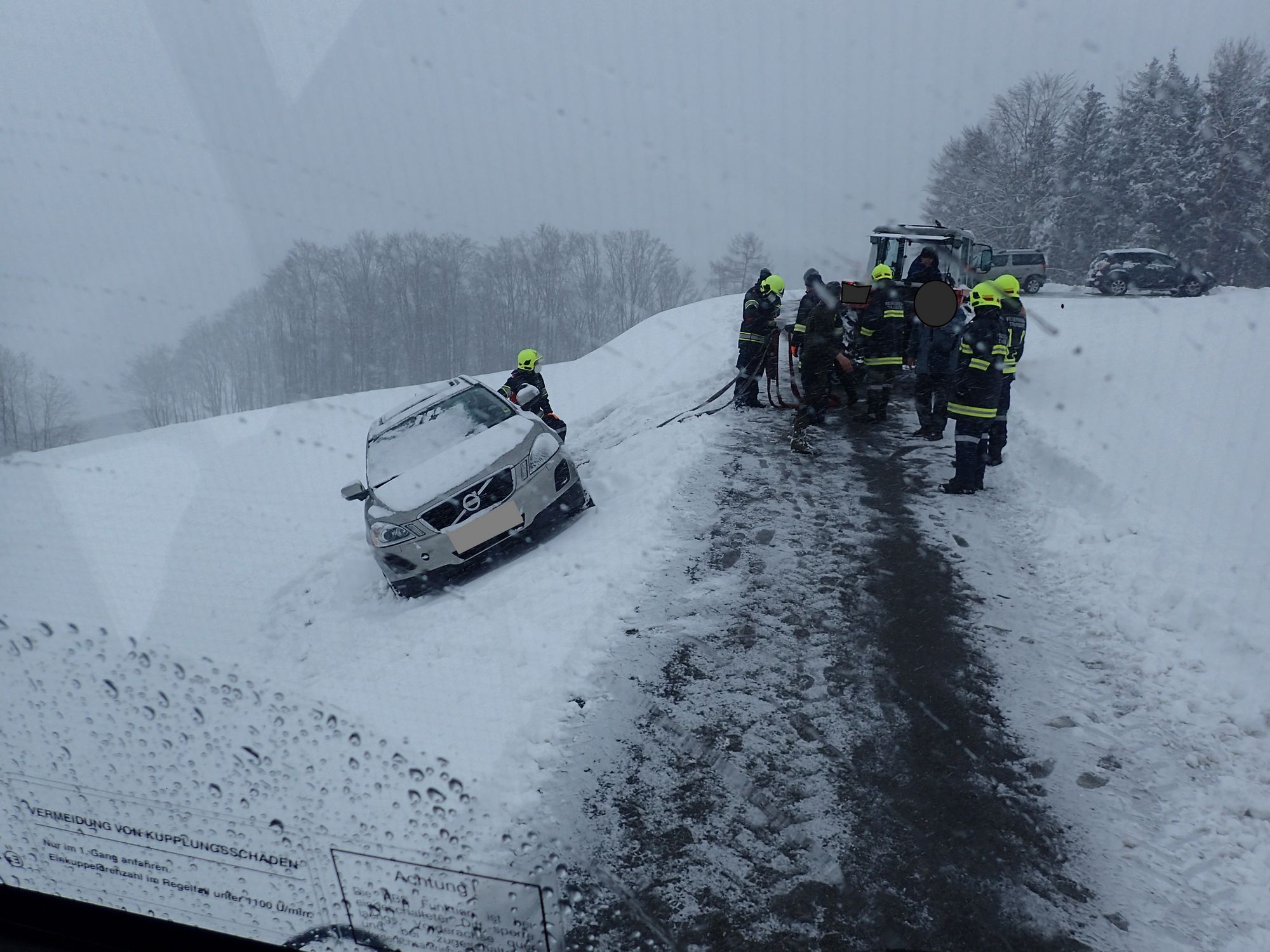 Heute um 08.45 Uhr wurden wir zu einer PKW Bergung (T1) in Tradigist gerufen. Ein Fahrzeug war in einer Kurve von der schneeglatten Straße abgekommen, über die Böschung gerutscht und in Schräglage zum Stehen gekommen.