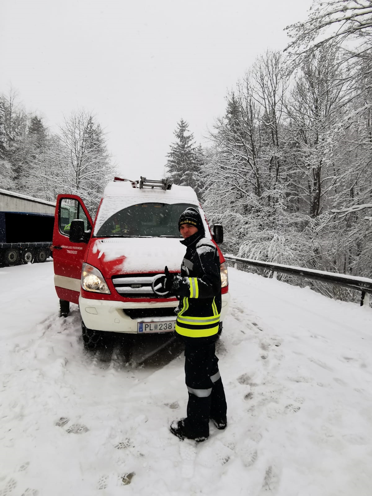 Zuerst wurde der LKW mittels TLFA und Schleppstange bis zum nächstmöglichen Ausweichplatz geschleppt, dann wurde der Kleinbus mit dem TLFA zurück auf die Fahrbahn gezogen, zu guter Letzt wurde der PKW geborgen. Somit konnten alle Fahrzeuglenker ihre Fahrt wieder fortsetzen.