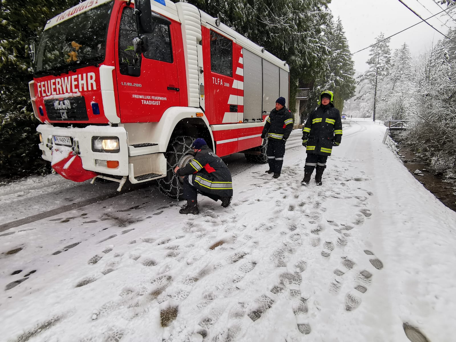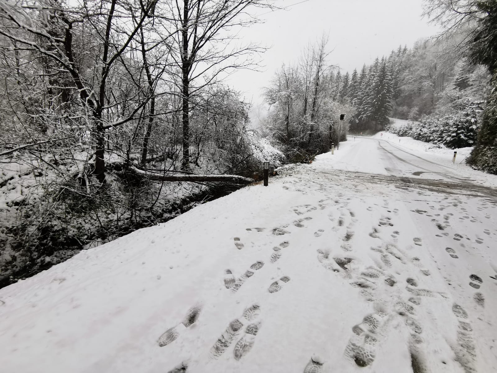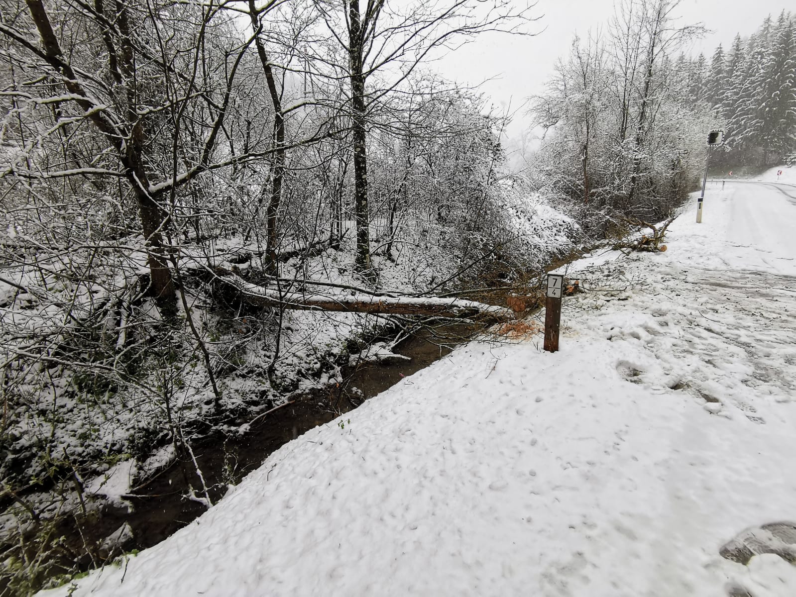 Bereits auf dem Weg zurück wieder ins Feuerwehrhaus, wurden wir von der Bezirksalarmzentrale per Funk über einen weiteren Einsatz alarmiert. Baum über Straße (T1).