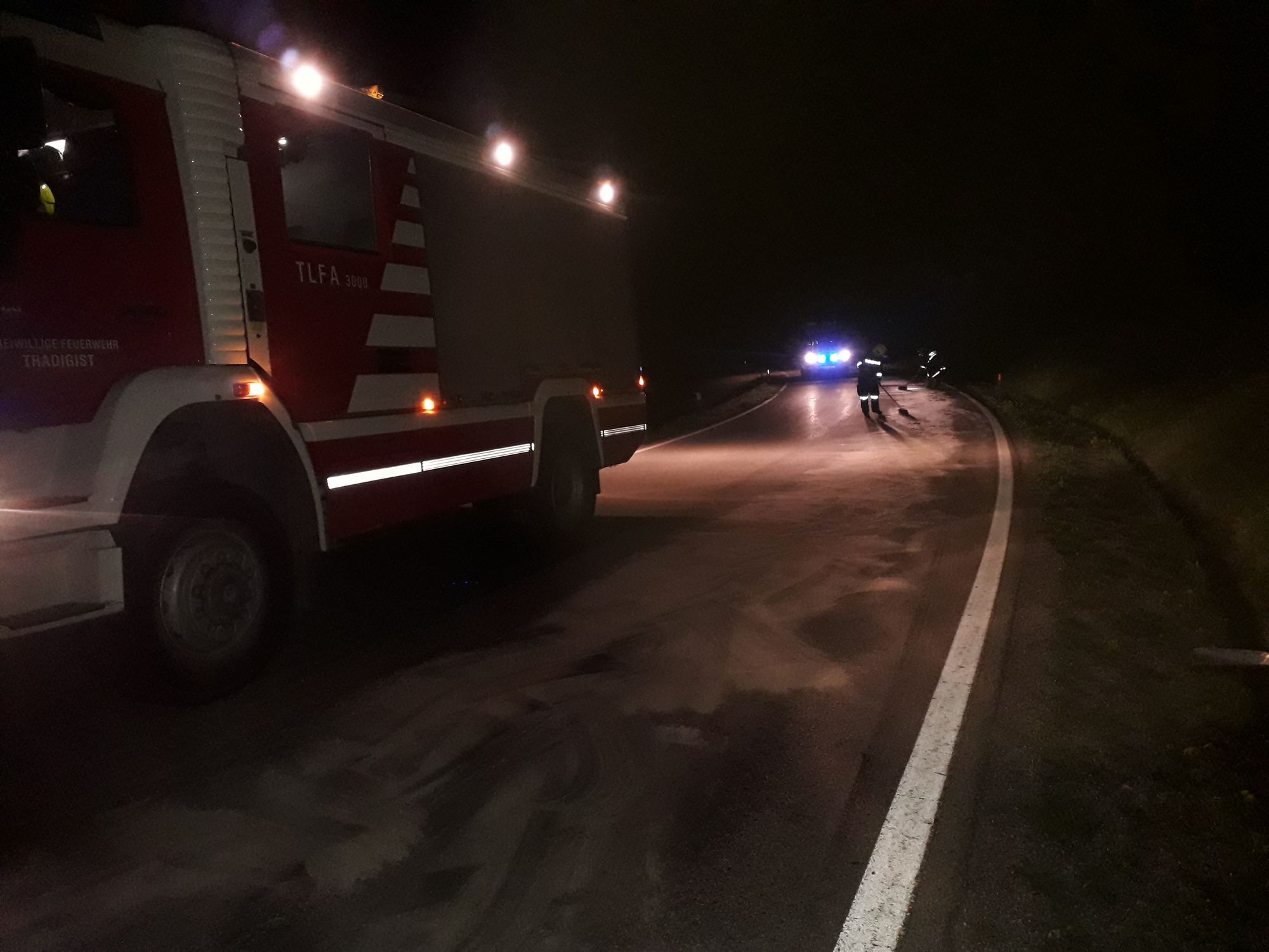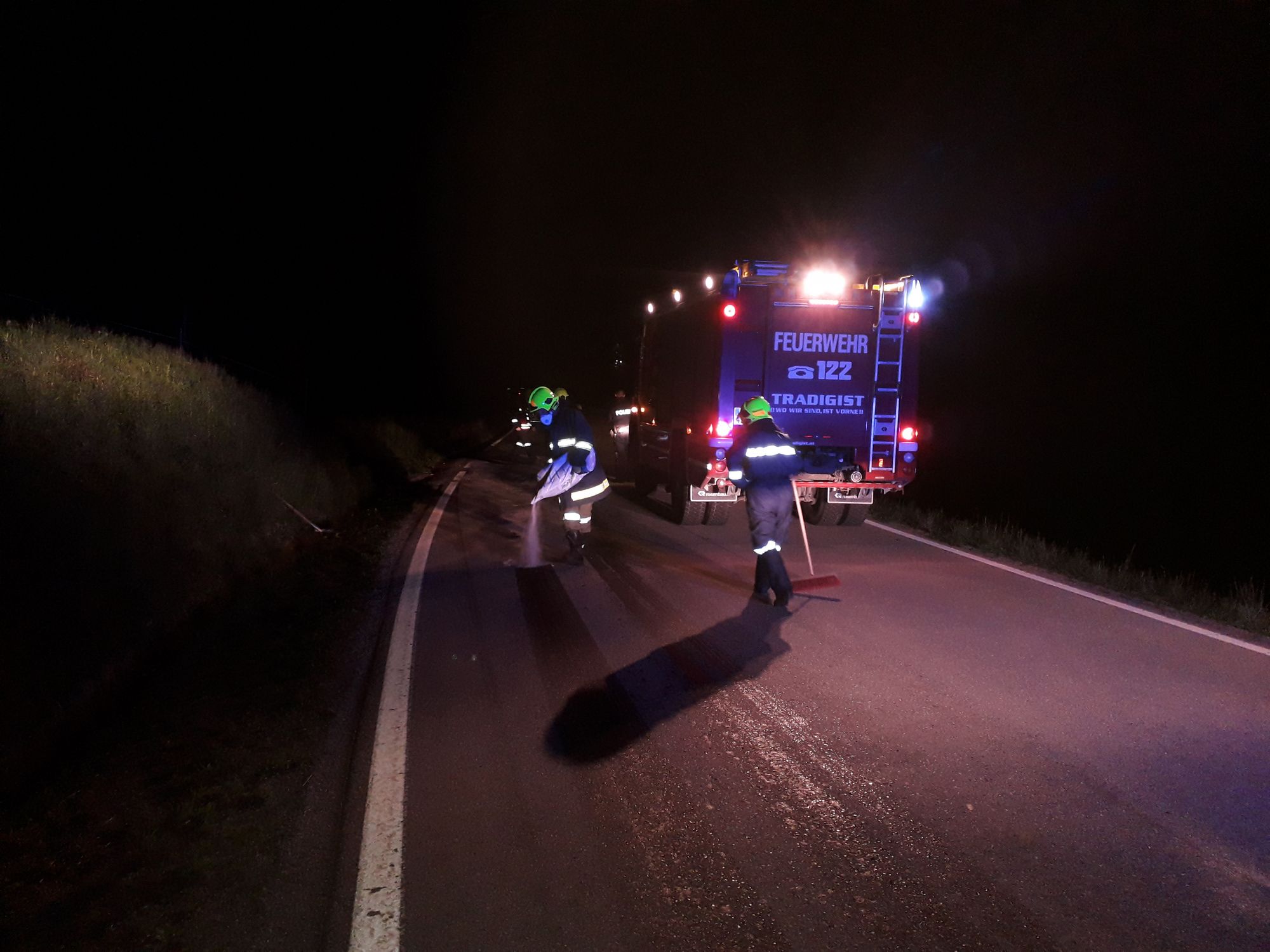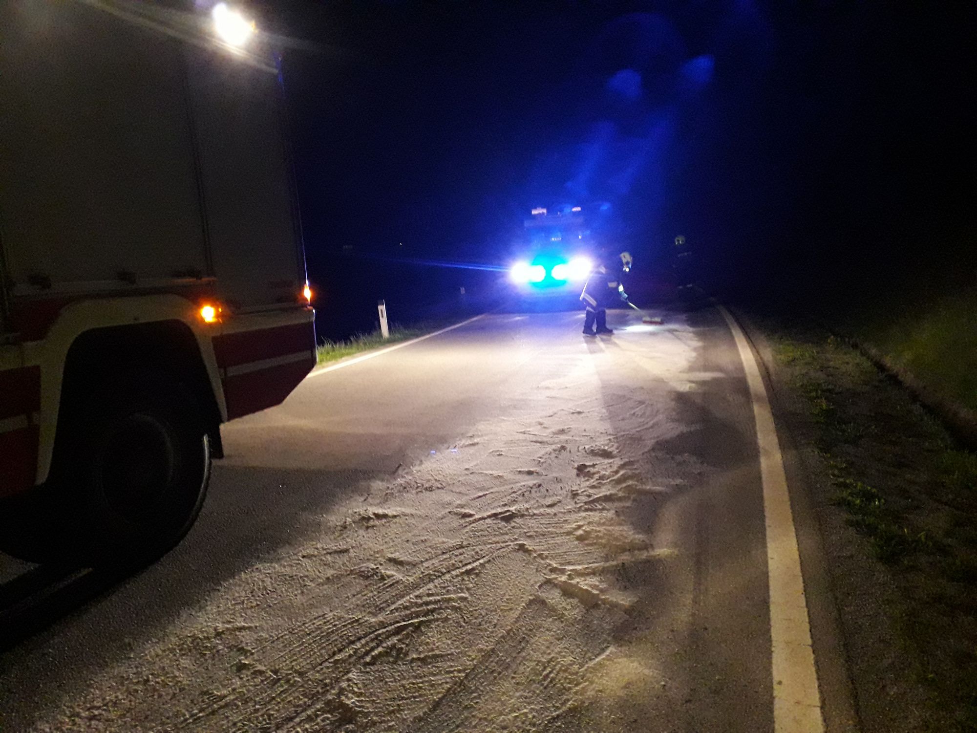 Beim Eintreffen an der Einsatzstelle fanden wir eine größere Ölmenge auf der Fahrbahn vor.
