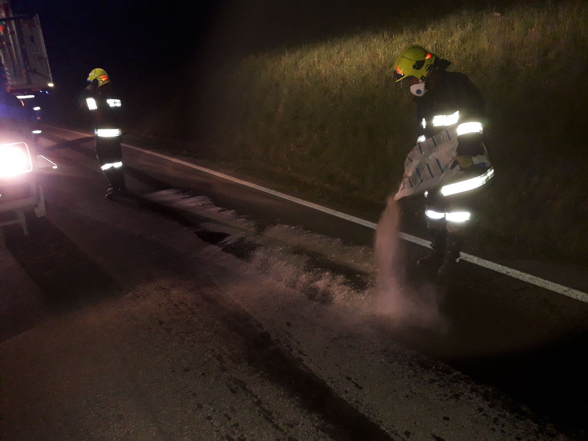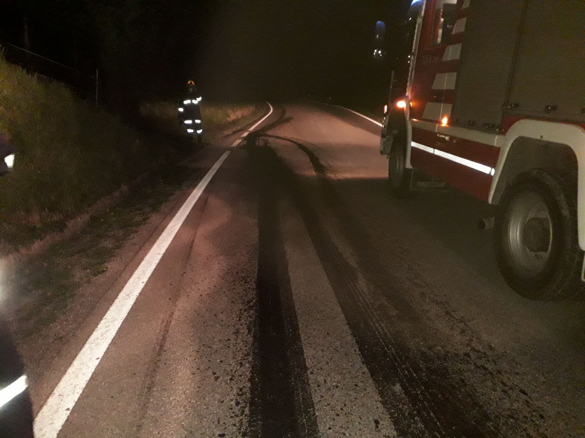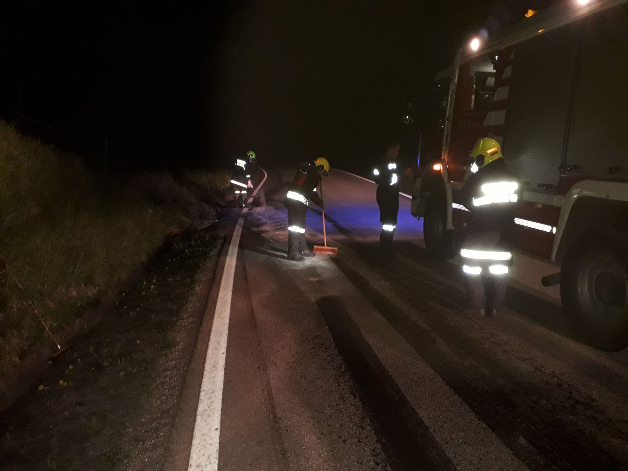 Beim Eintreffen an der Einsatzstelle fanden wir eine größere Ölmenge auf der Fahrbahn vor.