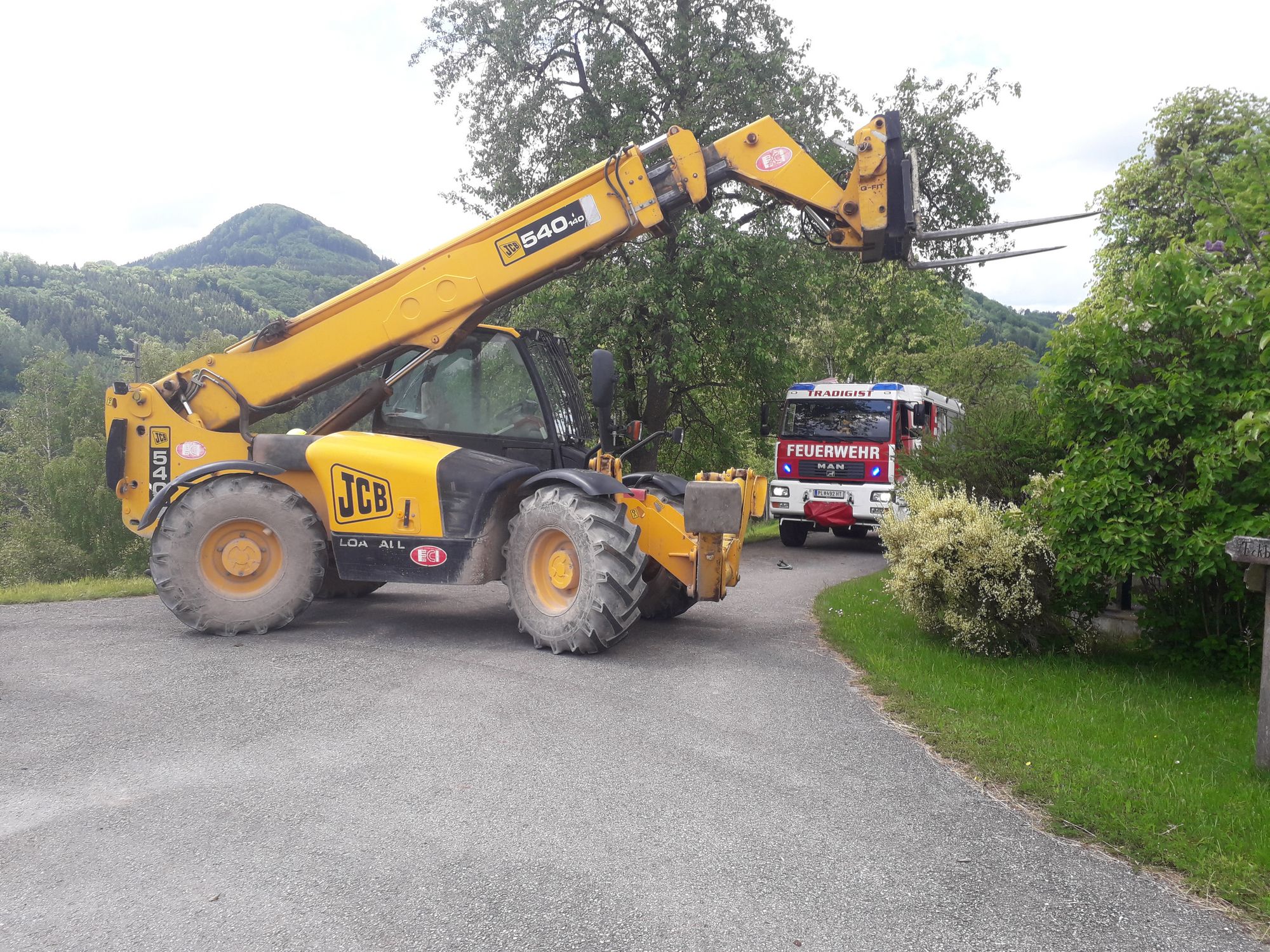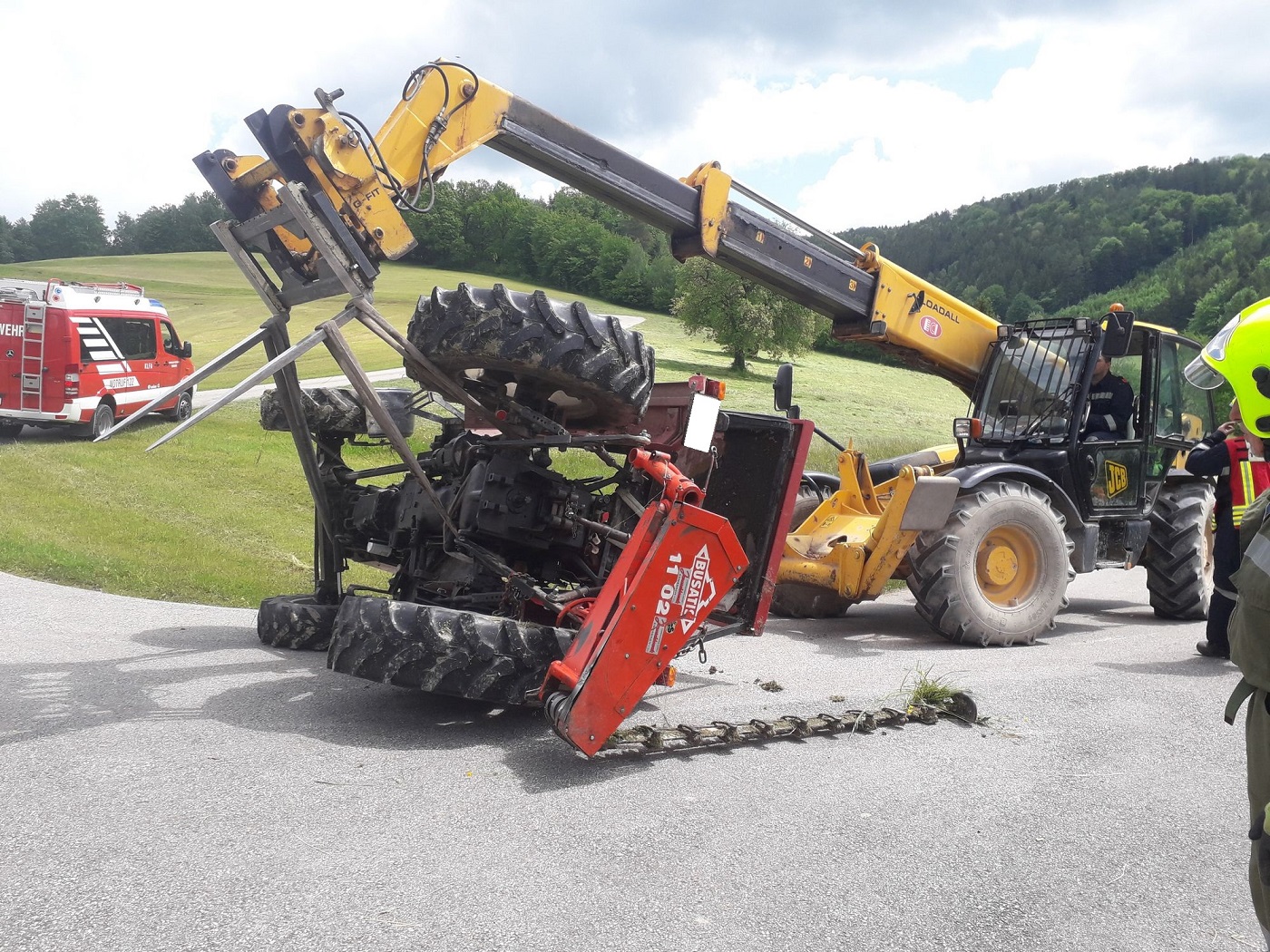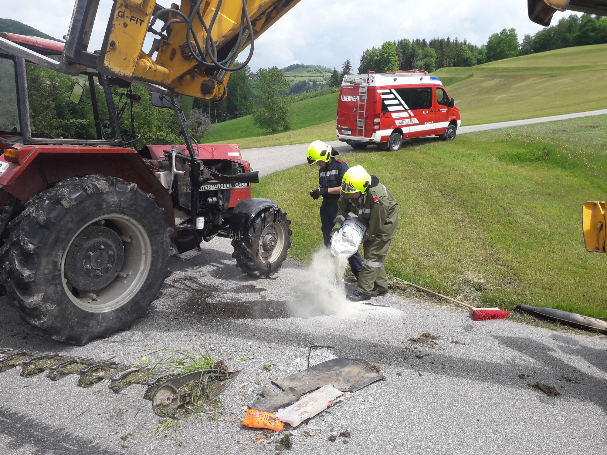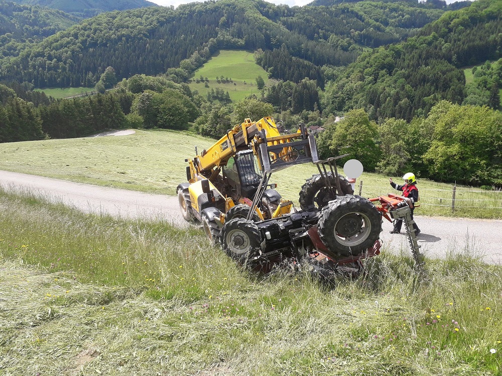 Heute um 11:27 Uhr wurden wir von der Bezirksalarmzentrale zu einer Traktorbergung (T1) alarmiert. Ein Landwirt war mit seinem Traktor auf einer Wiese abgerutscht und anschließend umgestürzt. Mit Hilfe eines Teleskopladers wurde der Traktor aus dem Graben gehoben, umgedreht und zu dem Gehöft gebracht. Das ausgelaufene Öl wurde gebunden. Nach ca. 2h konnten wir wieder einrücken und unsere Einsatzbereitschaft wieder herstellen.