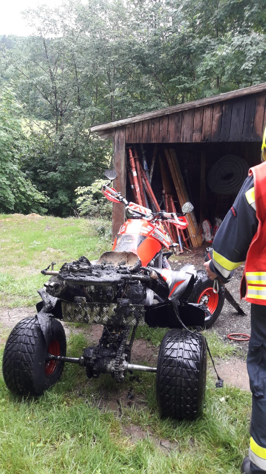 Beim Eintreffen der Einsatzkräfte hatten die Betroffenen den Brand bereits selbst mit einem Gartenschlauch gelöscht.