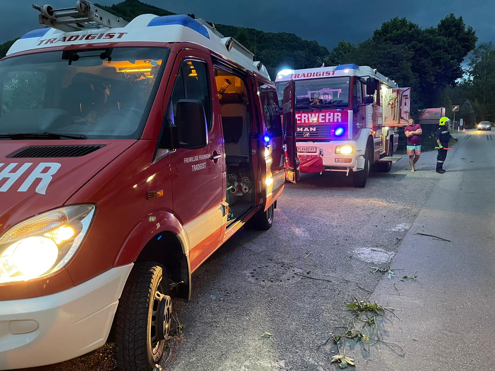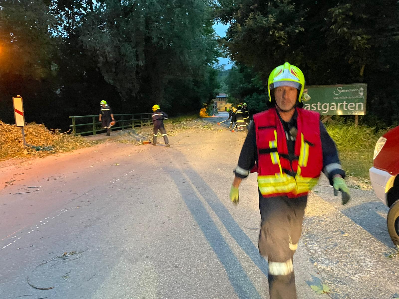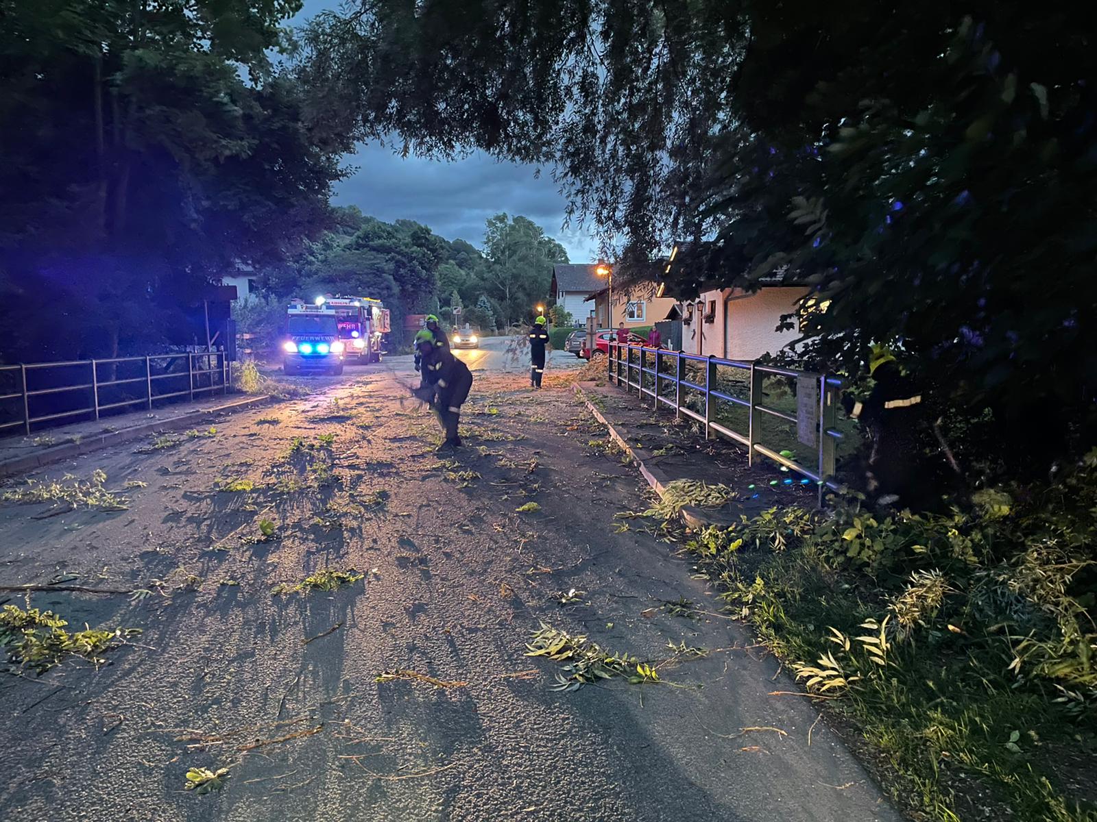 Als wir gerade von der wöchentlichen Übung ins Feuerwehrhaus zurückkamen, wurden wir von einem Kameraden informiert, dass der Strum einen großen Ast über die Straße geschleudert hatte.