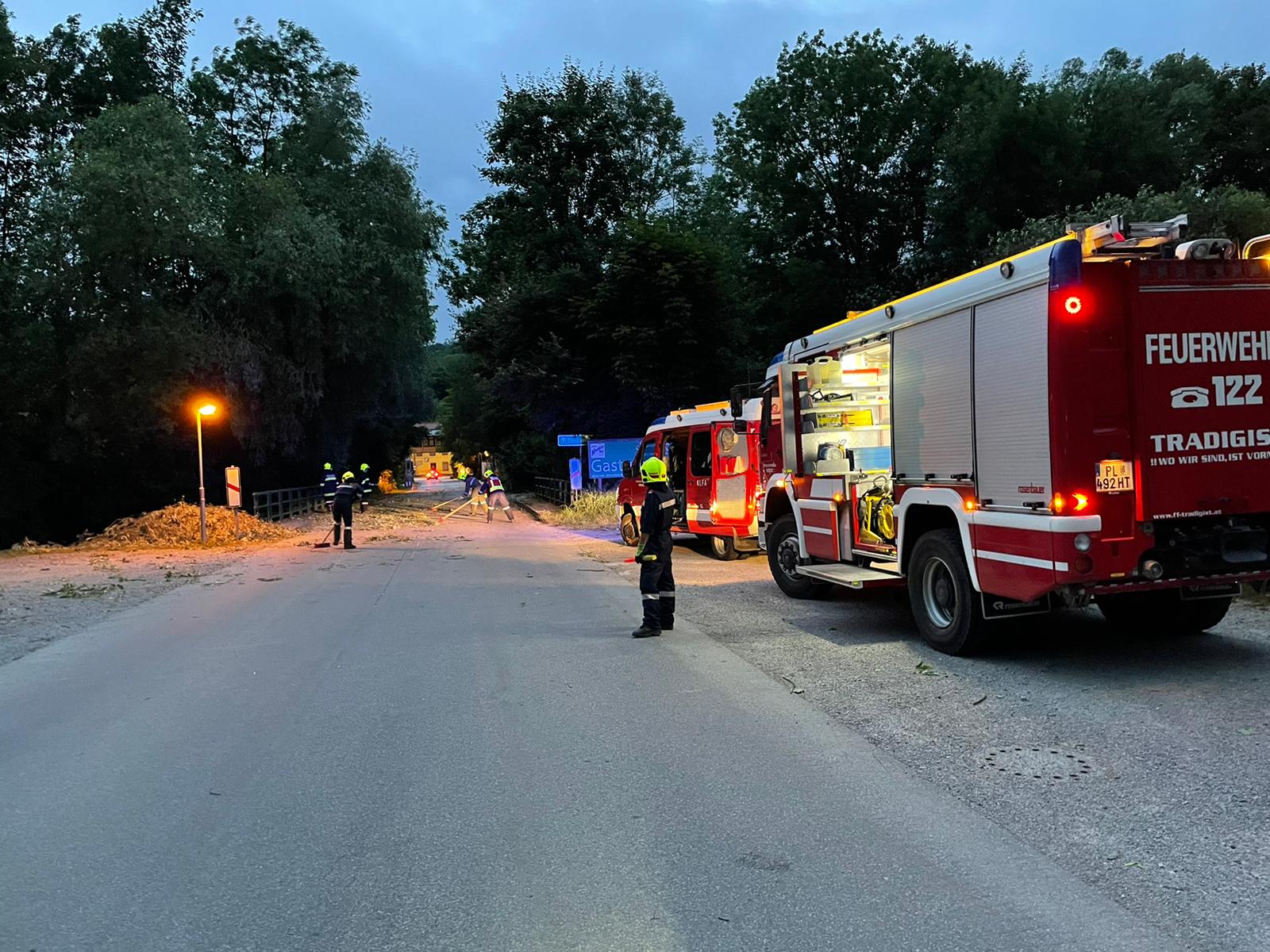 Sofort machten wir uns auf den Weg, um die Fahrbahn abzusichern und zu die Äste zu beseitigen. Nach ca. 1 h war die Straße frei und wir konnten wieder ins Feuerwehrhaus einrücken.
