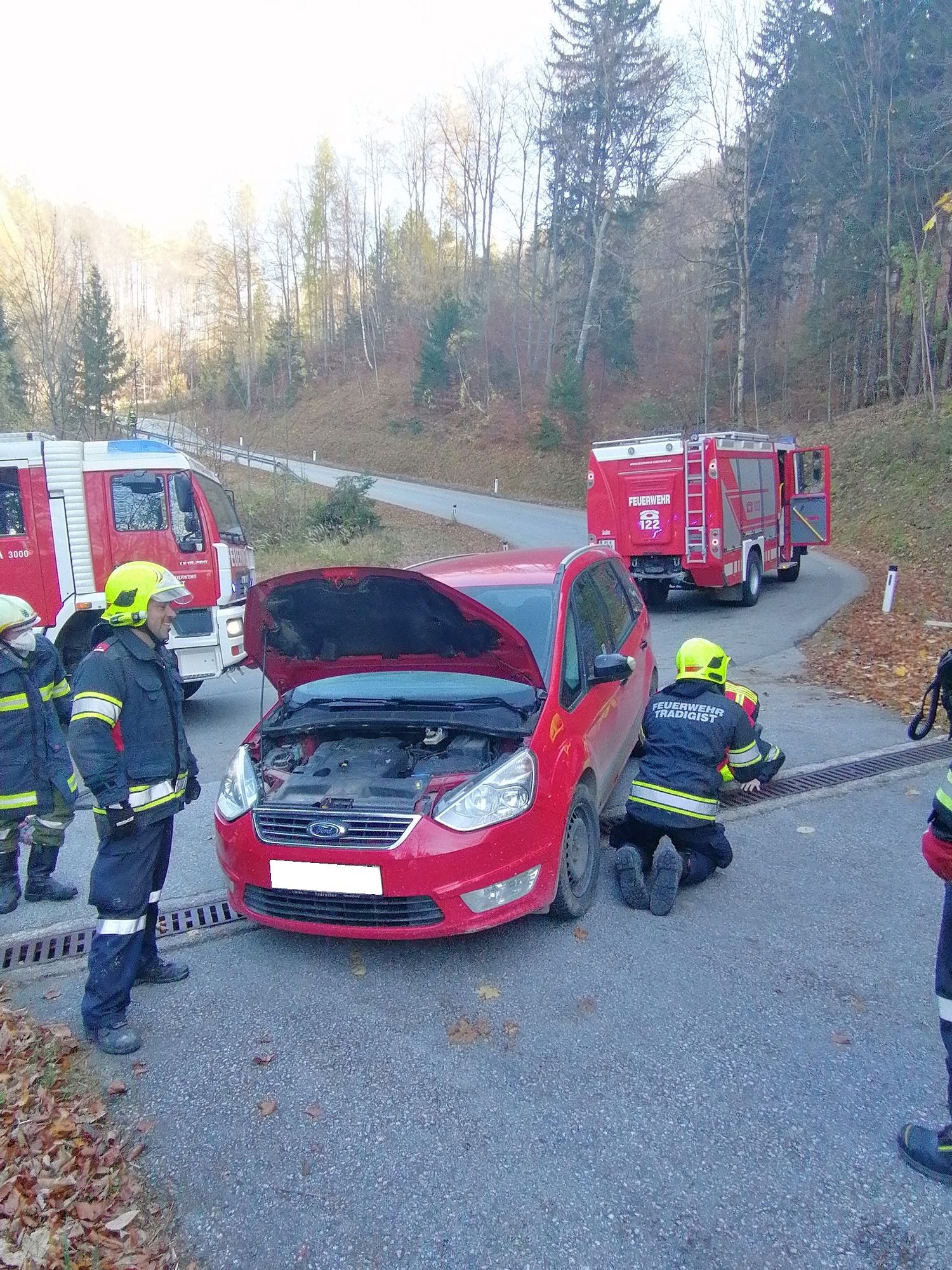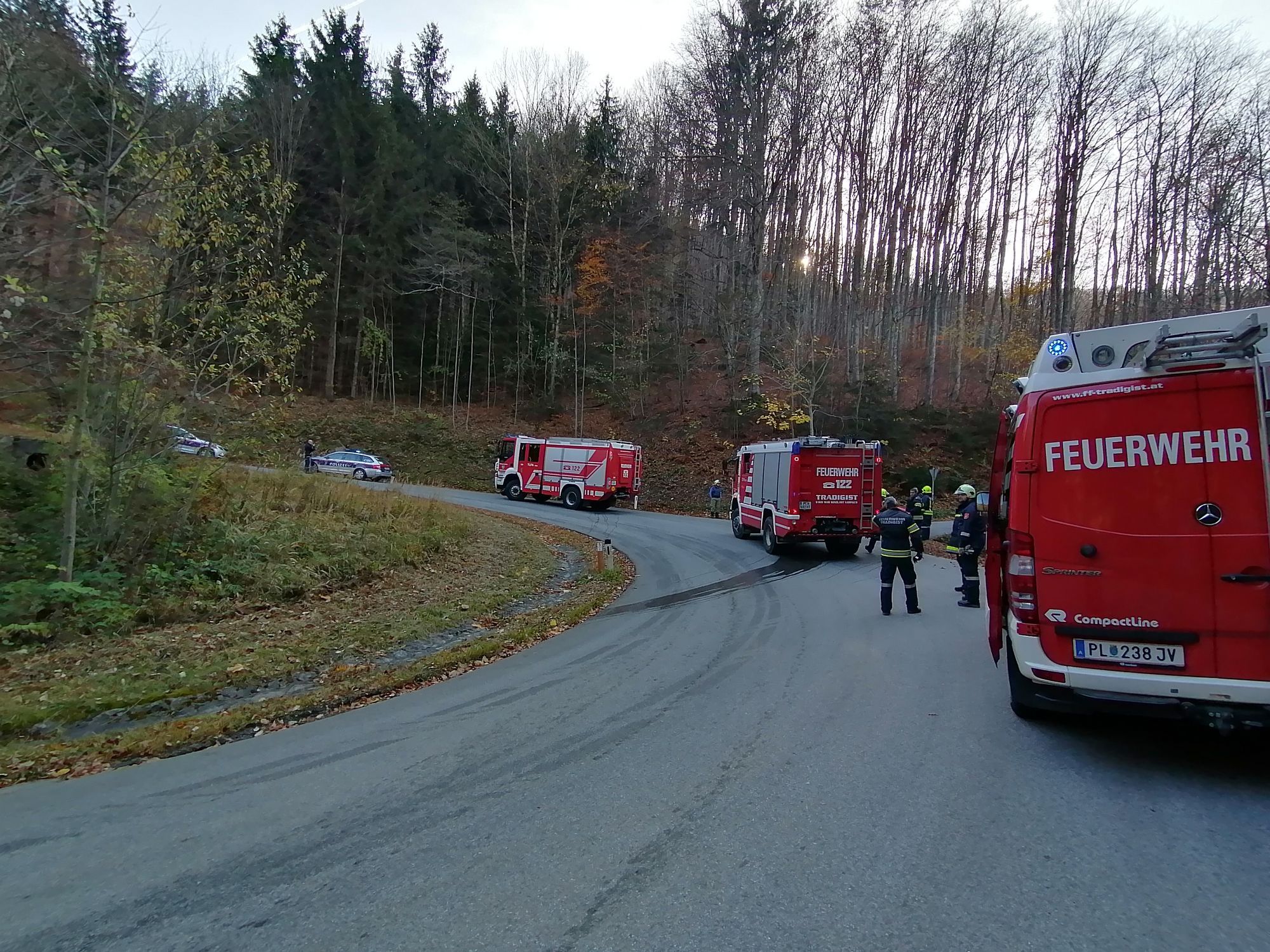 Wir wurden heute um 12:05 Uhr gemeinsam mit den Feuerwehren Kirchberg, Rabenstein und Hofstetten-Grünau zu einem Fahrzeugbrand (B2) auf die L5217 Morigrabenstraße alarmiert.