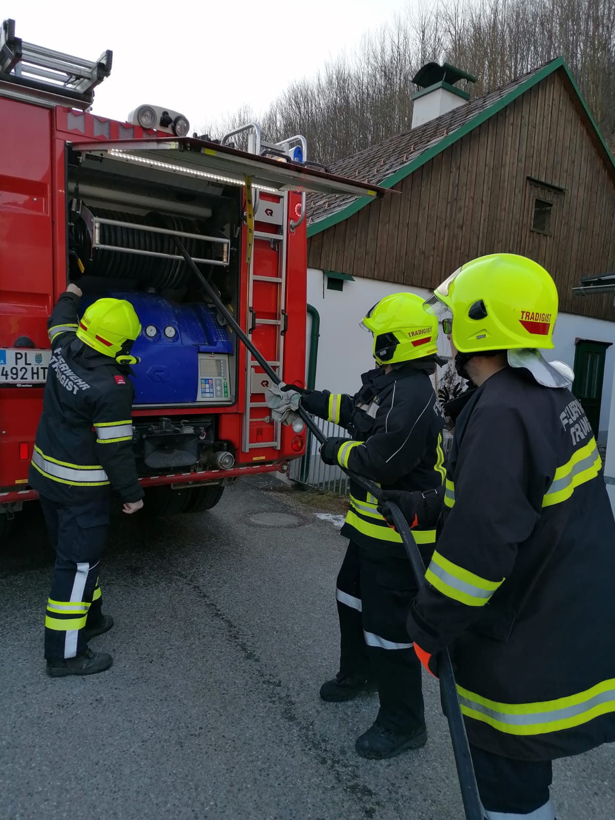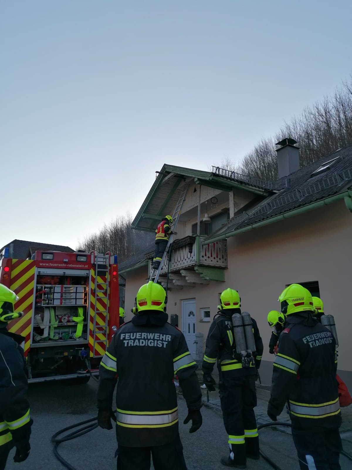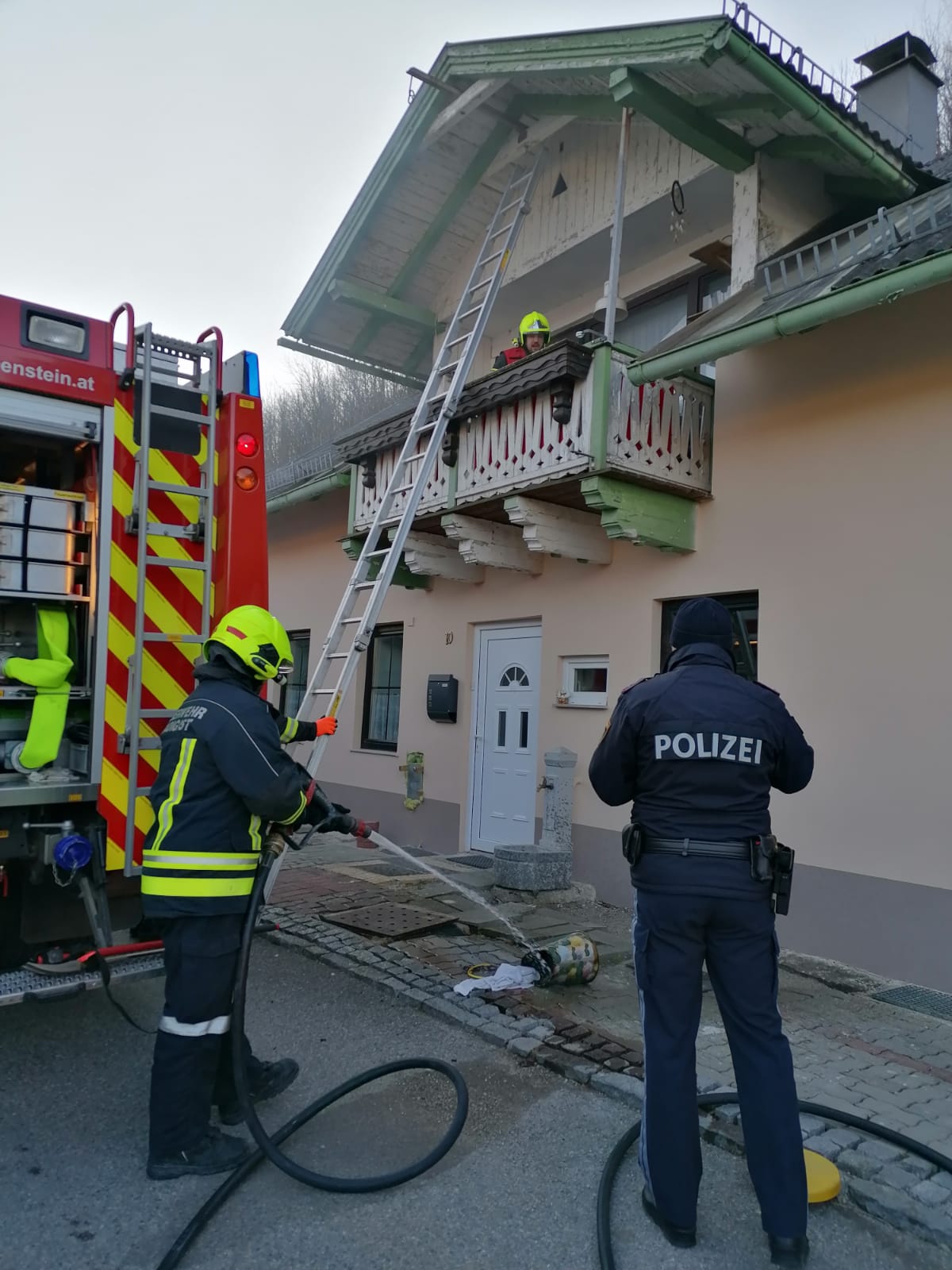 Heute um 07.09 Uhr lautete die gemeinsame Alarmierung der freiwilligen Feuerwehren Rabenstein, Tradigist, Hofstetten-Grünau, sowie der Rettung und Polizei: "Wohnungsbrand (B2) in 3203 Rabenstein...". Bei unserem Eintreffen am Einsatzort war aus einem Einfamilienhaus Rauchentwicklung im oberen Stockwerk zu sehen. Sofort rüstete sich der Atemschutztrupp aus. Über eine Leiter gelangten wir auf den Balkon, wo ein brennender Kübel gesichert und gelöscht werden konnte. Durch das schnelle Eingreifen konnten schlimmere Schäden verhindert werden.