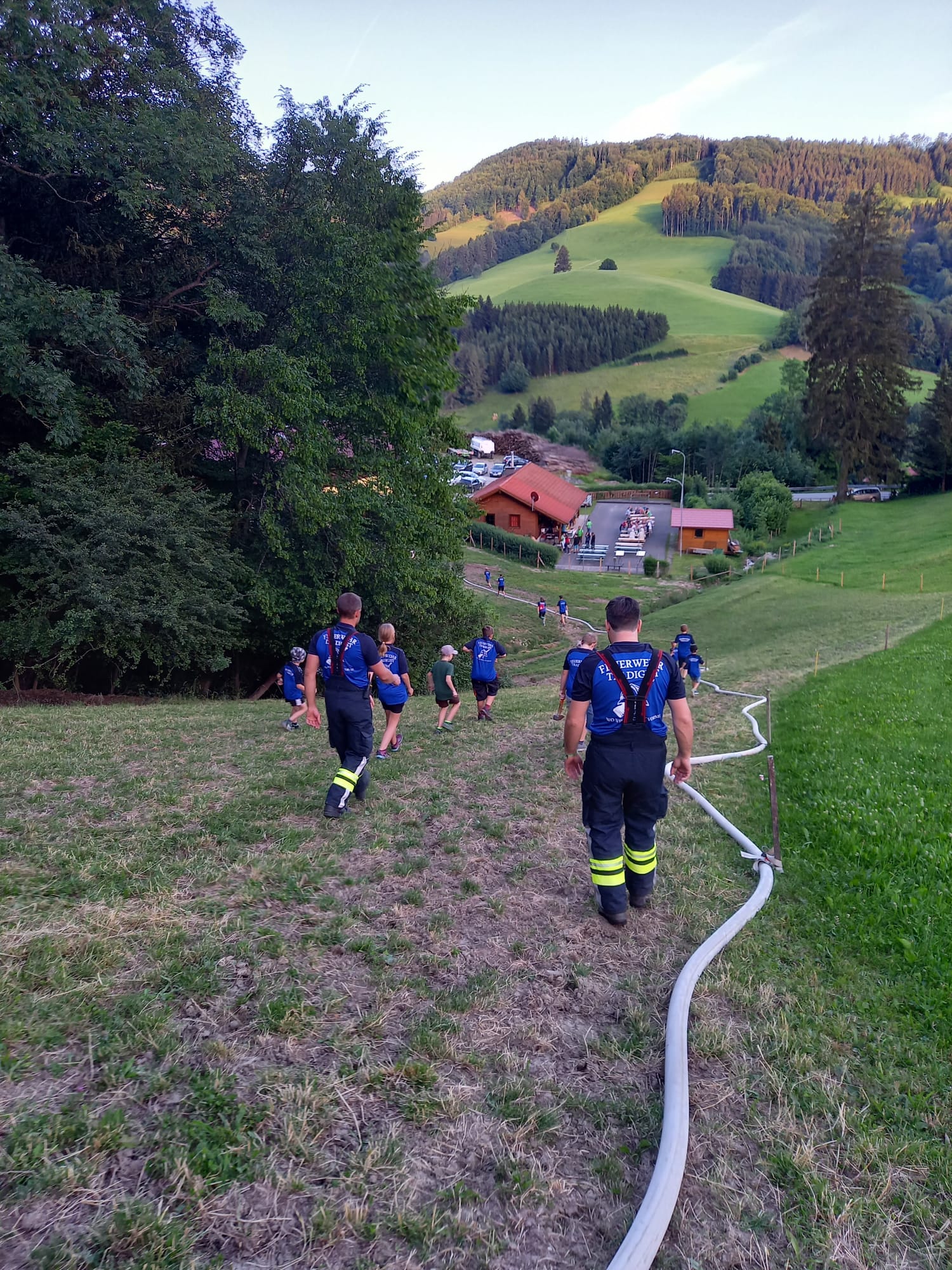 Gemeinsam mit unseren Nachwuchs-Firefighters wurden Löschleitungen vom Tanklöschfahrzeug (TLF) bis zur Brandstelle aufgebaut und betreut. Das umliegende Gelände war durch die getroffenen Maßnahmen während und nach Sonnwendfeuer und Feuerwerk gesichert. So konnte diese schöne Tradition in sicherem Rahmen durchgeführt werden. Auch die Wärmebildkamera kam zu Übungszwecken zum Einsatz.