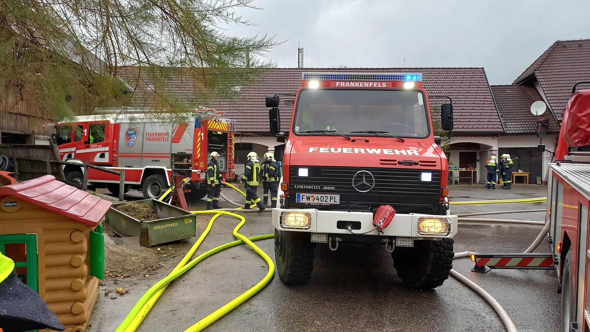 Wir wurden heute morgen um 07:18 Uhr gemeinsam mit den Feuerwehren Frankenfels, Weißenburg, Schwarzenbach, Loich und Kirchberg von der Bezirksalarmzentrale zu einem Brandeinsatz (B3) Landw. Objekt (Scheunenbrand) nach Frankenfels alarmiert.