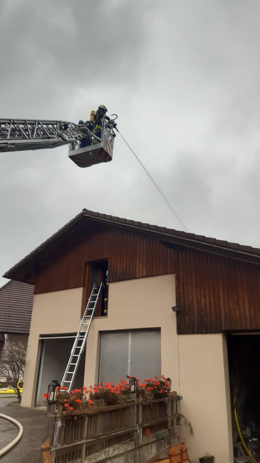 Der Brand war in einem Nebengebäude mit integriertem Hackschnitzellager sowie Heizungsanlage ausgebrochen.