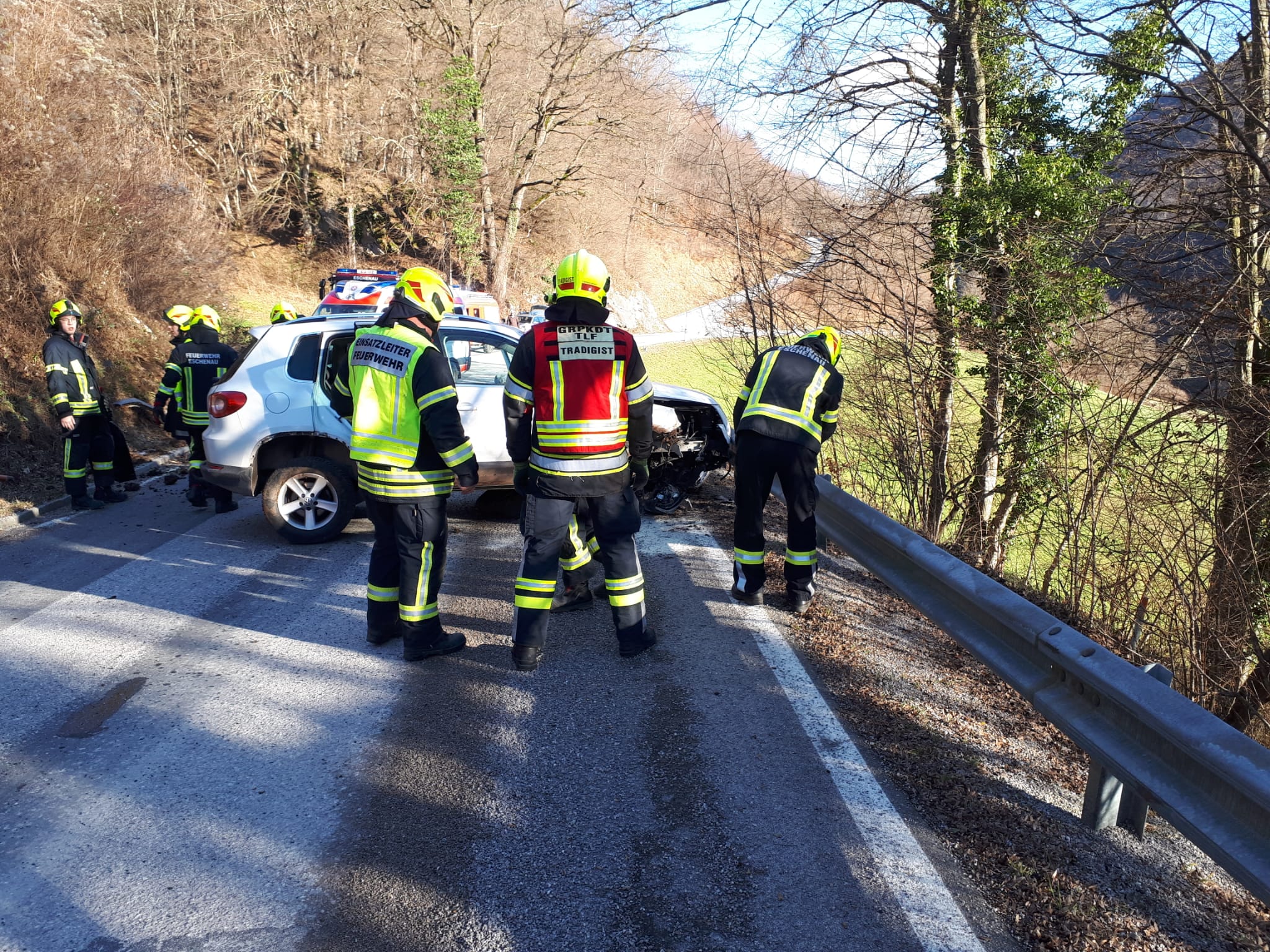 Bei der Anfahrt wurde uns per Funk durchgegeben, dass sich die Unfallstelle im Einsatzgebiet der FF-Eschenau befindet.