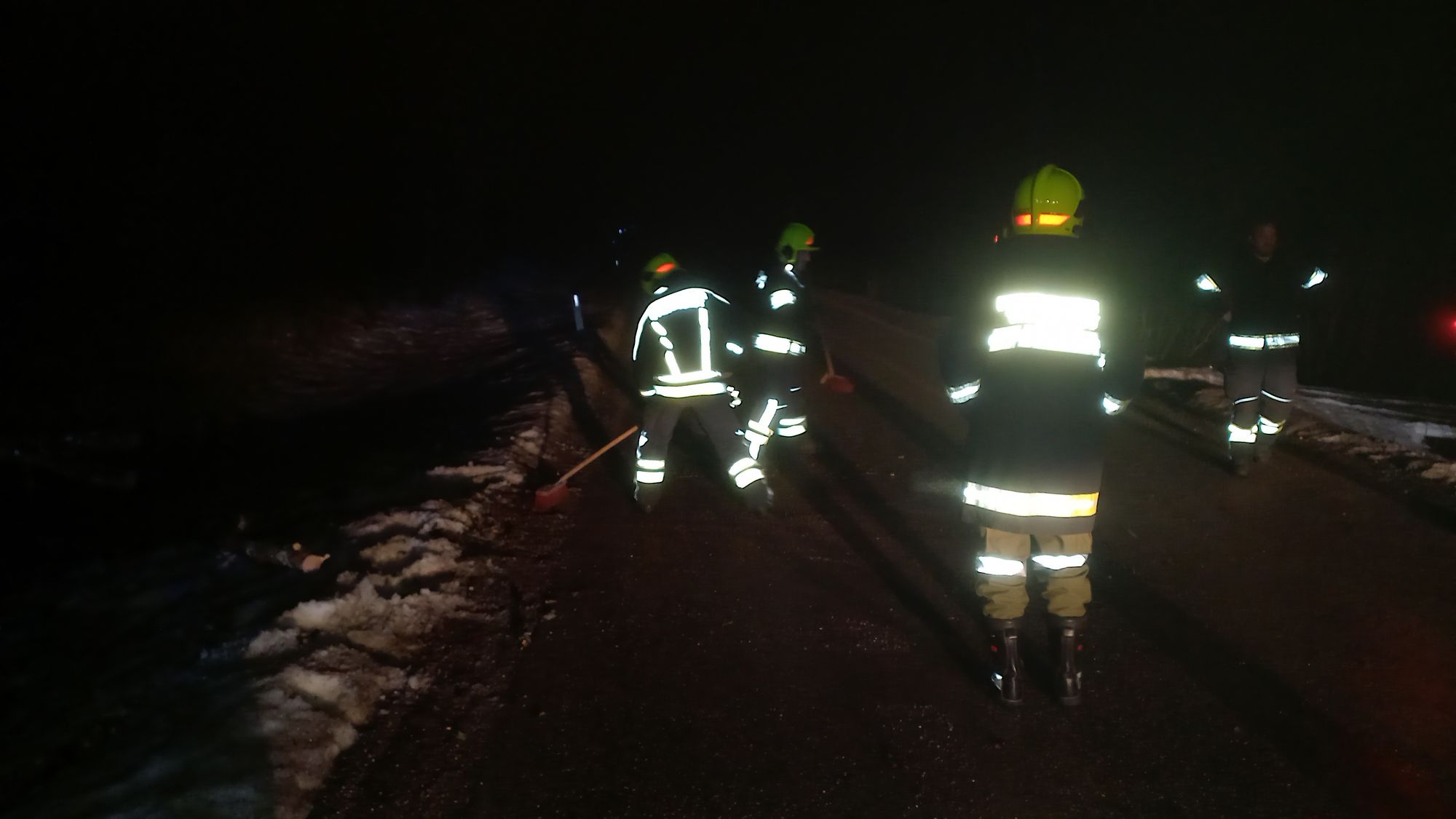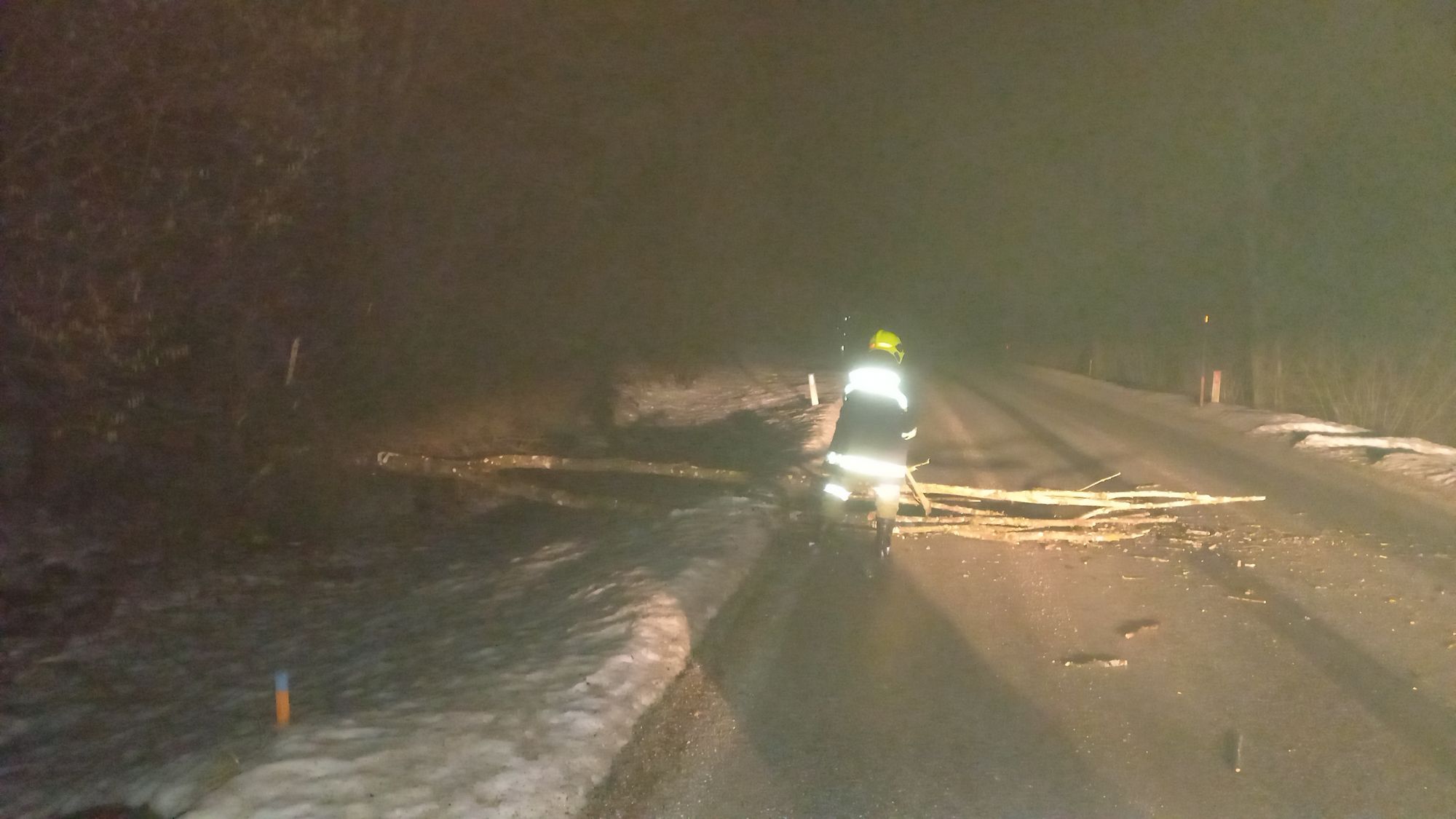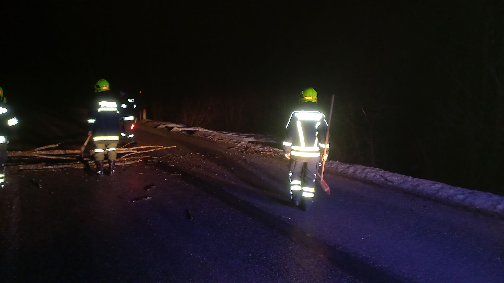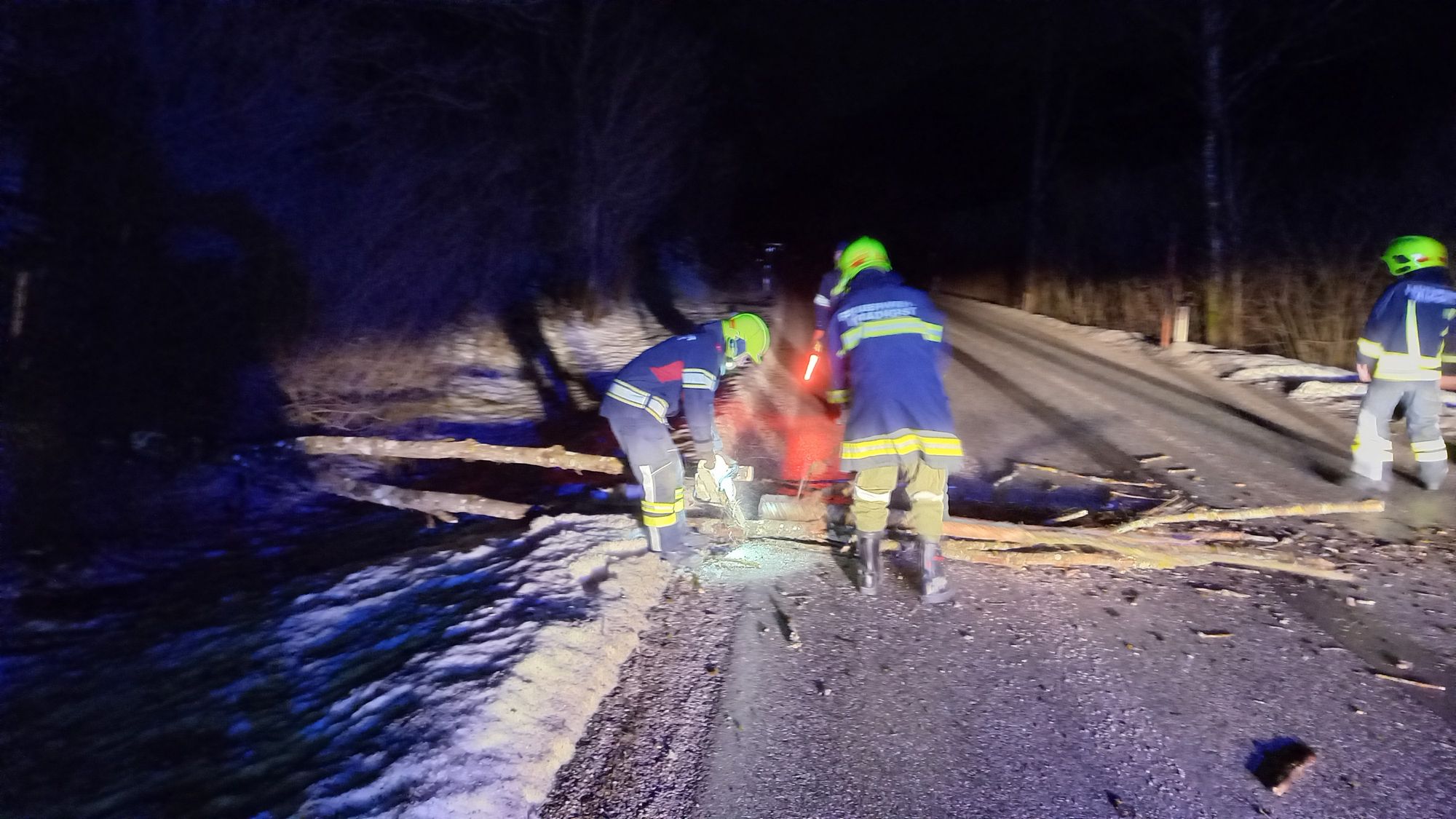 Mit der Kettensäge wurden die Äste abgeschnitten und zur Seite geräumt. Anschließend wurde noch die Straße mit Besen gereinigt.