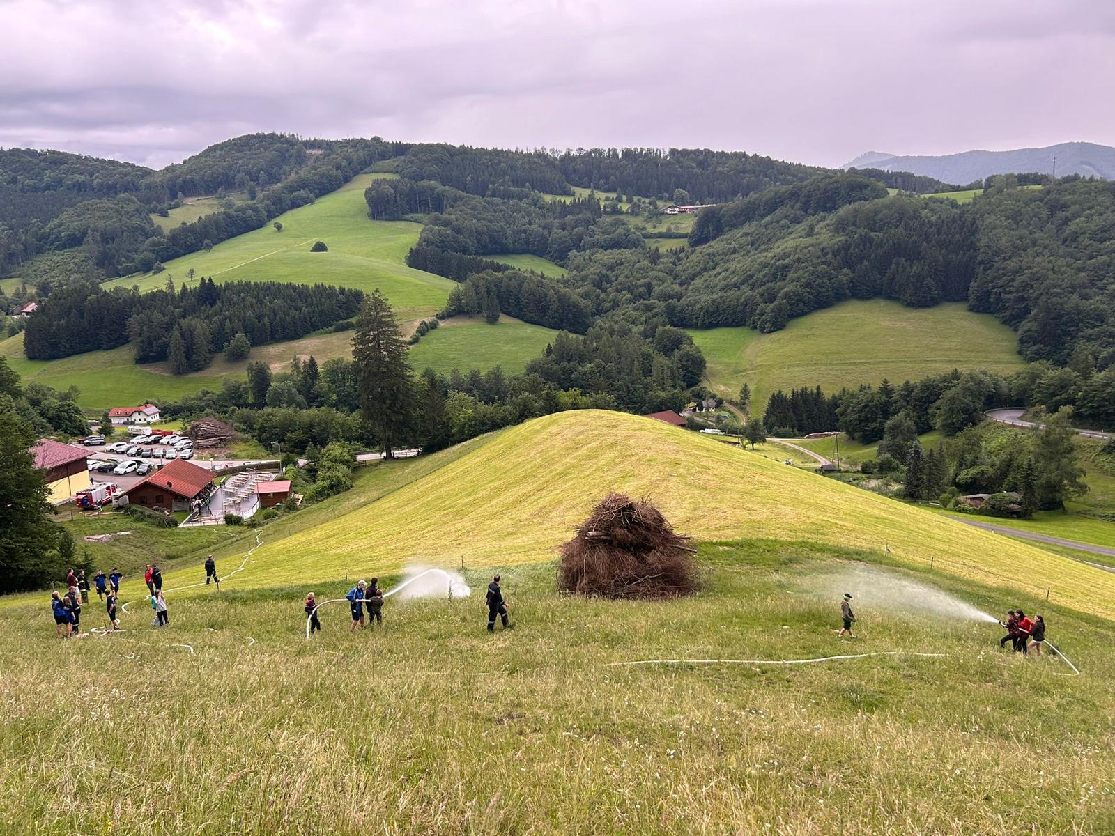 Zuerst wurde das Gebiet begutachtet, danach stellten wir eine Löschleitung von unserem Tanklöschfahrzeug bis zur Brandstelle her.