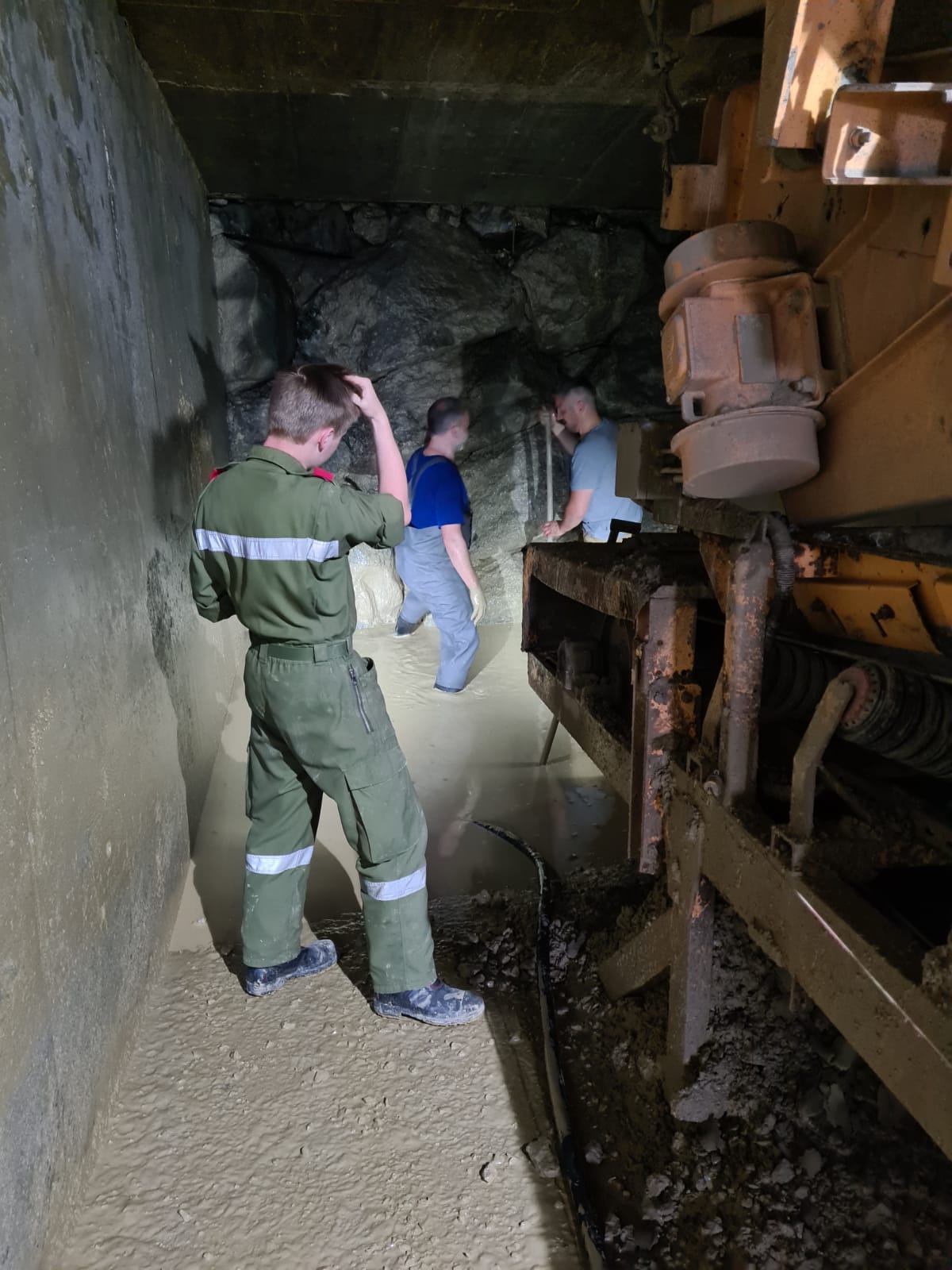 Aufgrund der starken Unwetter in den vergangenen Wochen kam es in einem Tunnel der Schottergrube zu Wasser- und Schlammansammlung.