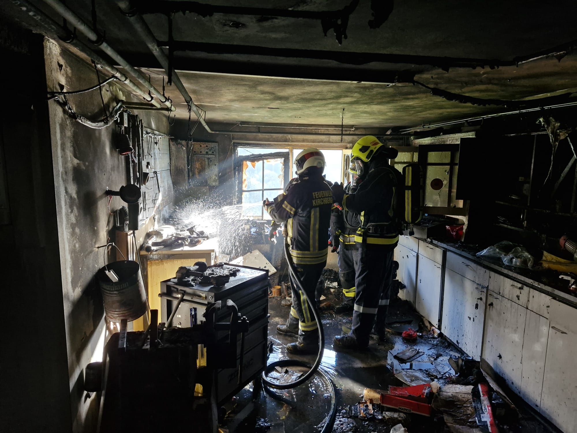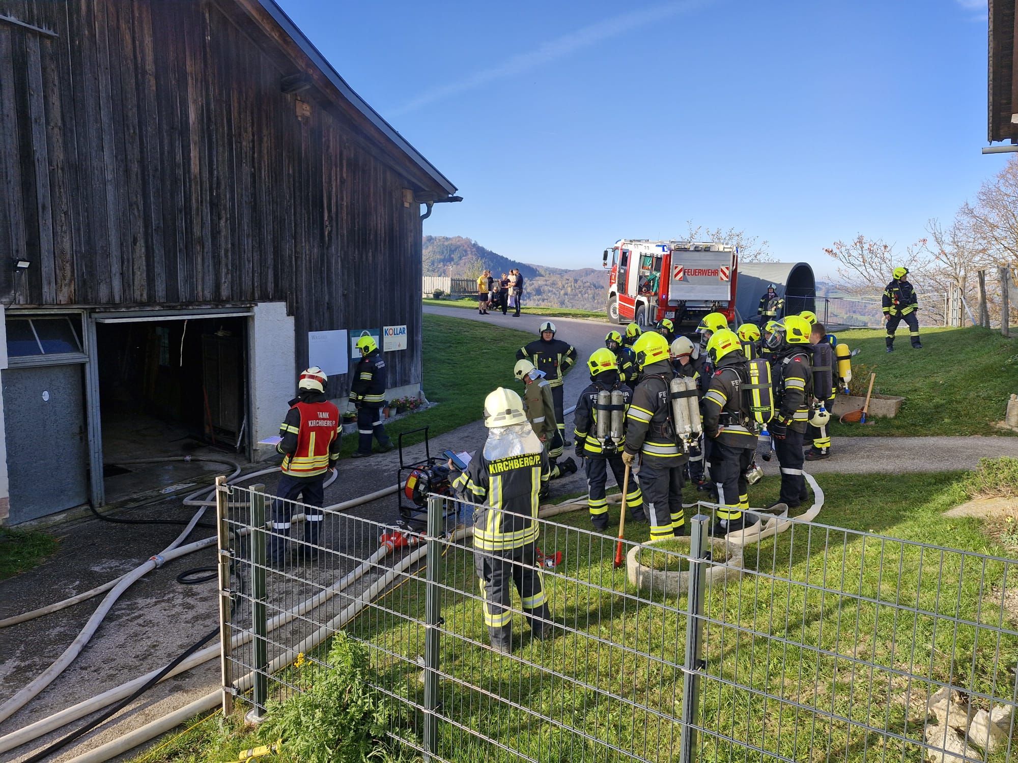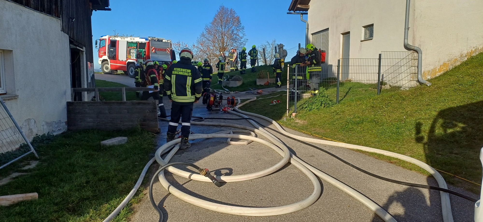 Als wir am Einsatzort eintrafen, bauten wir sofort eine Löschleitung auf und unterstützten die Feuerwehr Kirchberg bei den Löschmaßnahmen. Es wurde ein Innenangriff in den Keller über das Wirtschaftsgebäude durchgeführt.