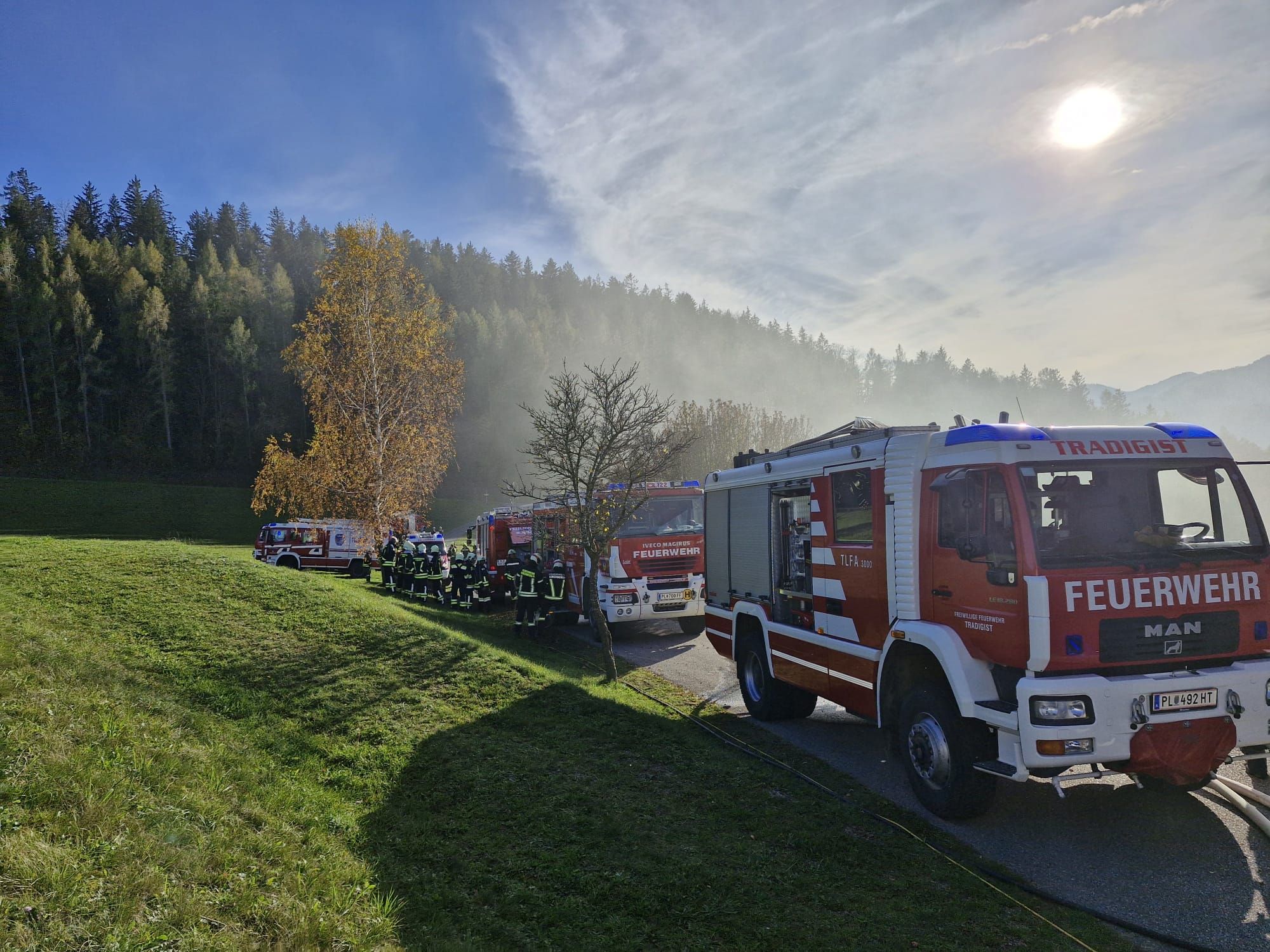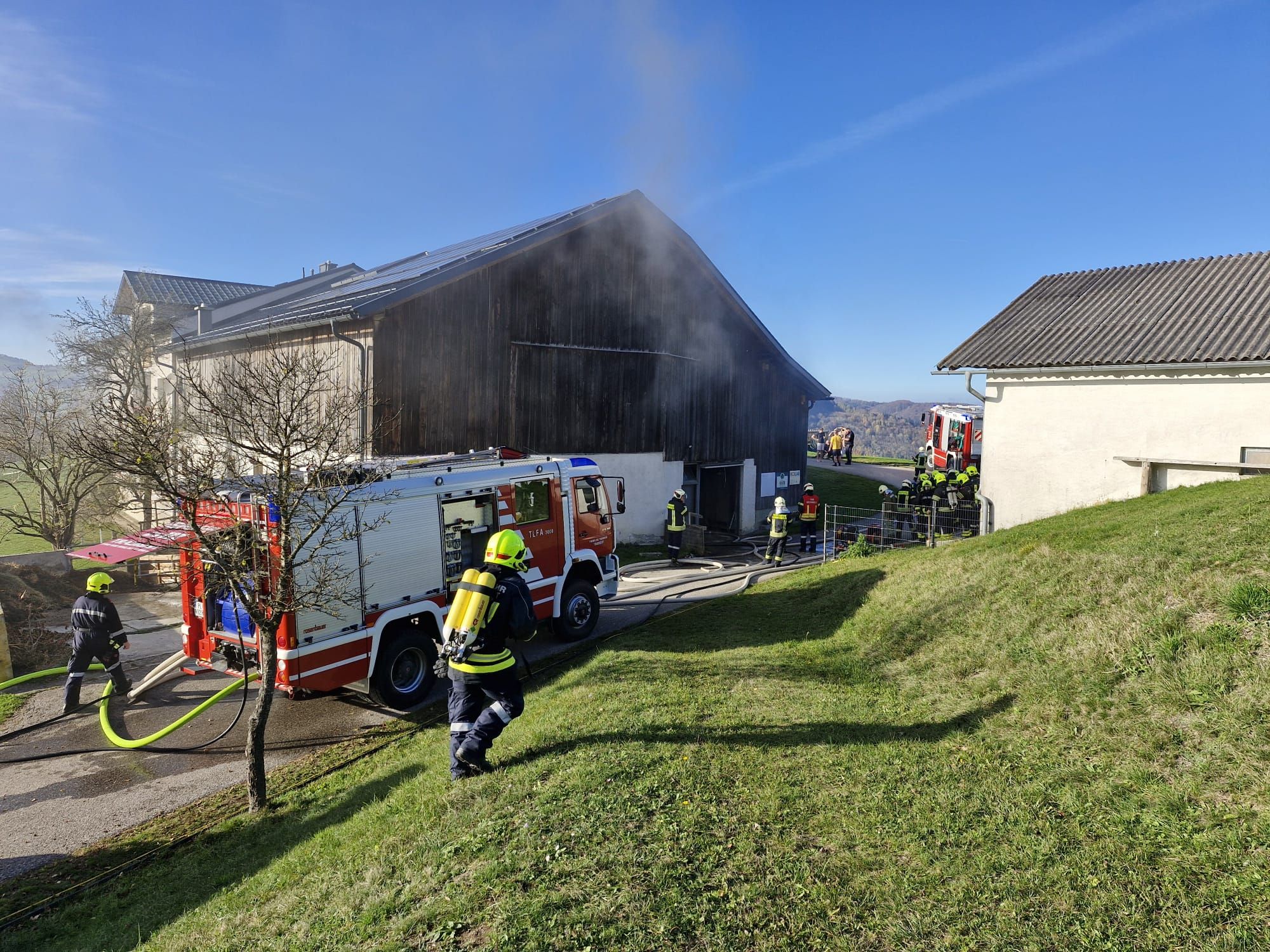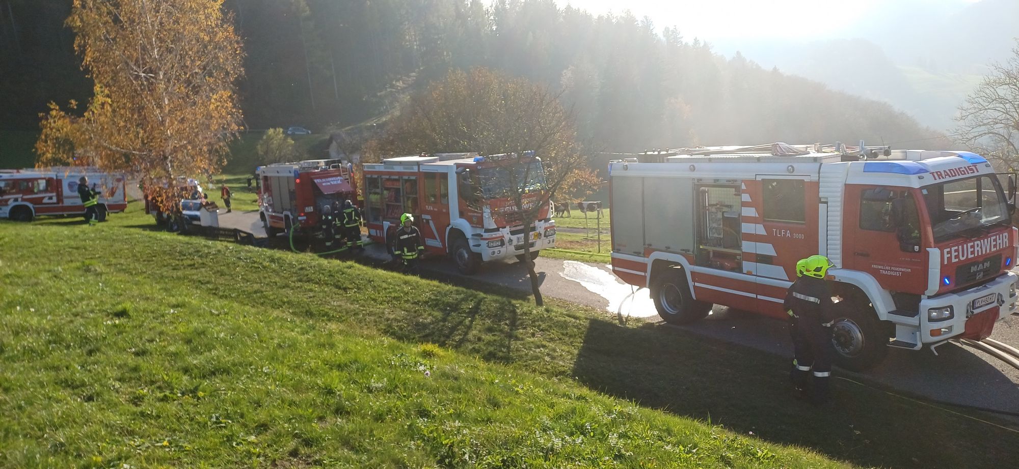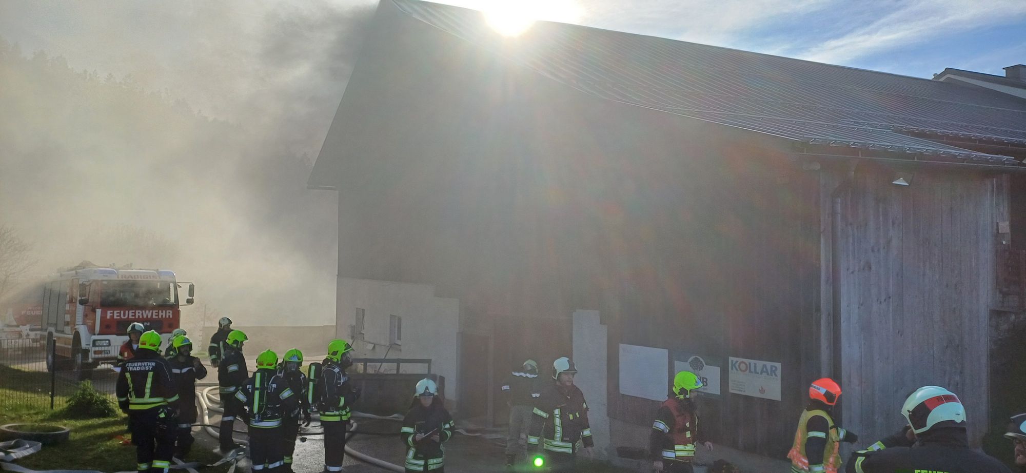 Als wir am Einsatzort eintrafen, bauten wir sofort eine Löschleitung auf und unterstützten die Feuerwehr Kirchberg bei den Löschmaßnahmen. Es wurde ein Innenangriff in den Keller über das Wirtschaftsgebäude durchgeführt.