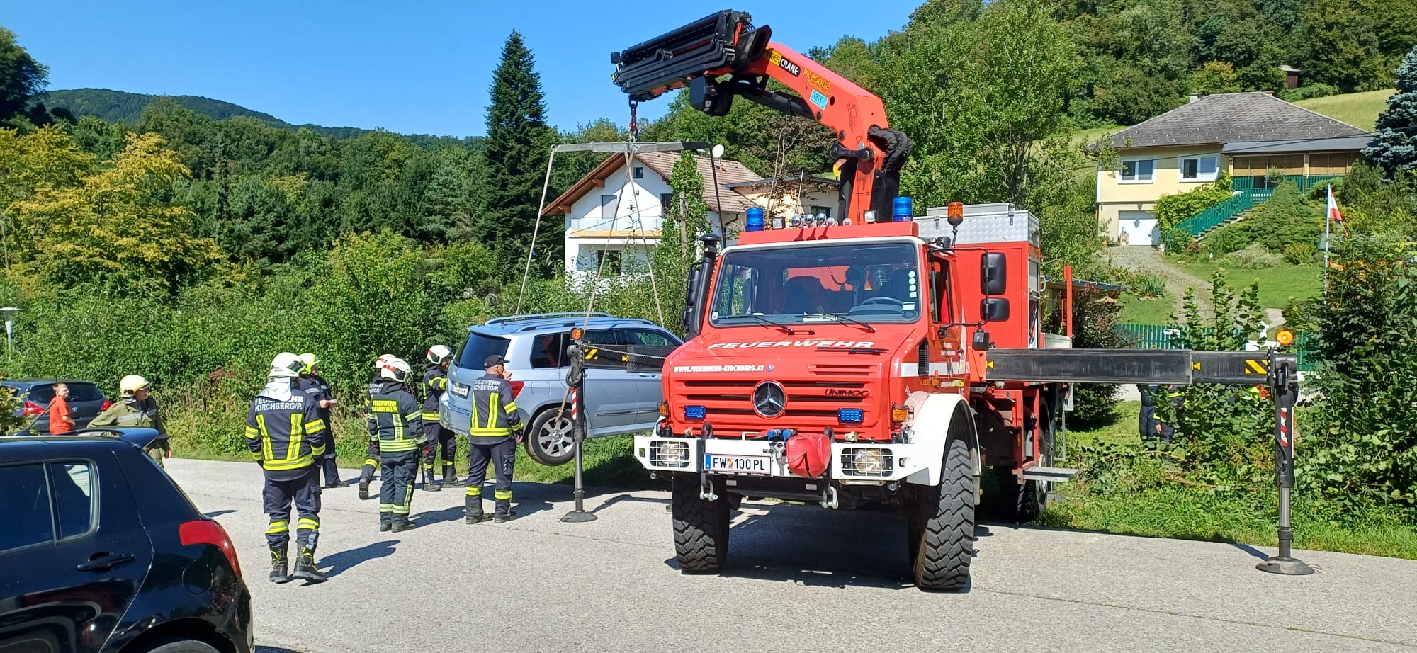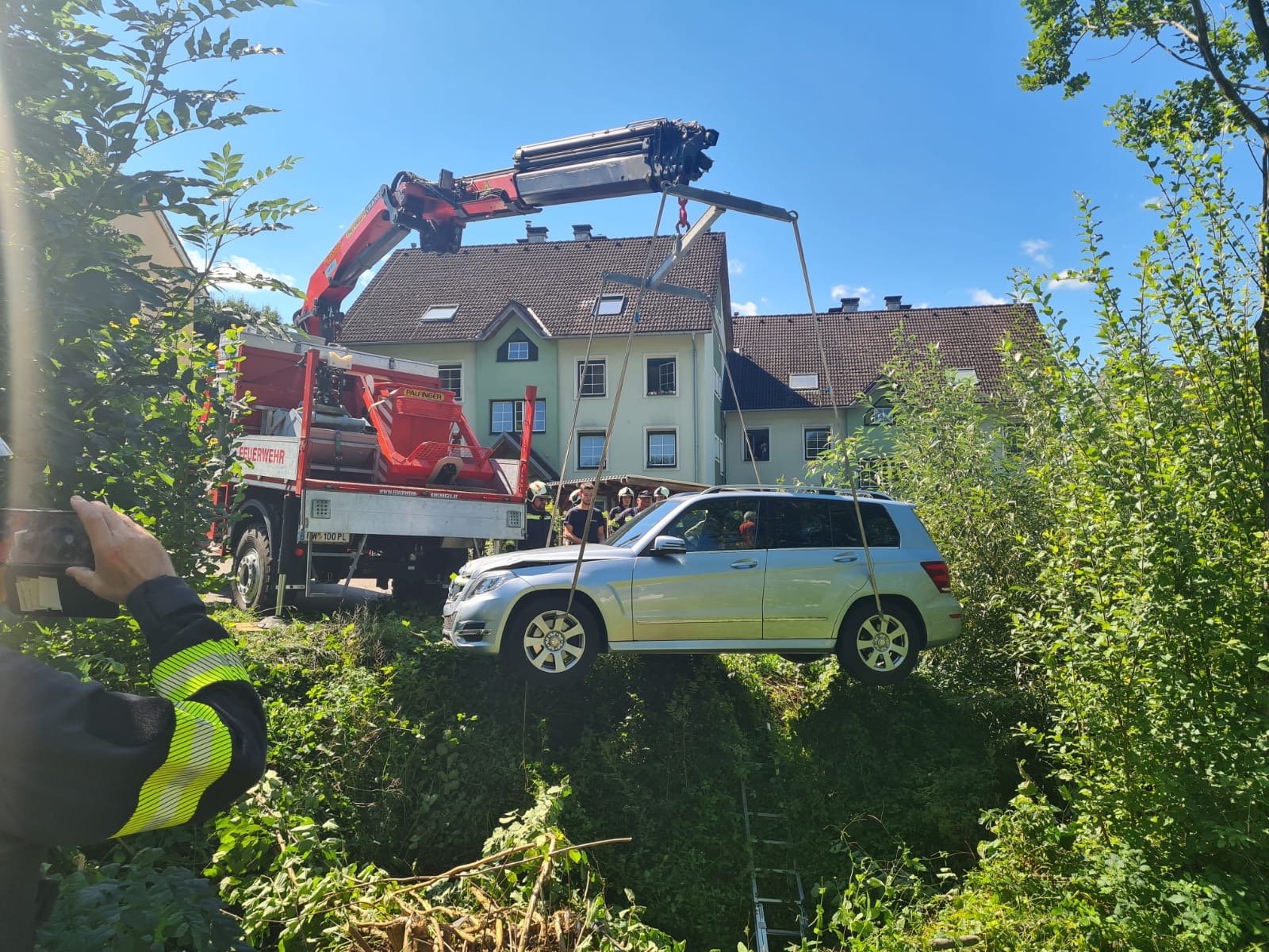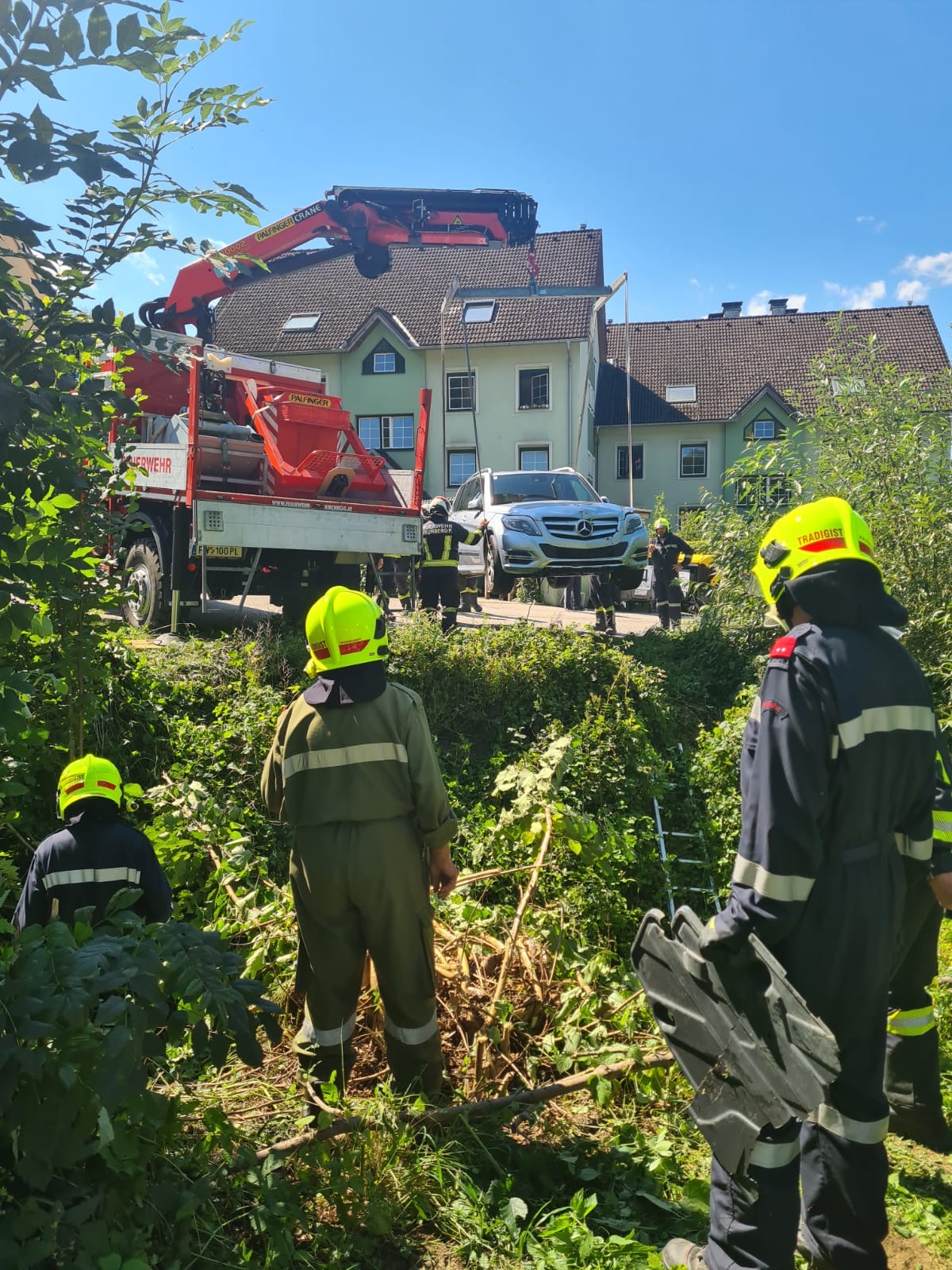 Da sich der PKW genau auf einem Wurzelstock befand wurde die Freiwillige Feuerwehr Kirchberg an der Pielach nachalarmiert, um weitere Schäden am Fahrzeug vermeiden zu können. Mittels deren Kranfahrzeug konnte der PKW rasch und sicher aus seiner misslichen Lage gehoben und anschließend gesichert abgestellt werden.